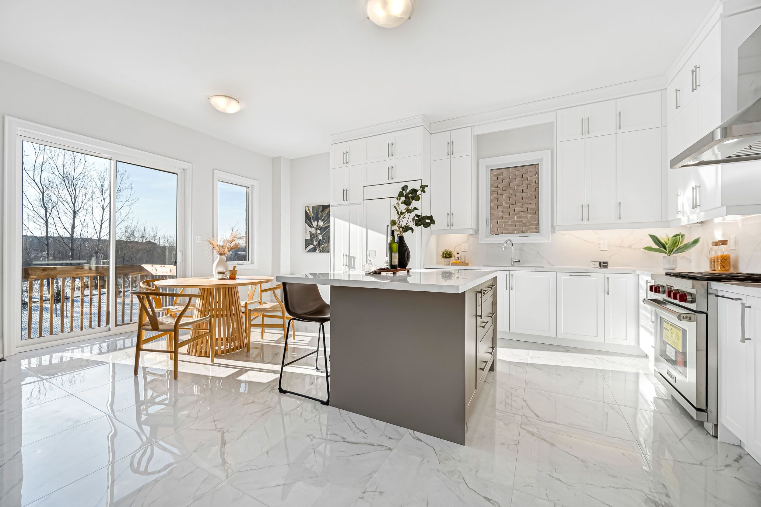 Located in the prestigious legacy hill community by greenpark group, this exceptional double-car detached home sits on a premium ravine lot and offers approximately 3,197 sq. Ft. Of luxurious living space with over $200,000 in upgrades. Backing onto serene greenery, the home delivers privacy, and timeless design. The main level impresses with 10-foot smooth ceilings, expansive windows, rich hardwood flooring, custom hardwood stairs with sleek metal pickets, 7-inch baseboards. Thoughtfully designed living spaces include a main-floor library ideal for working from home. At the heart of the home, the designer kitchen showcases ceiling-height cabinetry with crown moulding, a full-height quartz backsplash, under-cabinet lighting, and a dramatic silestone blanc waterfall island with matching quartz surfaces. A premium appliance package includes a built-in miele dishwasher with auto detergent dispenser, a sub-zero french-door refrigerator with filtered water dispenser, a 30" dual-fuel gas range, and a stainless-steel sirius pro chimney hood (600 cfm). Upstairs, 9-foot ceilings enhance four generously sized bedrooms, each with its own upgraded private ensuite. The primary retreat offers a spa-inspired five-piece bath complete with a freestanding soaking tub and oversized glass shower. A convenient second-floor laundry room completes the level. The bright basement features 8'6" ceilings, enlarged windows, and endless potential. Upgraded 189 amp panel, rough in for ev car, gas line & security camera rough ins, plywood subflooring, & more premium upgrades! Ideally located near highway 404, shopping, dining, and top-ranking schools including bayview hill elementary school, alexander mackenzie high school, and bayview secondary school (ib program). For those seeking a property that transcends the ordinary and delivers a truly elevated living experience, this exceptional legacy hill home stands without compromise.