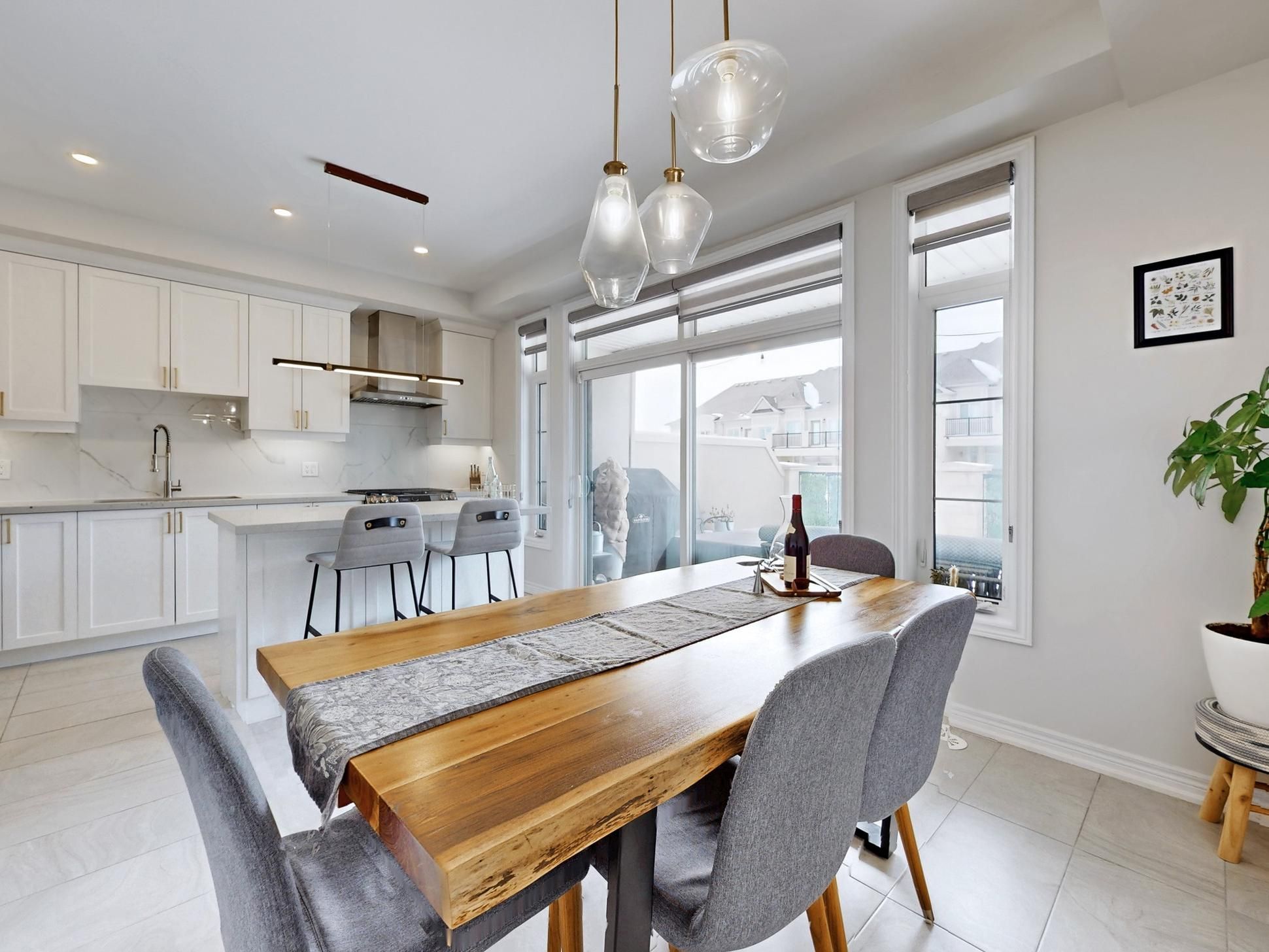 Modern end-unit townhome offering three levels of comfortable living in a sought-after dufferin & rutherford location. Timeless stucco and stone exterior finish. Features a double car garage with an extended driveway, built-in garage shelving for added storage, and a spacious main floor terrace ideal for outdoor enjoyment. A contemporary kitchen includes stainless steel appliances and a gas stove, complemented by tasteful builder and custom upgrades, including pot lights throughout the home. Primary bedroom features a custom built-in closet, vanity and glass shower. Dual climate control between the upper and lower floors for added comfort and efficiency along with a water softener system. The home also includes numerous smart home additions, such as a smart lock, poe security cameras, and smart wired lighting with dimmers, scheduling options, and motion sensors around the exterior. Walking distance to top-rated schools, parks, groceries and conveniently located to highways, community centres and shopping.