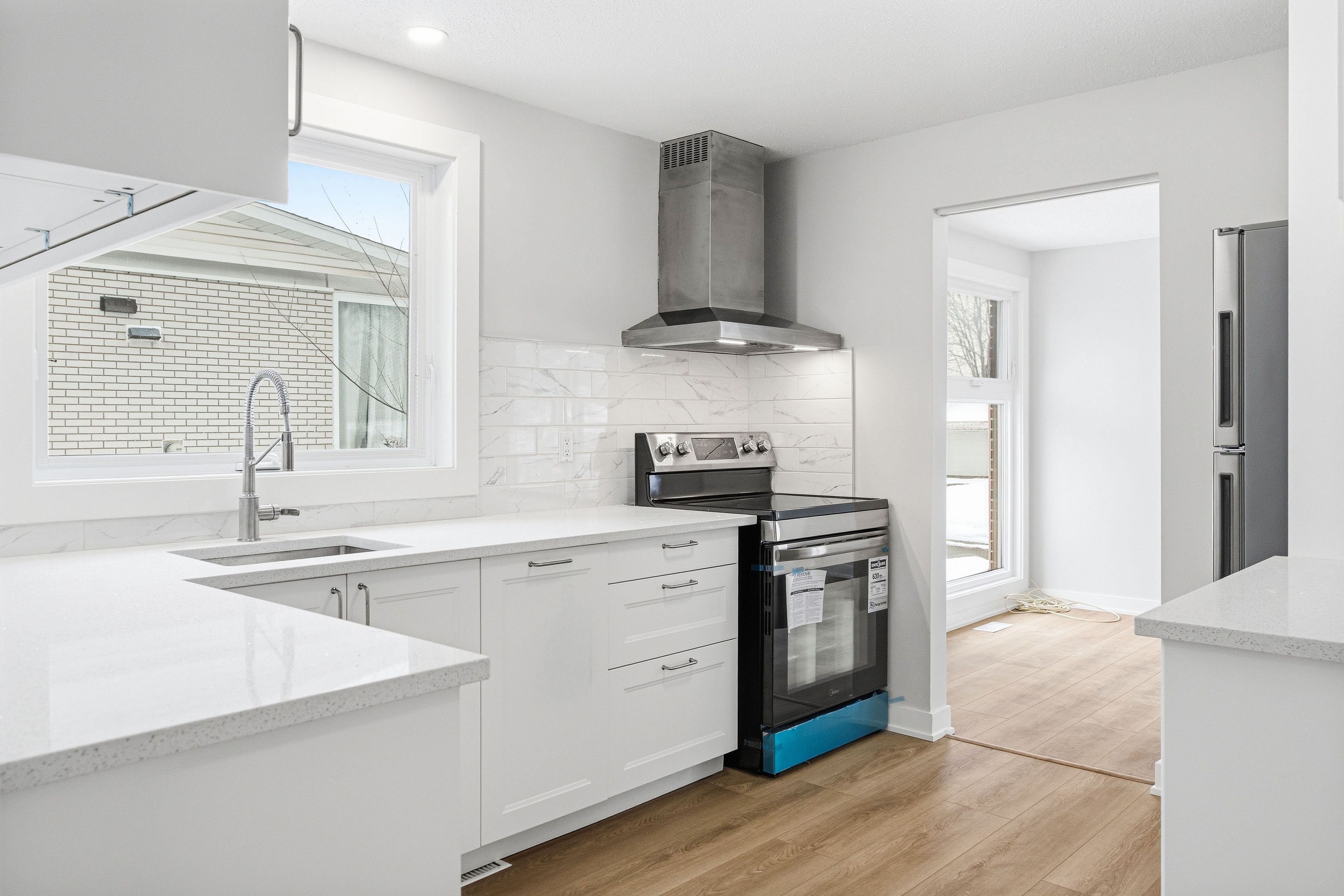Beautifully updated home in one of ottawa's most family-friendly and centrally located neighbourhoods. This property has been extensively renovated from top to bottom, offering a truly move-in ready experience with brand new flooring throughout, a completely redesigned kitchen, fresh paint, and all new baseboards. The upper-level bathroom has been fully transformed with new tile, tub, and vanity, while the home features four spacious bedrooms, one full bathroom, and a convenient powder room. The kitchen is entirely brand new and paired with a full set of never-used appliances, making it perfect for everyday living and entertaining. Additional upgrades include a brand new hot water tank and a serviced furnace, ensuring peace of mind for years to come. Enjoy bright, sun-filled living spaces with great exposure, and step out from the living room onto your balcony for a breath of fresh air. The fenced backyard offers a safe and inviting space for kids, pets, or summer gatherings. Major updates have already been taken care of, including the roof in 2015, most windows and the patio door in 2019, and the furnace and air conditioning system in 2018. Ideally situated, this home is surrounded by parks, schools within walking distance, and convenient access to public transit, making daily commutes and errands effortless. The neighbourhood is known for its welcoming, family-oriented atmosphere, offering the perfect blend of comfort, community, and accessibility.