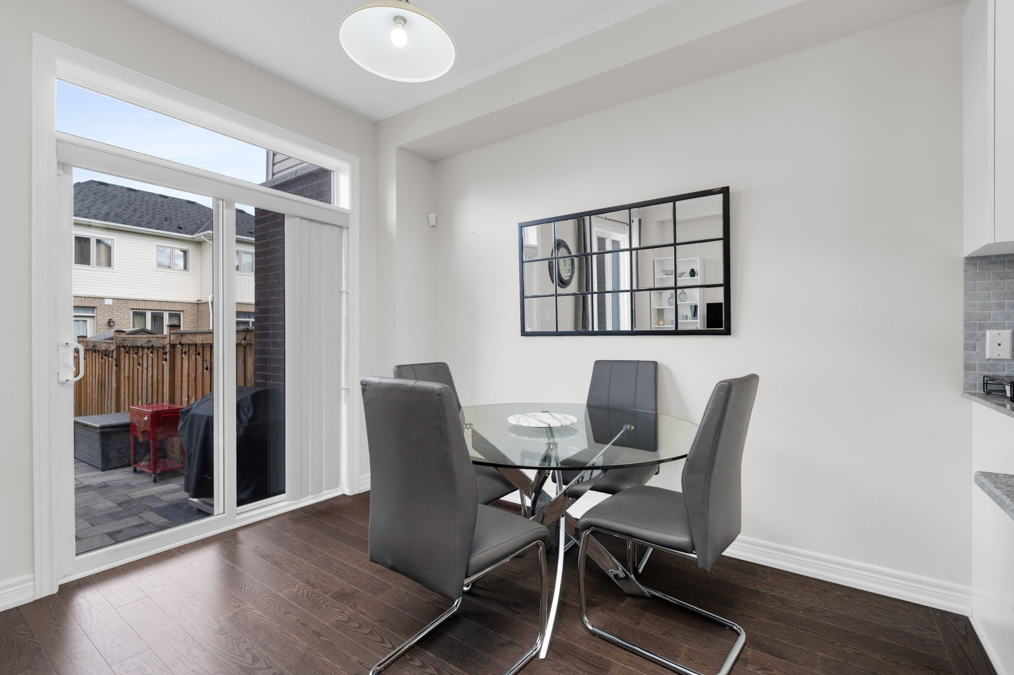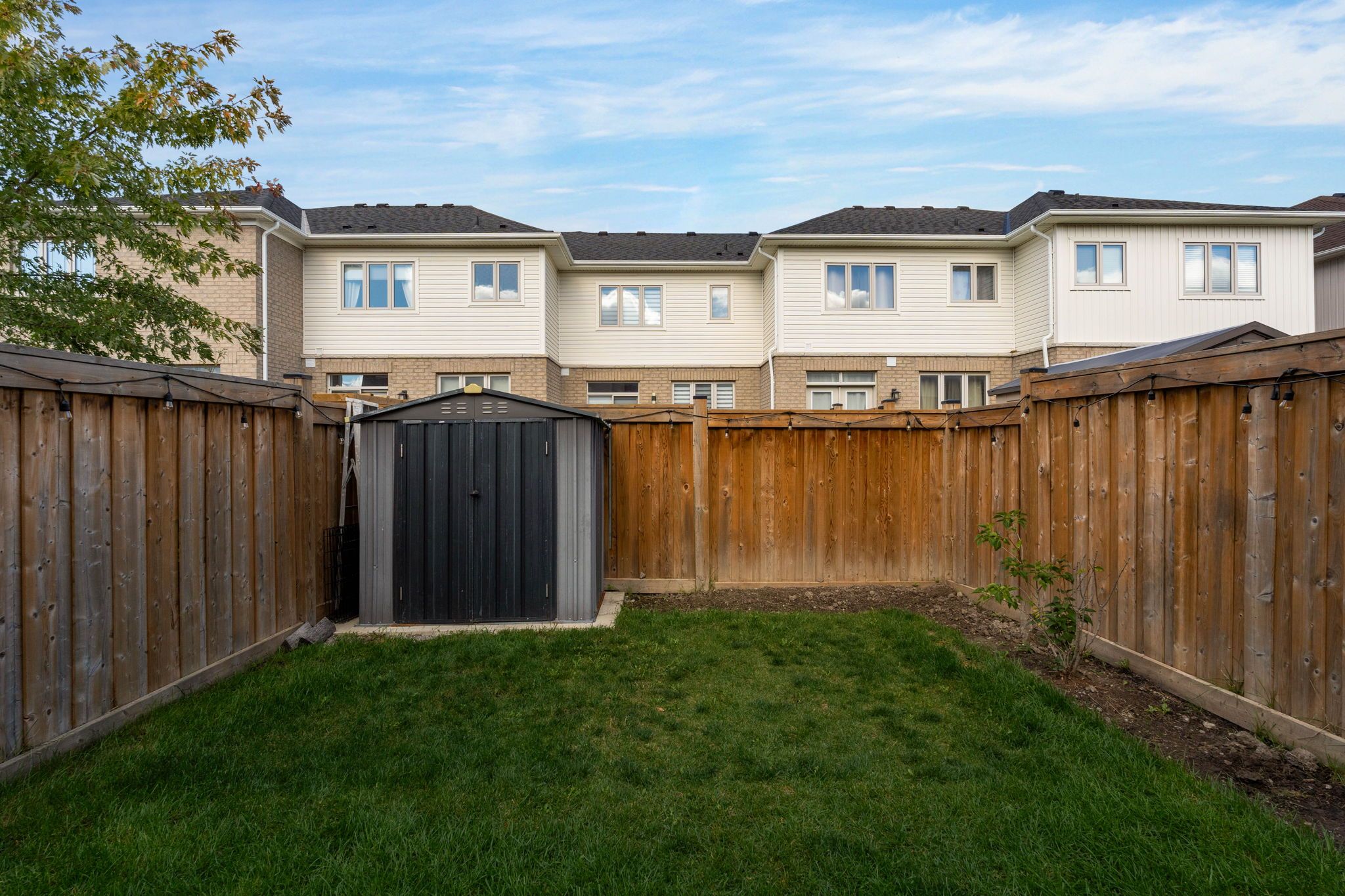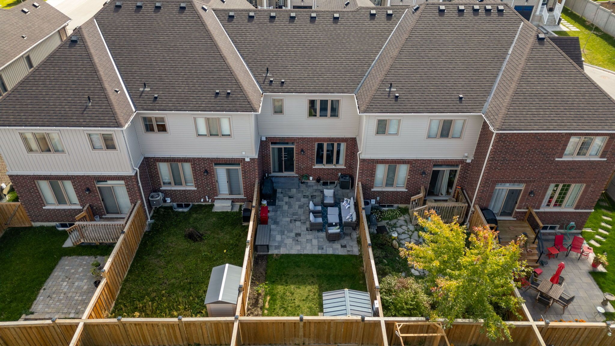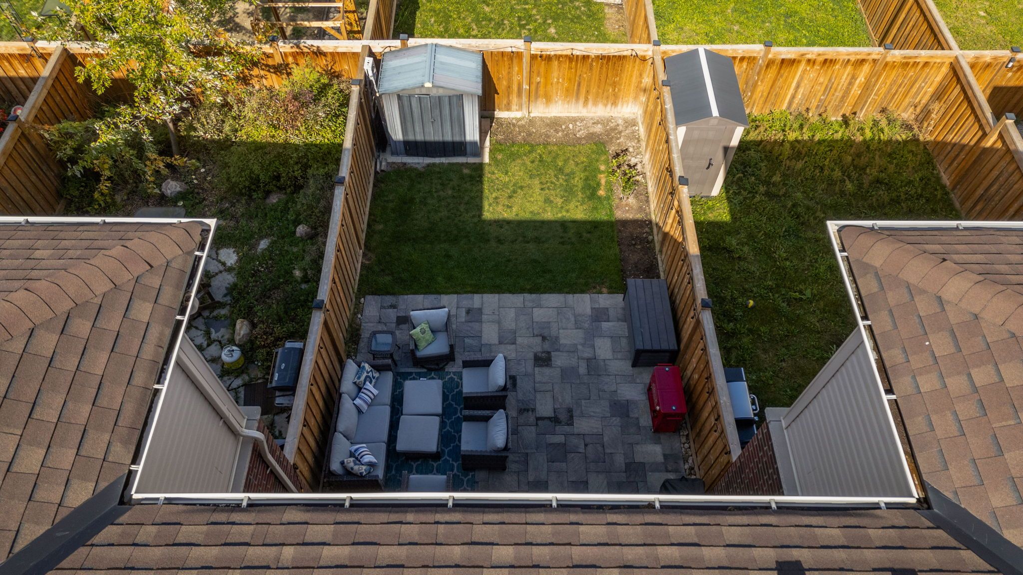 • Private fenced backyard with a large stone patio for outdoor fun.