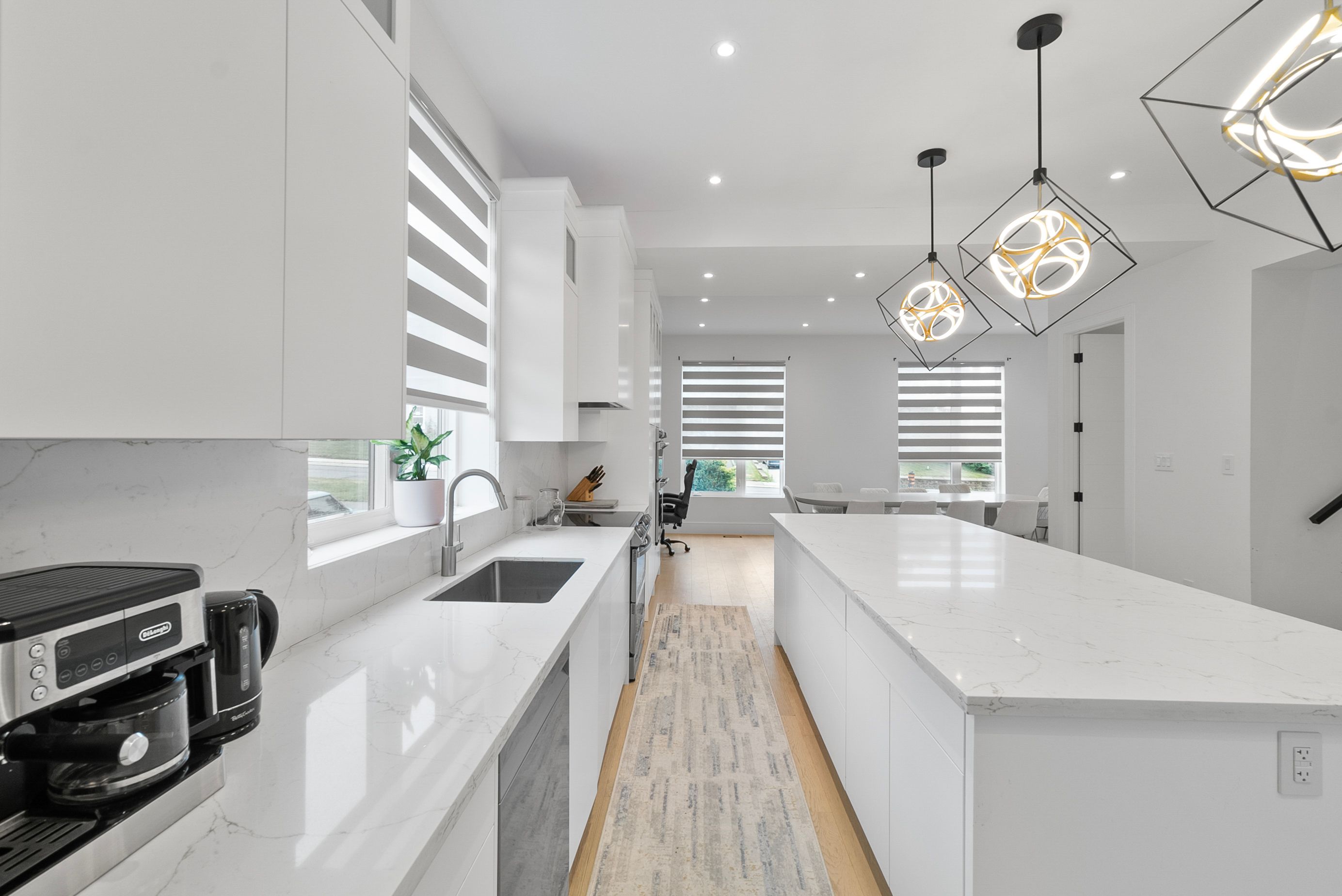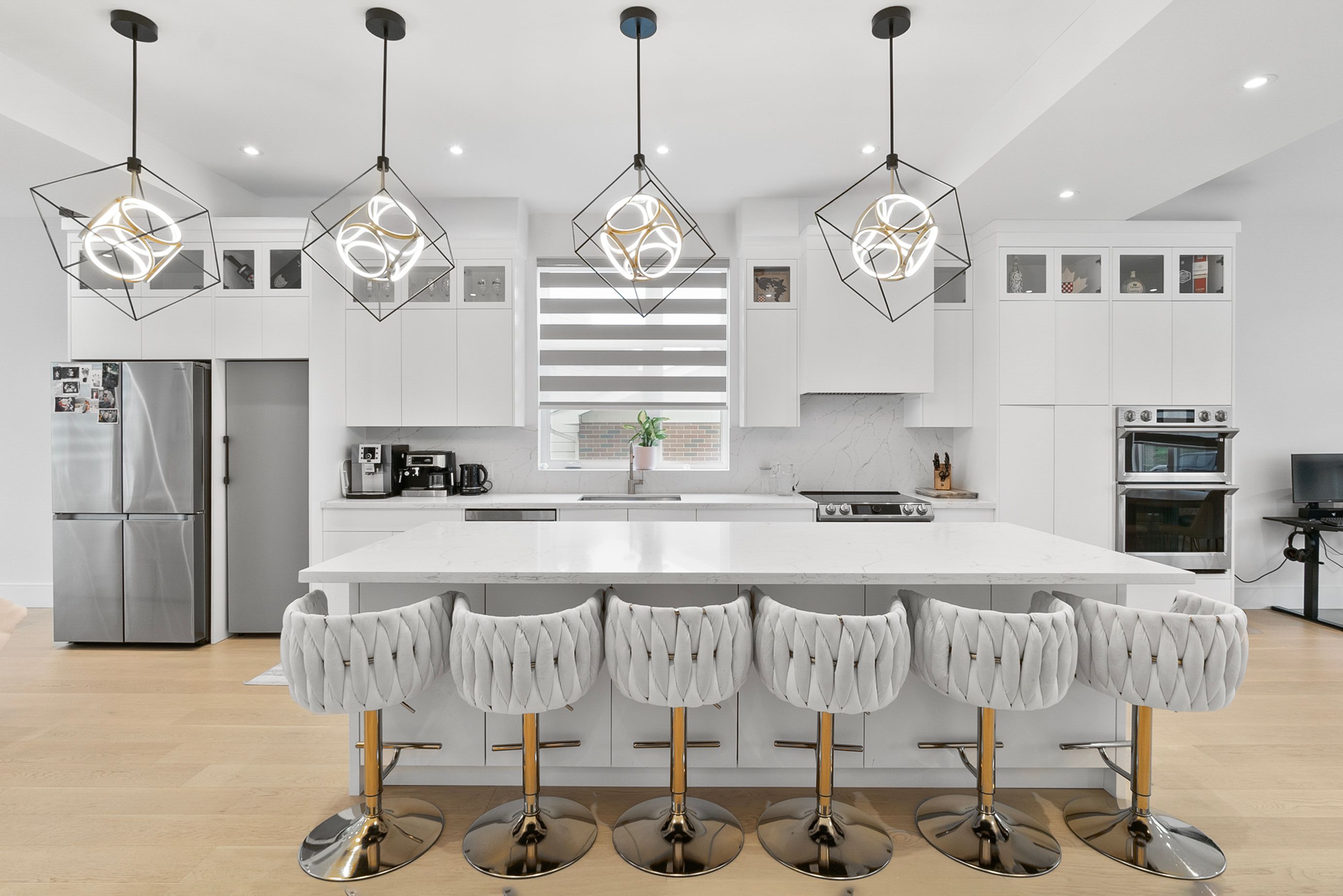 Modern luxury home on premium lot with pool & walkout basement. This stunning custom-built home offers over 3,000 sqft of luxurious living on a premium lot with a sparkling in-ground pool and finished walkout basement. This thoughtfully designed residence features modern finishes throughout, ideal for both family living and entertaining. The main floor boasts an open-concept layout with a chefs kitchen equipped with built-in stainless steel appliances, oversized quartz island, and ample cabinetry. Elegant designer lighting, wide-plank flooring, and large windows fill the space with natural light. Enjoy added living space in the sunroom, finished with warm wood tones, recessed lighting, and direct access to the backyard. Upstairs bathrooms are outfitted with floating vanities, wall-mounted toilets, and in-floor heating for ultimate comfort. The finished basement includes a walkout, perfect for multigenerational living or future rental potential. Additional features include: heated bathroom floors, custom cabinetry with display uppers, modern lighting throughout, attached garage + large driveway with no sidewalk, oversized windows with designer blinds, stylish powder room with marble like accents. Outdoor space offers a private backyard oasis with in-ground pool, patio, and room to entertain or relax. Located on a quiet street in a family-friendly neighbourhood close to schools, parks, and amenities. Move-in ready and built to impress this one wont last!