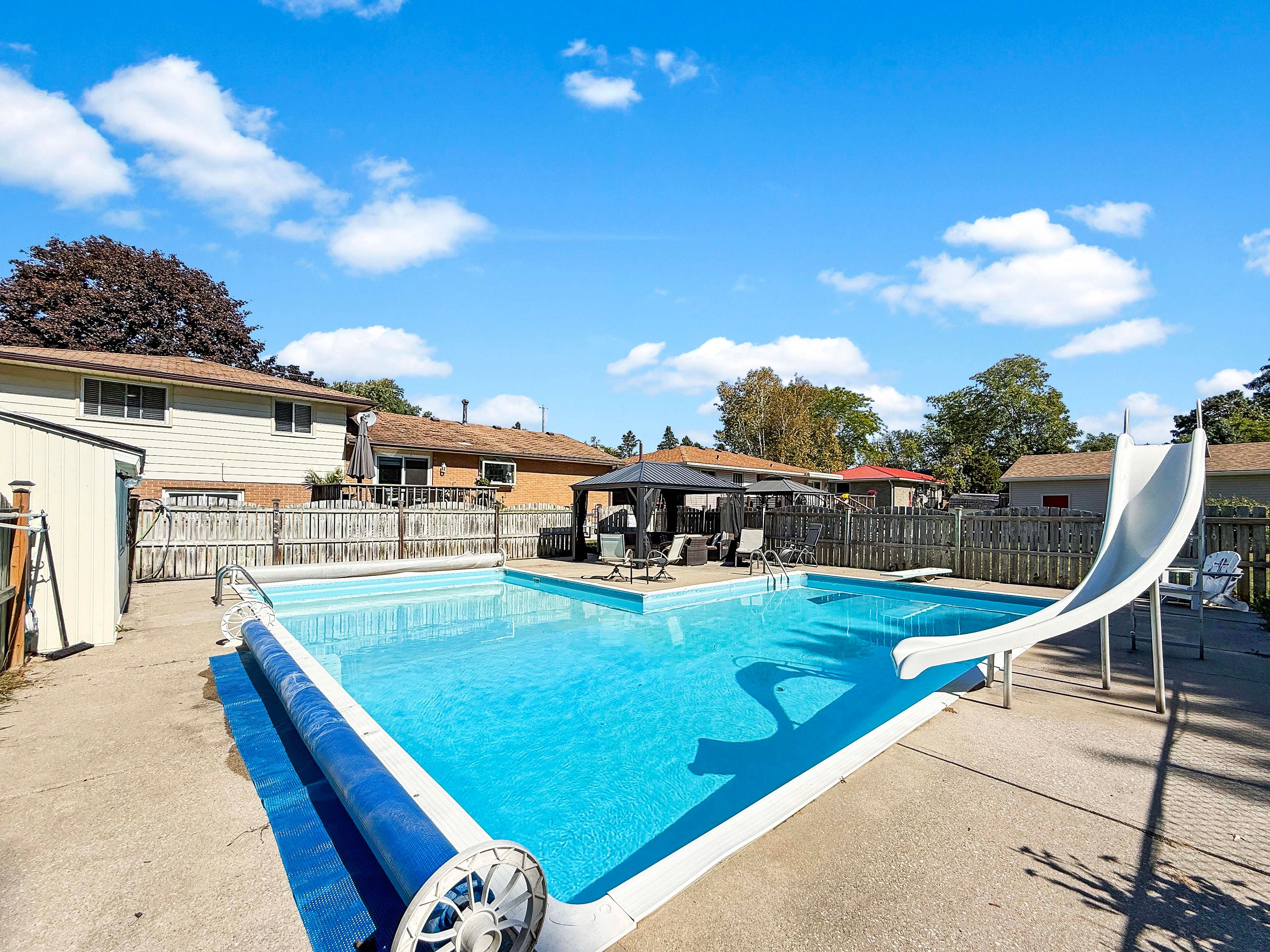 This is the one! A beautiful side-split in a quiet simcoe neighbourhood! This 3+1? Bed, 2? Bath home features a refreshed kitchen with quartz counters, soft-grey cabinetry and stainless appliances. A bright main-floor living room leads to multiple finished levels, including a lower-level with in-law suite potential via a separate garage entrance. Outside on the 200ft lot, enjoy a beautiful in-ground pool, generous patio space and pergola, two separate gas hookups. New heat pump installed to maximize hvac efficiency and savings. Close access to schools, parks and shopping complete the package.