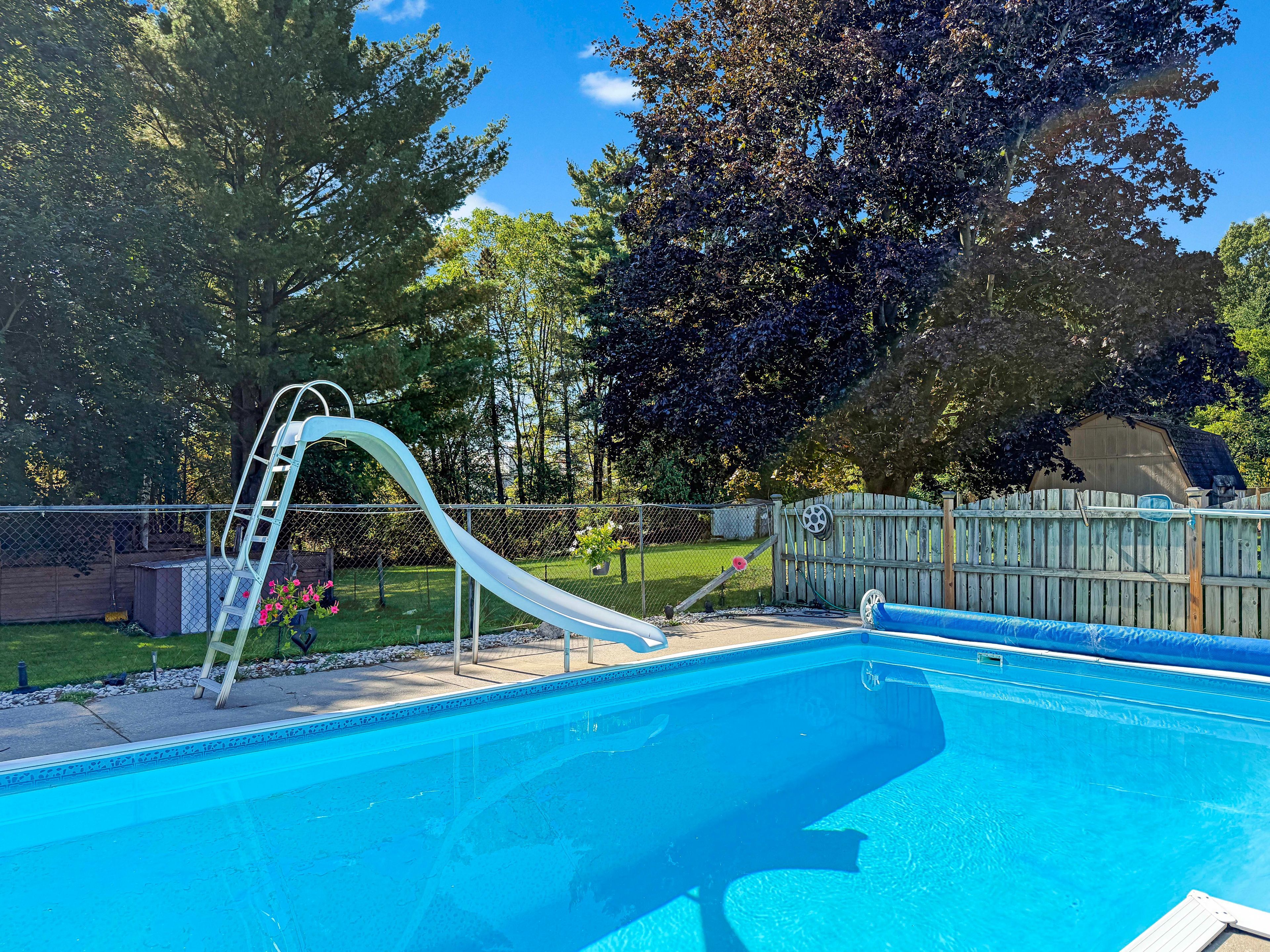 • Expansive 200ft lot featuring an in-ground pool and patio.