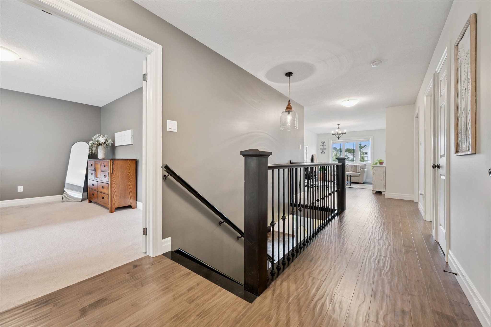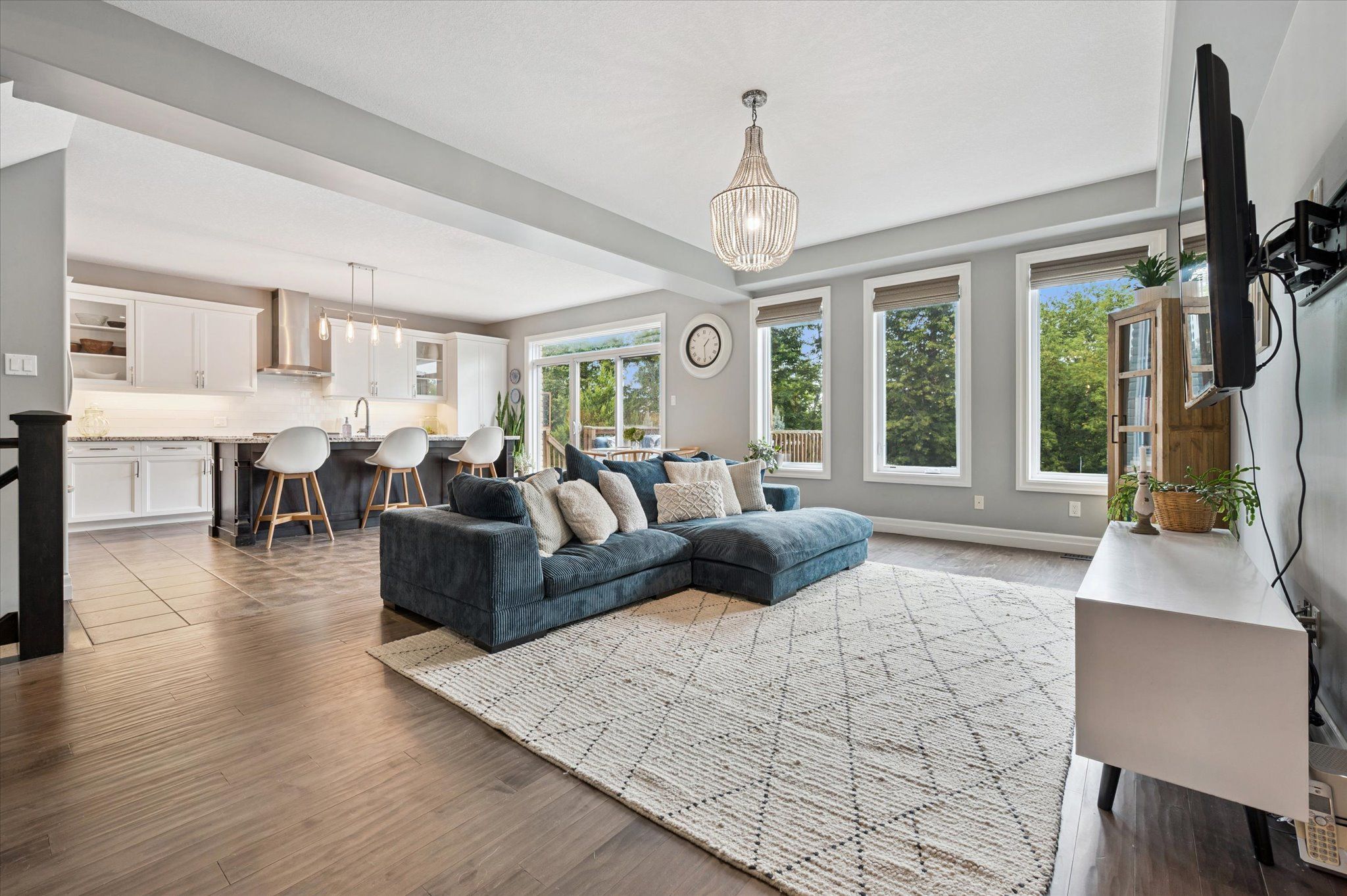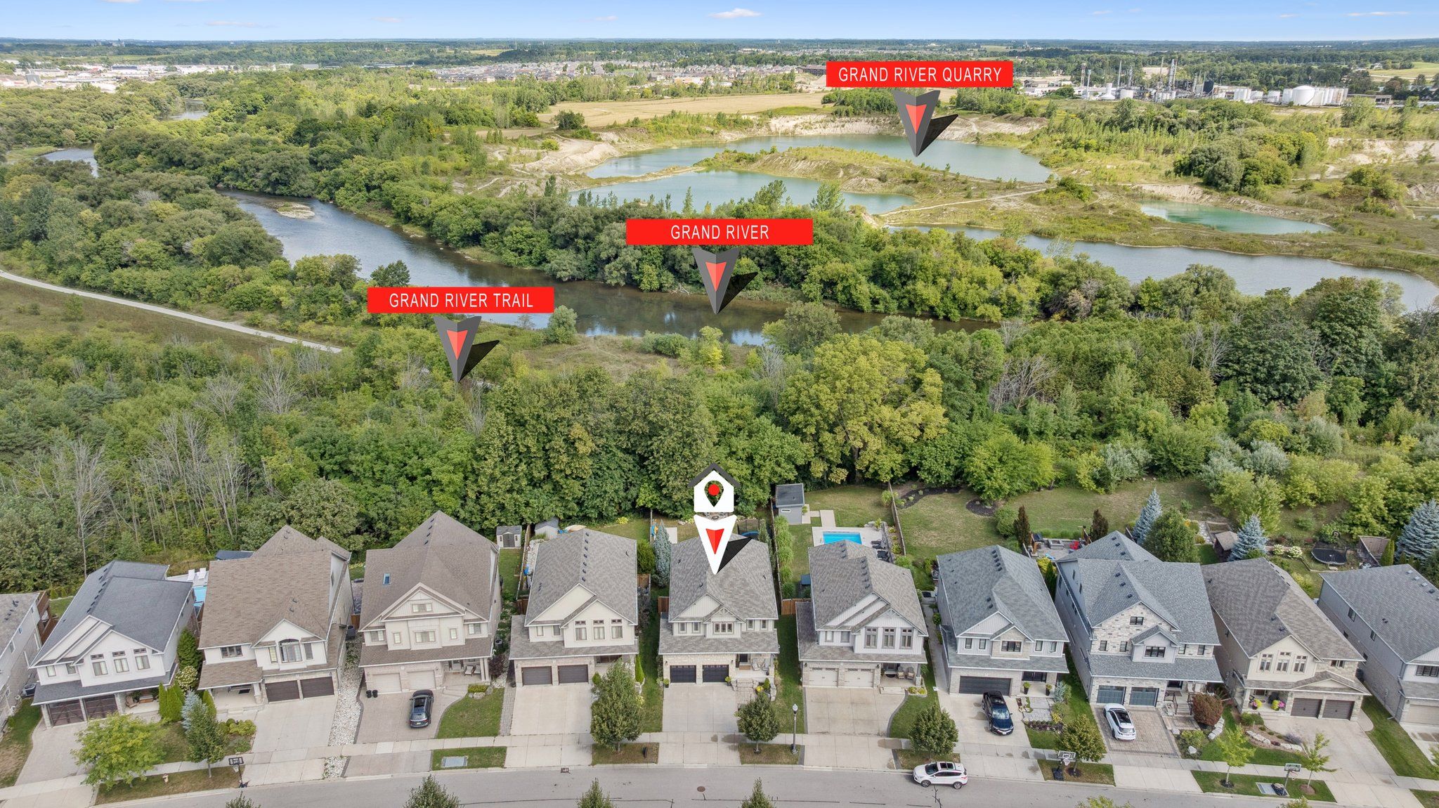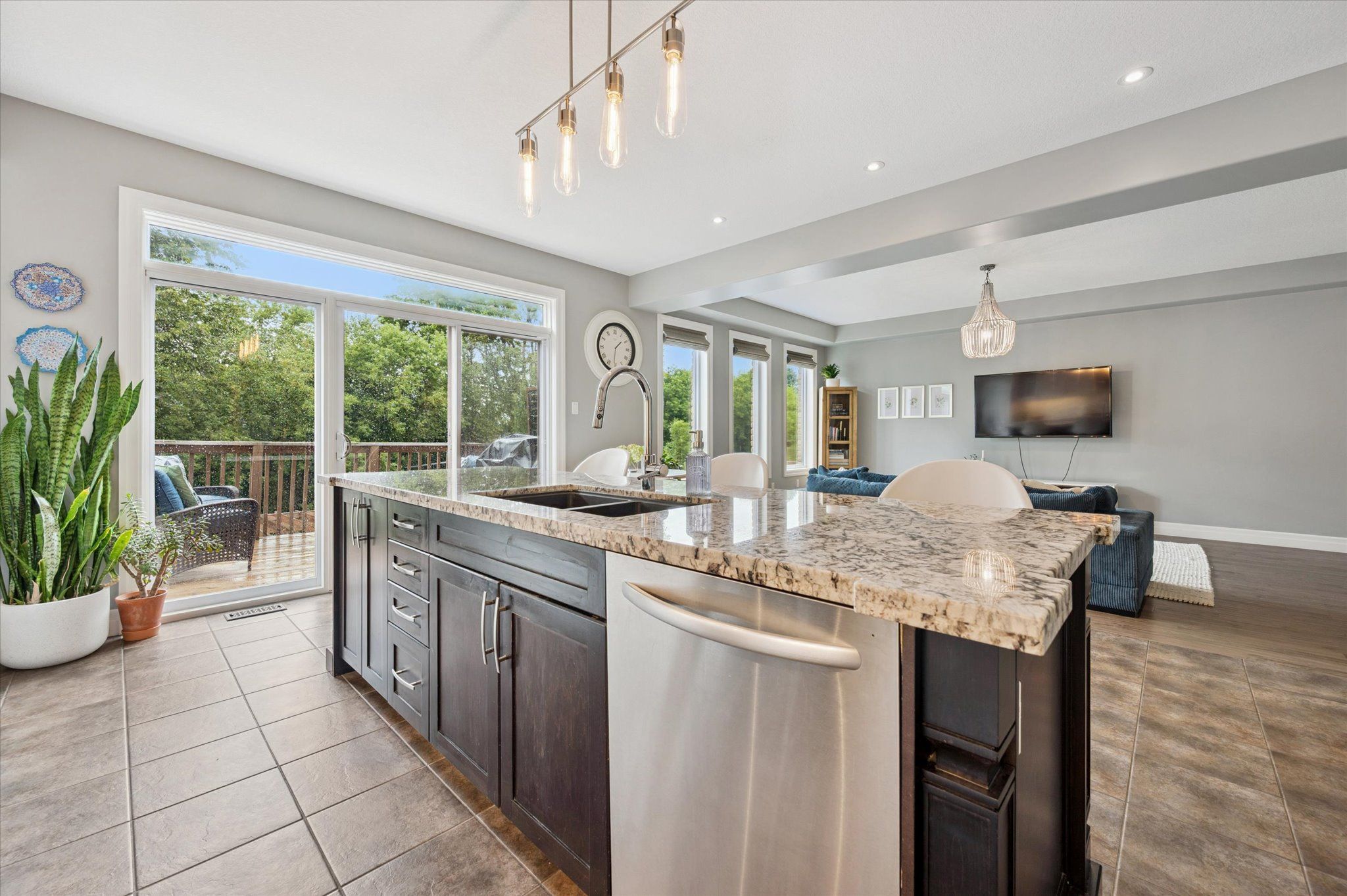 Welcome to this stunning custom-built home in the highly sought-after lackner woods neighbourhood in kitchener. Tucked against a backdrop of mature trees and backing onto green space with no rear neighbours, this home offers a peaceful, nature-inspired lifestyle just minutes from city conveniences. Outdoor enthusiasts will love the endless options for hiking, jogging, canoeing and exploring the surrounding parks and trails including direct access to the scenic grand valley trail and walter bean grand river trail. Located close to springmount park, idlewood creek, and the grand river natural area. Chicopee ski & summer resort is also nearby, offering snowboarding, downhill skiing, tubing and more! Inside, the home is equally impressive. The heart of the main floor is a breathtaking floor-to-ceiling muskoka-style, two-sided stone fireplace that warms both the great room and the dining area. The chefs kitchen is a show stopper featuring an oversized island and open-concept layout with direct access to the large laundry/mudroom and a walkout to the backyard deck. Upstairs, the primary suite is a true retreat with its spacious dressing room/walk-in closet and luxurious 5-piece ensuite. Two additional bedrooms, a 4-piece bath, and a flexible upper-level family room or office space complete this level. The walkout basement offers 9 foot high ceilings, oversized windows, rough-in for a bathroom, and endless potential to customize to your needs. Step outside to enjoy additional living space with a backyard deck off the kitchen, a beautiful stone patio, outdoor firepit and a level yard that backs onto nature. A 16' x 10' concrete pad is ready for your future shed. Situated on one of the largest lots in the neighbourhood, this home offers a muskoka-like setting right in the city with easy access to highway 401, highway 24, guelph, and all the amenities you need. Come experience the perfect blend of nature, comfort, and convenience.