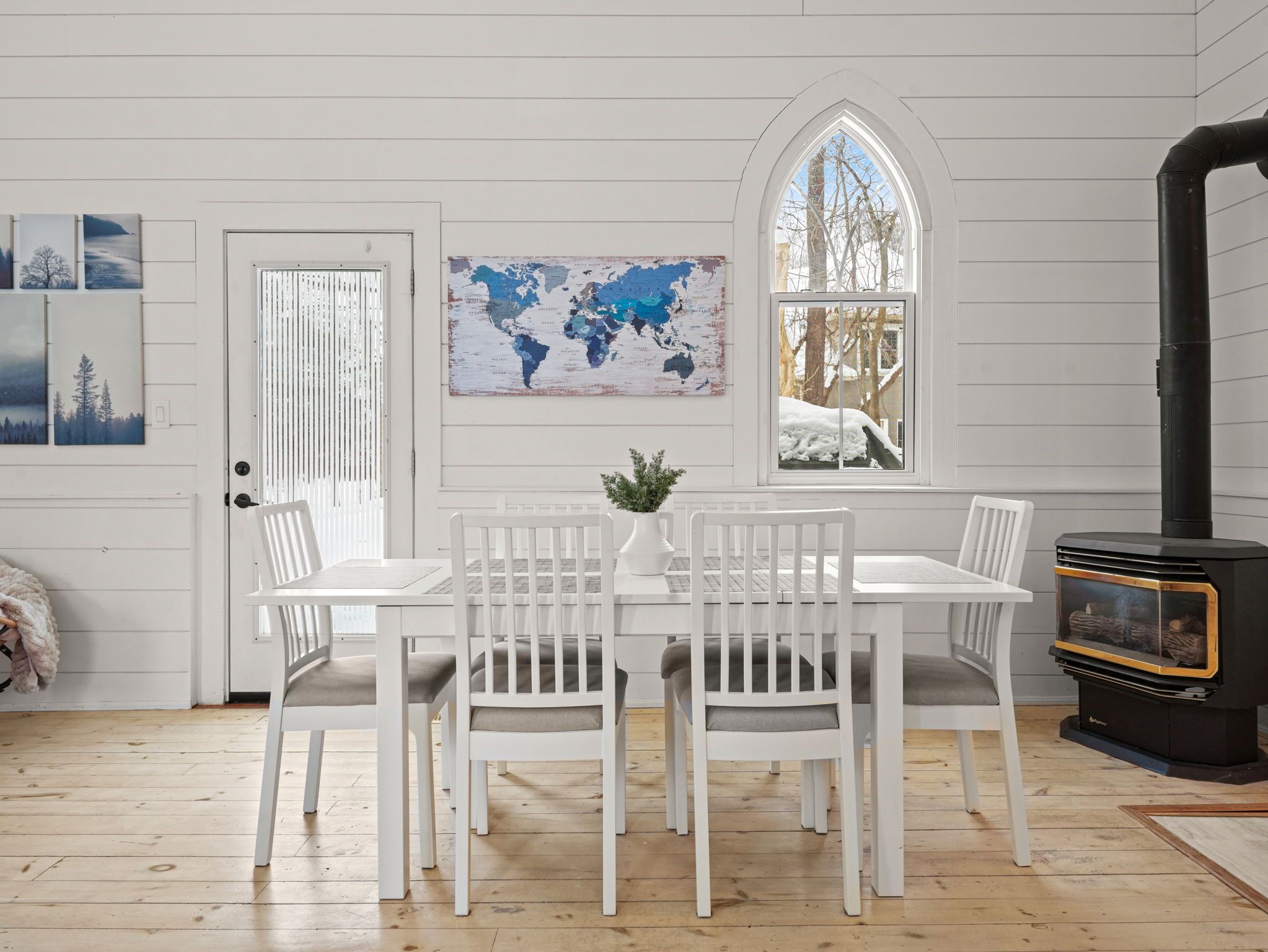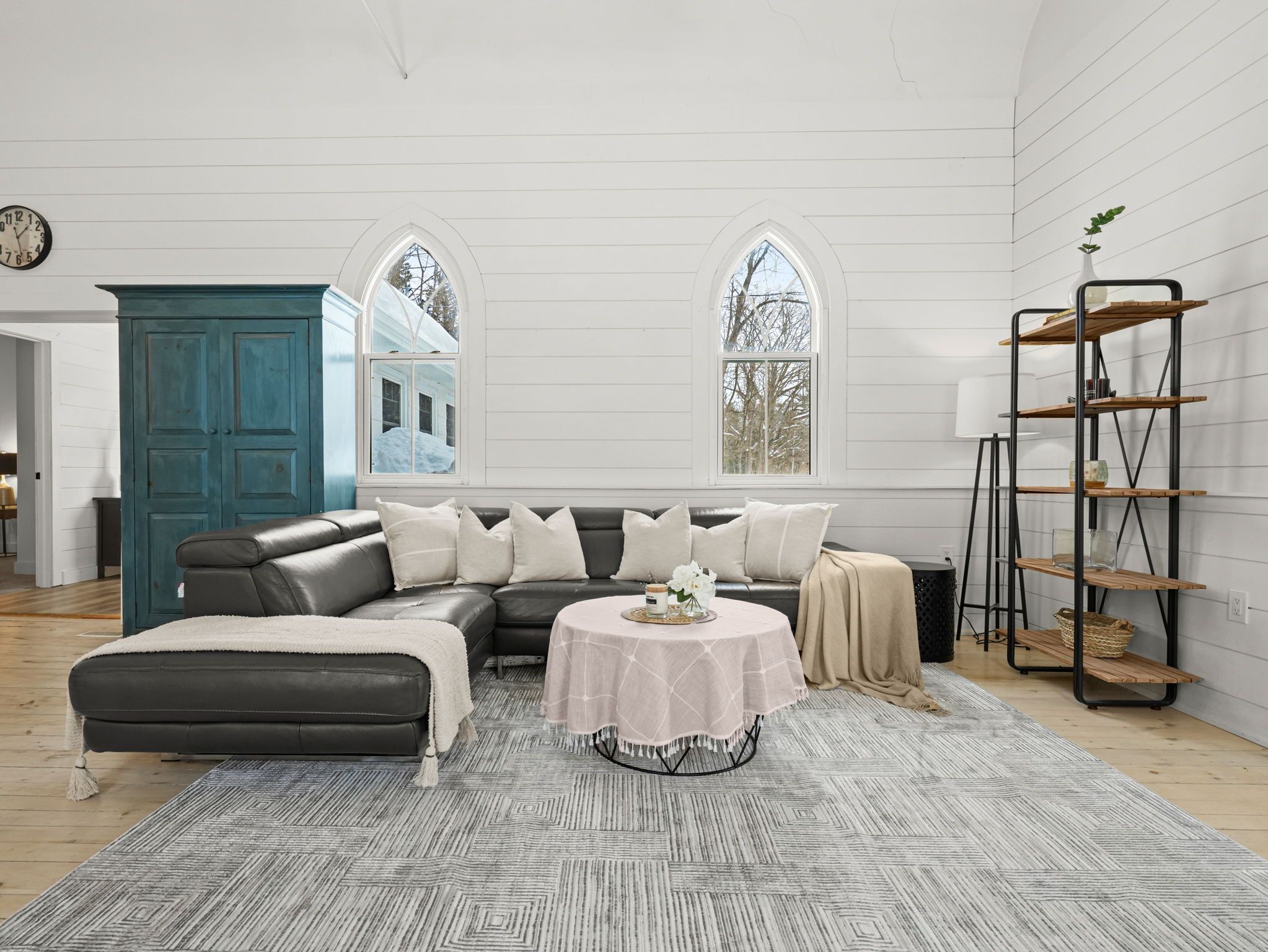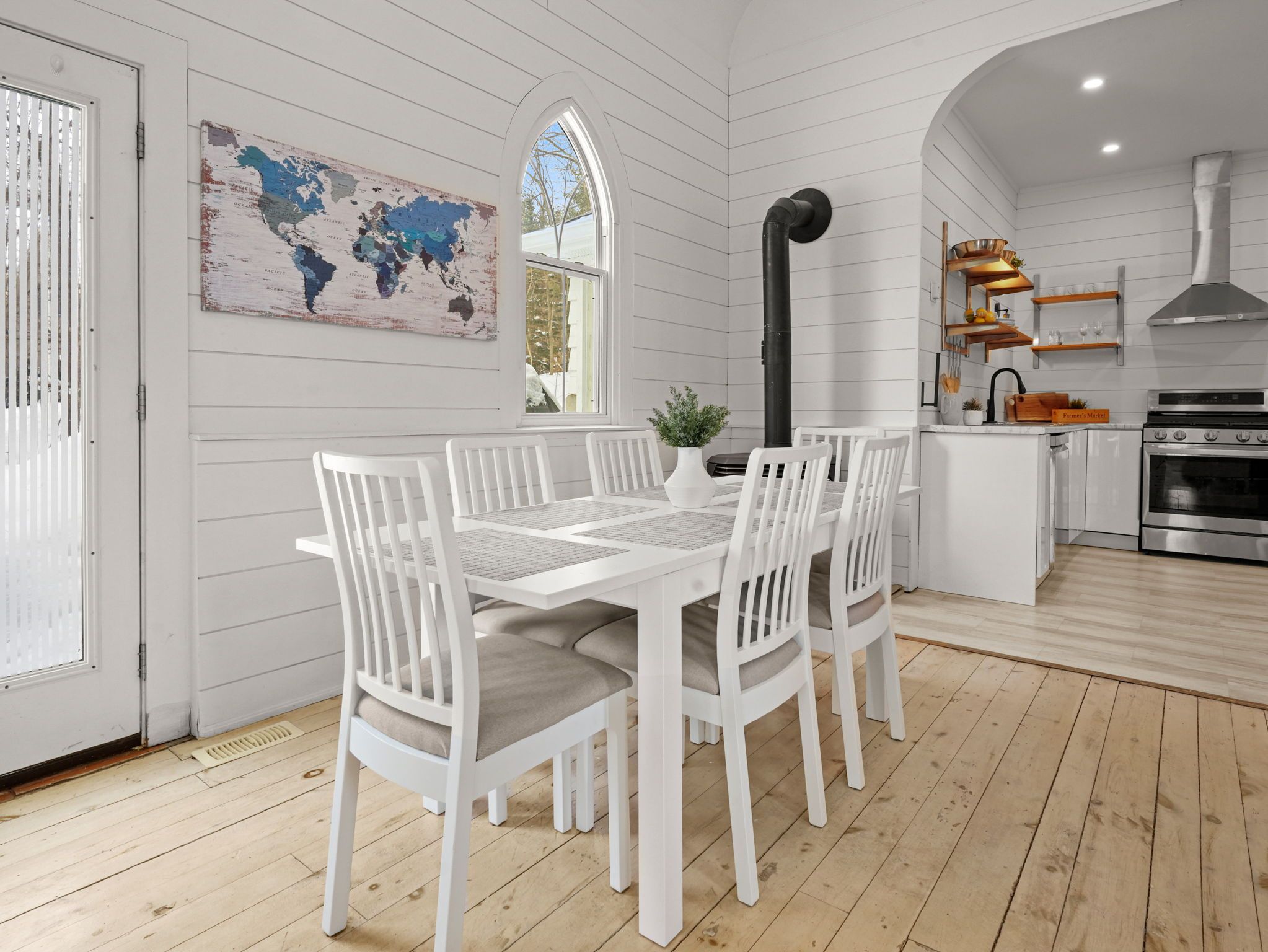 A rare opportunity to own a true piece of midhurst history. This iconic 1800s church has been thoughtfully transformed into a stunning private residence that preserves its heritage while delivering modern comfort and functionality. Rich with original character and architectural detail, the home blends old-world craftsmanship with tasteful contemporary upgrades. The former sanctuary now serves as the main living space and kitchen, where soaring ceilings and dramatic volume create an unforgettable focal point where a gas fireplace casts a nice glow and wamth. Natural light pours through the unique windows, highlighting the scale and warmth of the open-concept design - ideal for both quiet living and entertaining. The home offers three generously sized bedrooms, carefully integrated to respect the building's historic integrity while providing practical everyday living. Outside, a charming side patio offers a peaceful place to relax and enjoy the surroundings in one of midhurst's most coveted communities. This landmark property is more than a home - it is a living story, filled with character, history, and timeless appeal. Key features: all windows on east part of home new 2024, all other windows less than 5 years old, furnace 5 years old, shingles on steeple 2024, remaining roof 10 years old, gas fireplace, 3 good sized bedrooms, 10x10 garden shed, ample parking, new septic tank and bed 2025.