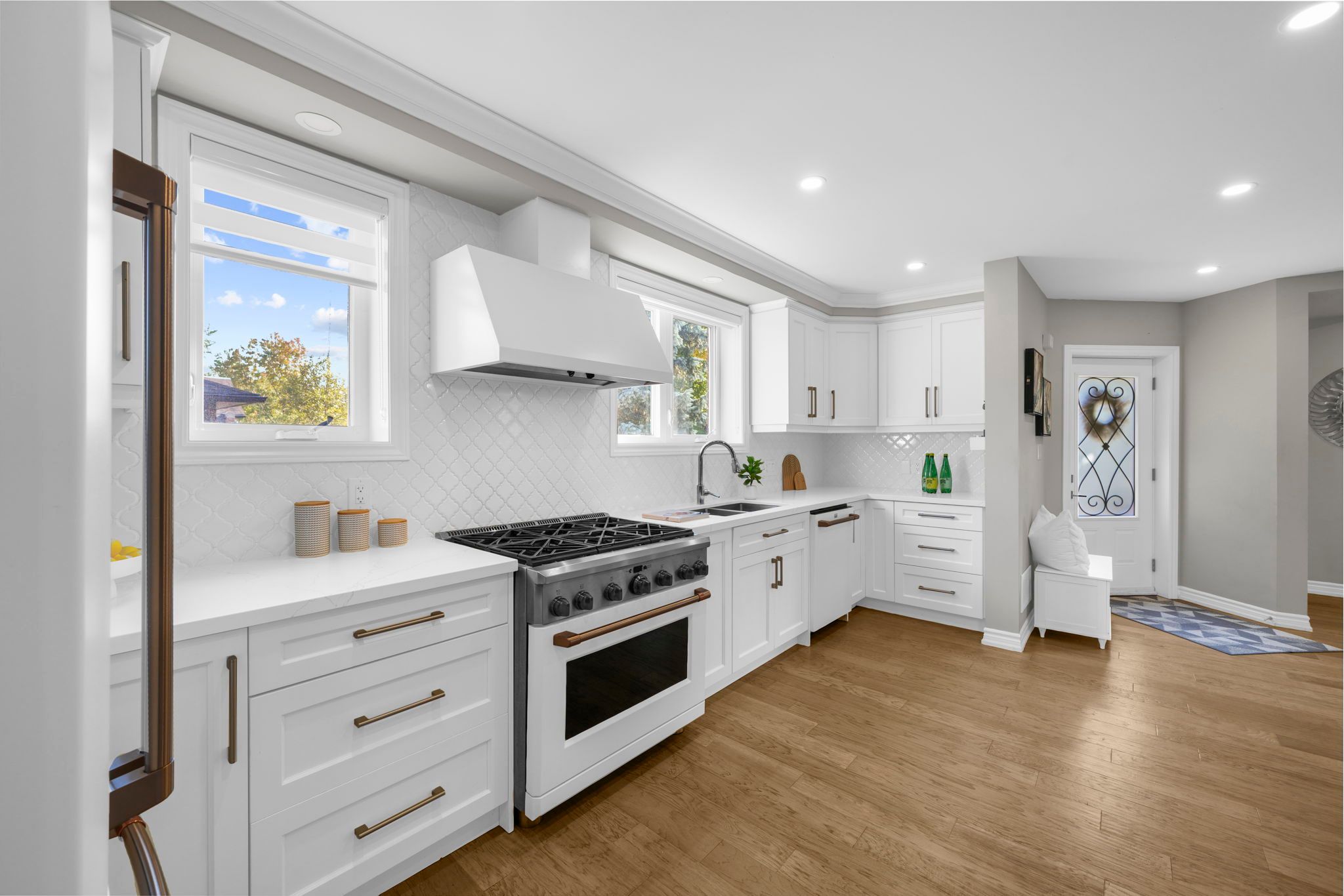 Beautifully maintained 3-bedroom home plus office located in one of brampton's most desirable historic neighborhoods. This home blends classic charm with modern updates and offers a bright, open-concept layout filled with natural light. The main level features a spacious living and dining area, a primary bedroom, and a versatile office space. The kitchen is equipped with high-end off-white café series appliances, including a 36" six-burner gas stove and oven - perfect for those who love to cook. With three full bathrooms, one on each level, the home offers excellent convenience and flexibility for families or guests. The upper level includes two generous bedrooms, while the finished basement provides additional living space ideal for a recreation room, home gym, or guest area. Enjoy a private backyard overlooking the historic alderlea mansion - a serene setting ideal for relaxing or entertaining. This property has been exceptionally well cared for and shows true pride of ownership throughout. Located steps from gage park, garden square, and downtown brampton's charming shops and restaurants. Walking distance to schools and just a 10-minute walk to the brampton go station, offering a quick 45-minute commute to union station. A wonderful opportunity to own a move-in-ready home full of character in a warm, tight-knit community.
