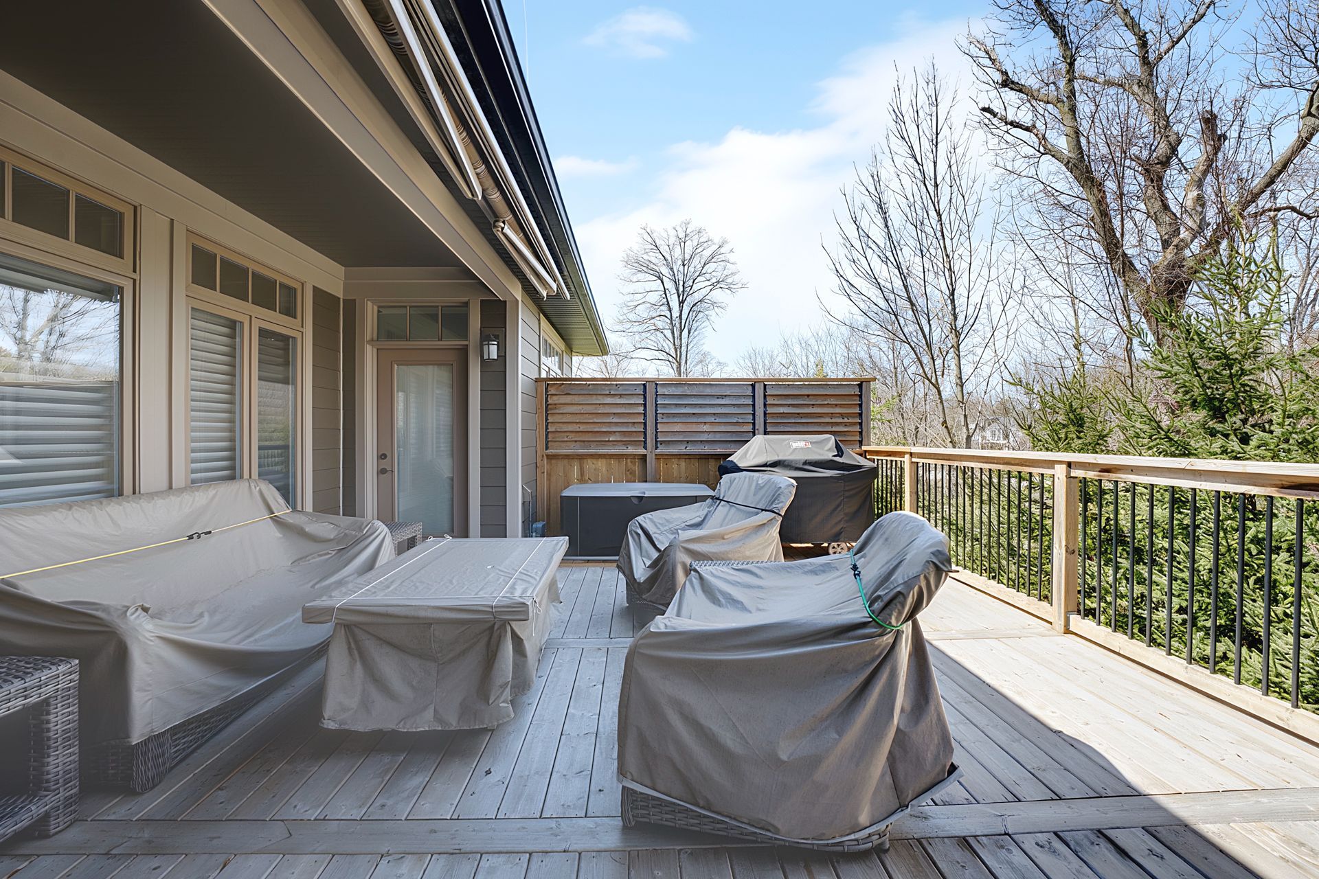 • Expansive deck overlooking a private, landscaped lot with serene woods.