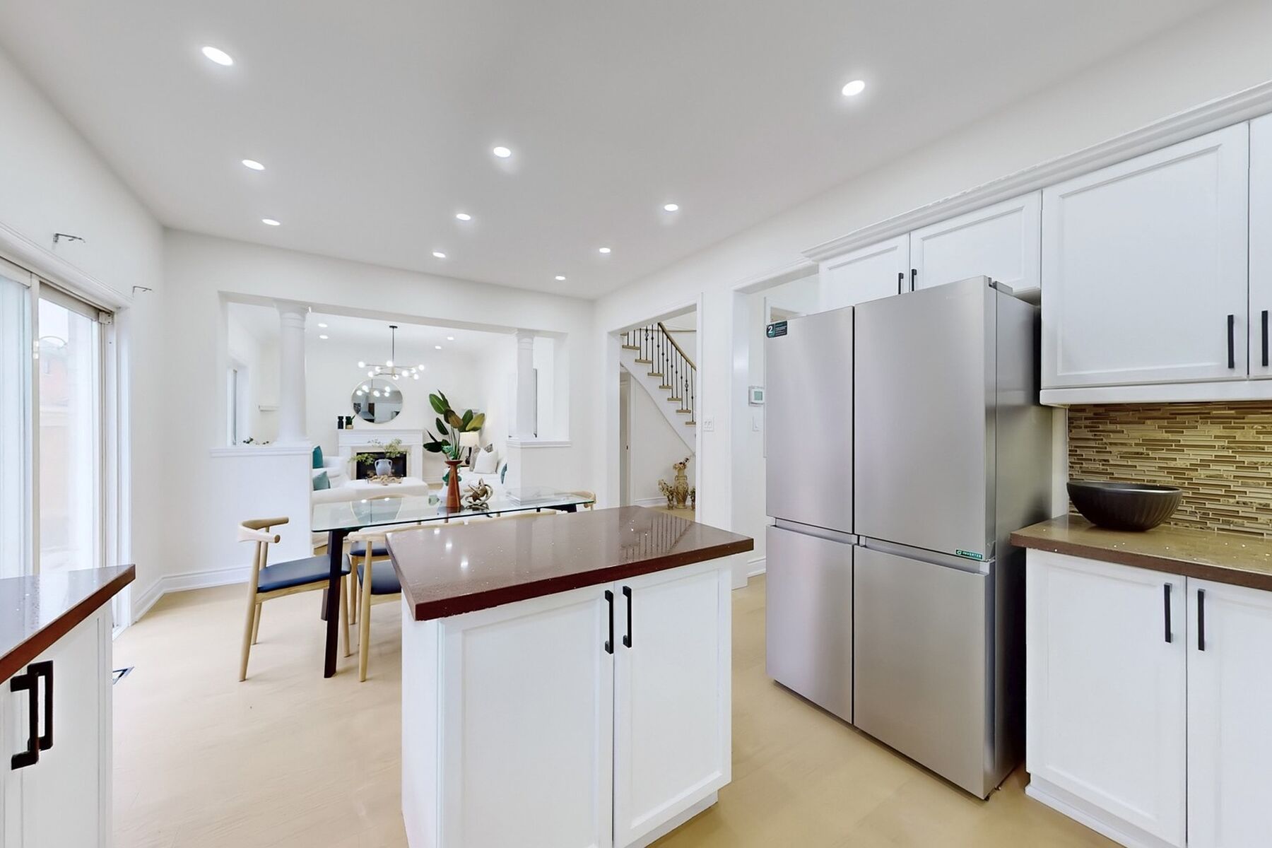Welcome to discover epitome of modern living in prestigious patterson. Over $250k recent upgrades top to bottom. Meticulous designs curates unparalleled luxury and comfort, with an array of top-tier enhancements and lavish finishes. Notable 2024 and 2025 refinements include baths, floorings, stairs, lightings, appliances and a generous list. Expansive floor plan boasts appx 3,005 sf above grade, plus extra-large lower level with private apartments. Ground & second floor spans 5+1 bedrooms & 4 renovated washrooms. Two primary bedrooms adobe abundant space, gorgeous views, walk-in closet & opulent ensuites. Main kitchen new stainless steel appliances incl sleek 4-door refrigerator, 5-burner range & dishwasher. Double over-counter windows & vast walk-out embrace ample natural lights. Breakfast area comfortably sits six, while formal dining is decorated gracefully for larger gatherings. Enormous family room features exceptionally wide windows. Front office strategically appointed away for productive & mindful wellness quad. Elegantly arched picturesque windows enhance home character & curb appeal. Spa-like baths highlight waterfall stone counters, raw grey tiles, high gloss cabinetry, led mirrors, chic lighting, tailored vents, matte black faucets, glass showers and freestand geometric bathtub. High-end engineered hardwood throughout. Sophisticated architectural design utilizes state-of-the-art curved stairs with spacious landing, european oak & contemporary wrought iron railings. Capacious main laundry offers new front-load washer & dryer and access for garage & bsmt. Renovated bsmt spans 3 bedrooms, 2 full baths, secondary kitchen & laundry. Premium laminate. New s/s refrigerator, cooktop & exhaust fan. Additional new washer & dryer await installation. Lennox ac 2023. No sidewalk. Tree-lined enclave for family-friendly ambiance. Experience an extraordinary sanctuary adores a perfect blend of elevated living, serene surroundings and a wealth of metropolitan amenities.