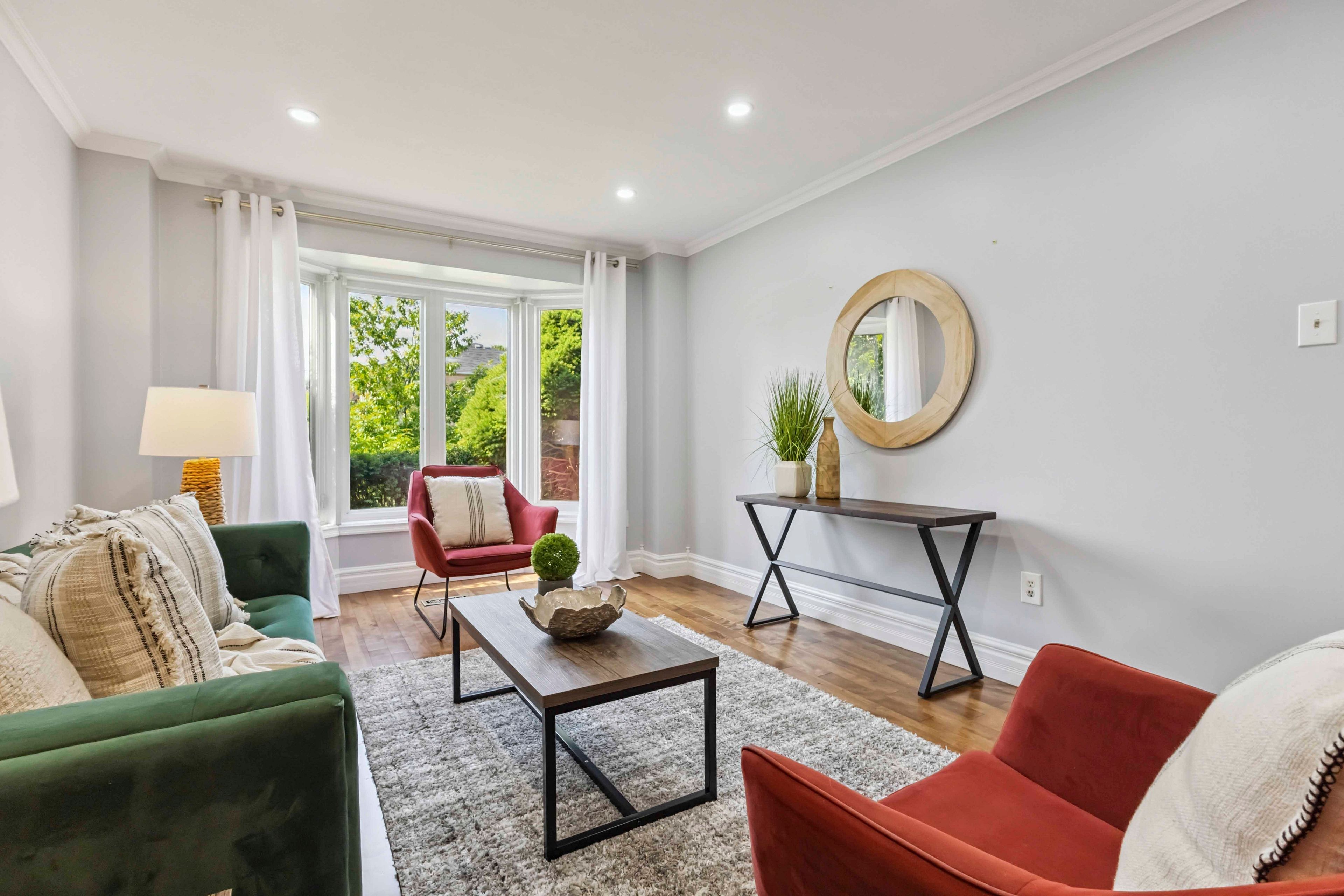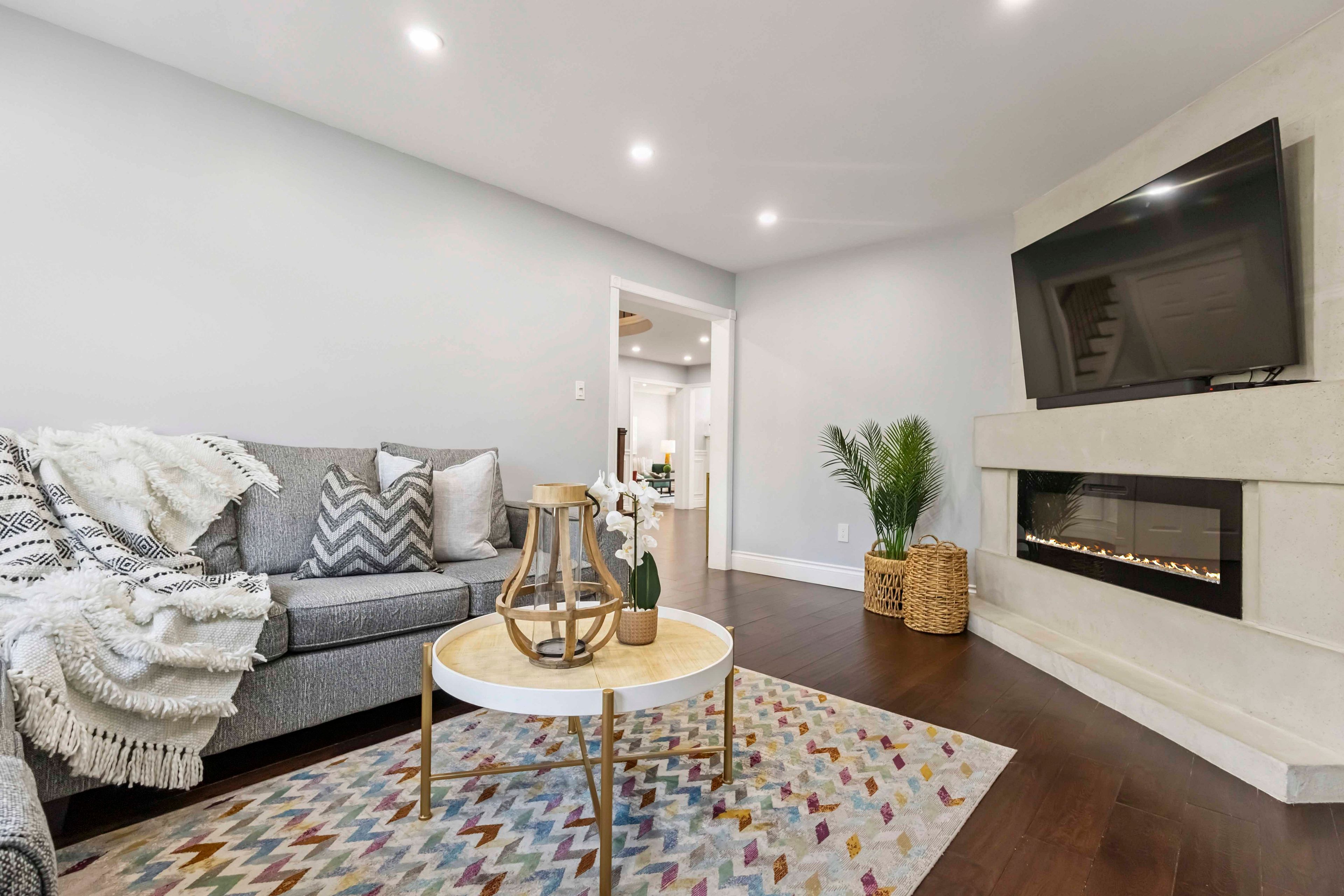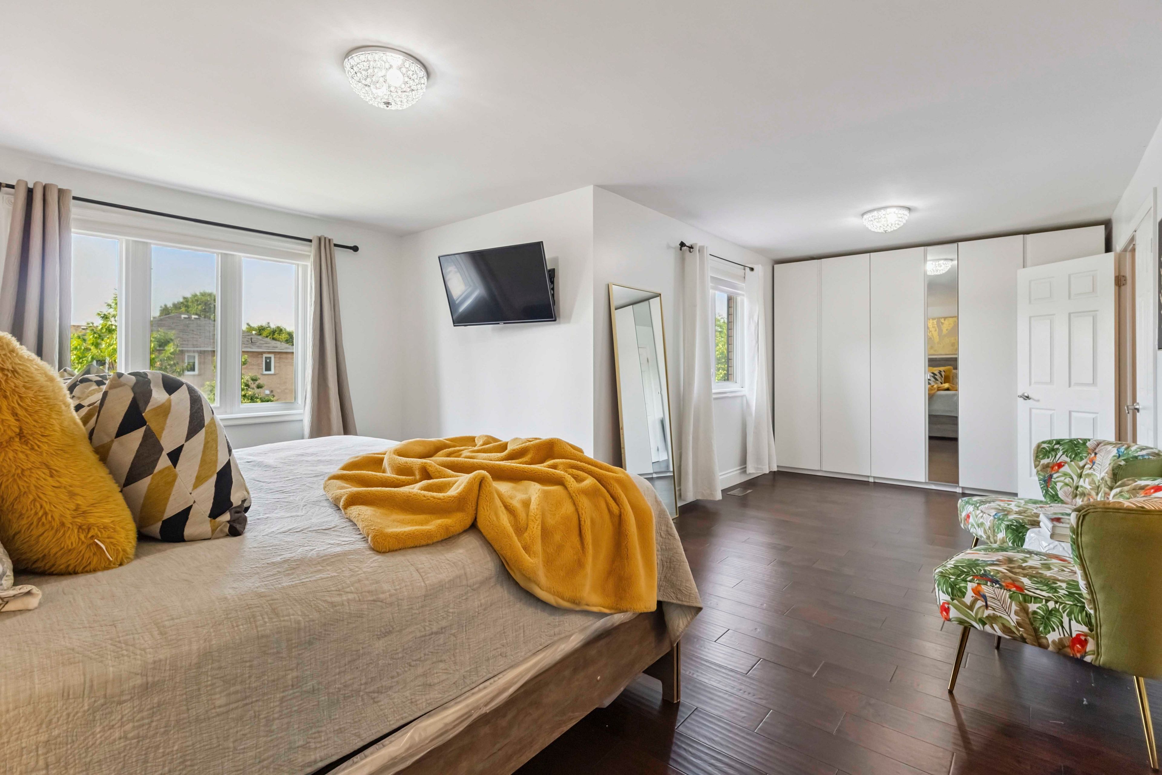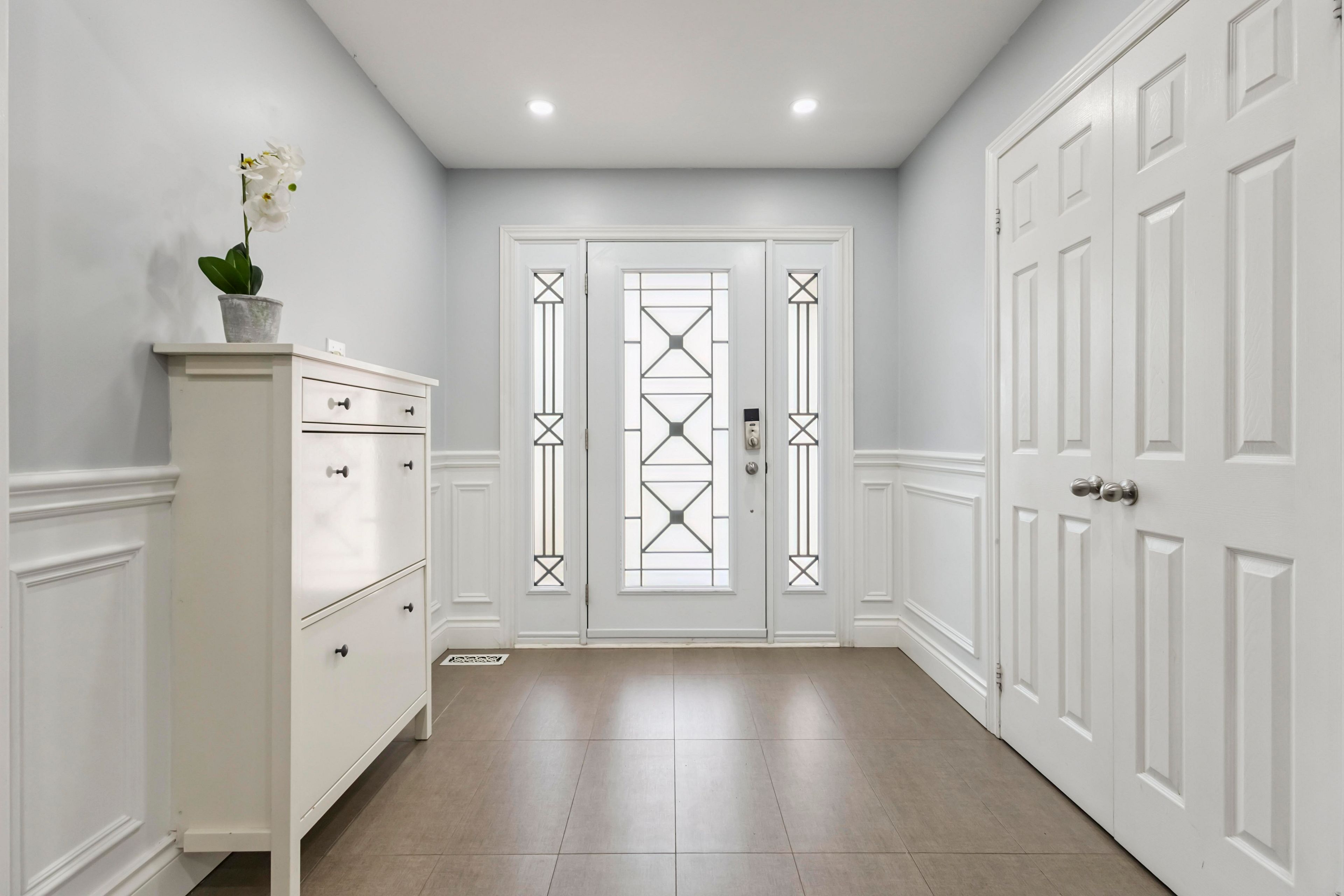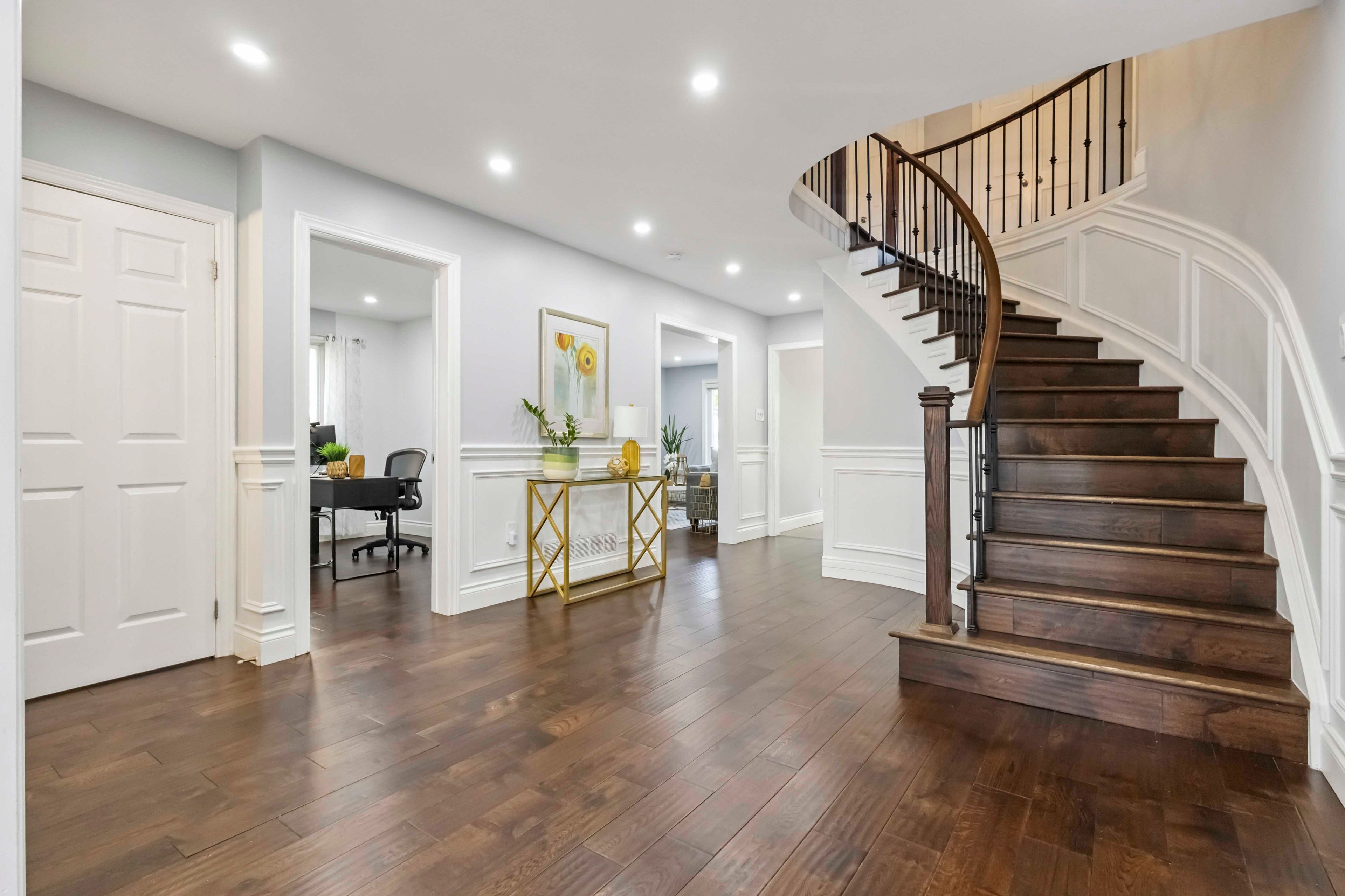 Executive 4+1 bedroom all-brick family home in sought-after rolling acres! This stunning all-brick executive home sits proudly on a private, landscaped corner lot offering exceptional curb appeal with interlocking walkway and manicured gardens. Step inside to a grand foyer with custom built-ins leading to a sun-filled traditional floor plan showcasing extensive hardwood flooring, smooth ceilings, pot lighting, crown moulding, wainscotting, and a striking staircase with wrought iron spindles. Perfect for entertaining, the main floor features elegant formal living and dining rooms plus a spacious family room warmed by a custom fireplace. The gourmet kitchen is a chef's dream-complete with granite counters, tile backsplash, premium built-in miele appliances, and a bright breakfast area with walk-out to a large deck featuring built-in seating, privacy pergola, and lush gardens surrounded by mature trees. A main floor office offers the ideal work-from-home space, while the sunken laundry/mudroom provides convenient garage and side yard access. Upstairs, discover four generous bedrooms including a luxurious primary suite with his & hers closets and a 5-piece ensuite with jacuzzi tub. The second and third bedrooms share a convenient jack & jill ensuite bath. The fully finished lower level offers even more living space with above-grade windows, a spacious recreation room, games area, fifth bedroom, and plenty of storage. Located in one of whitby's most desirable communities-steps to top-rated schools, parks, transit, and all amenities-this home combines elegance, function, and family comfort in one perfect package!