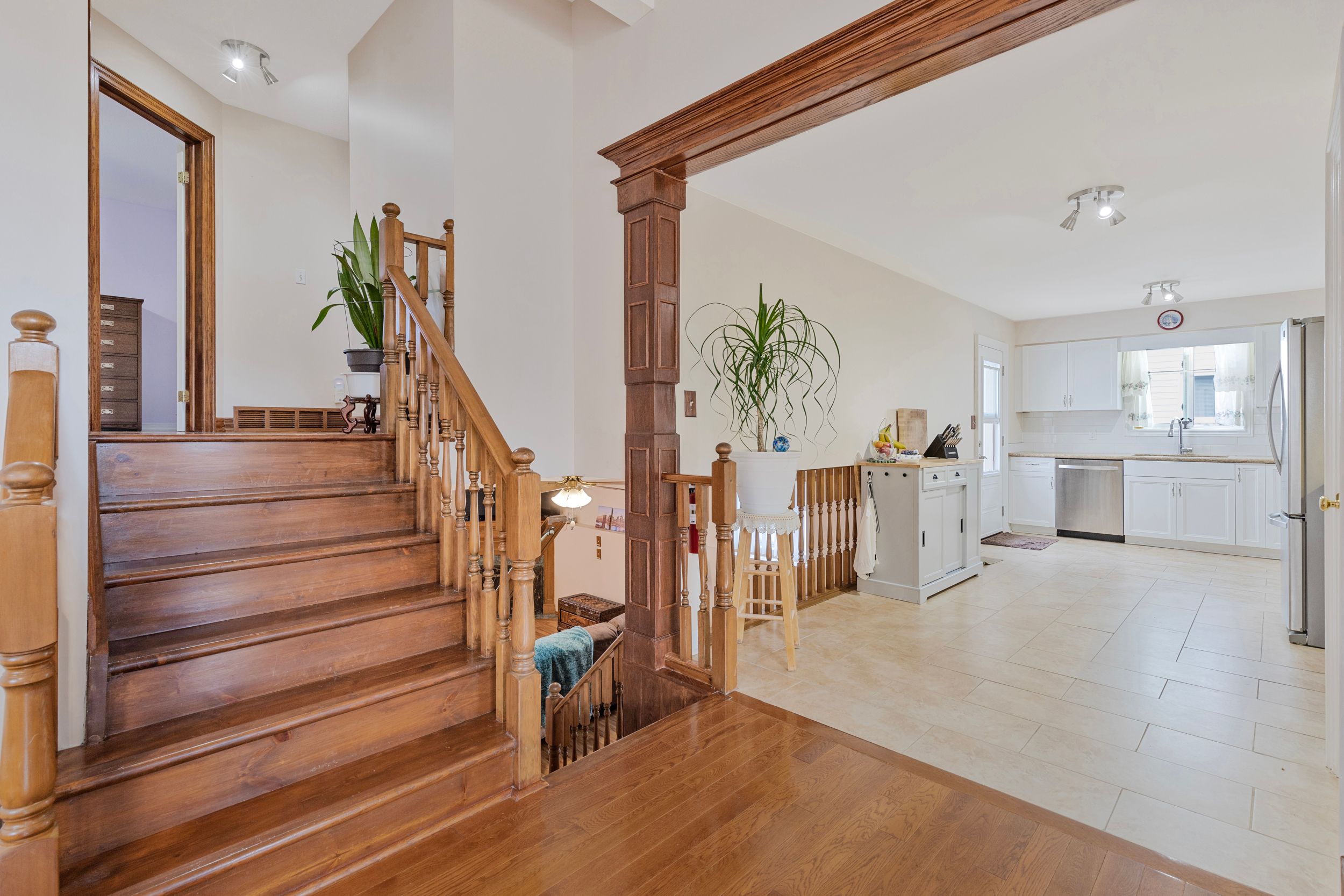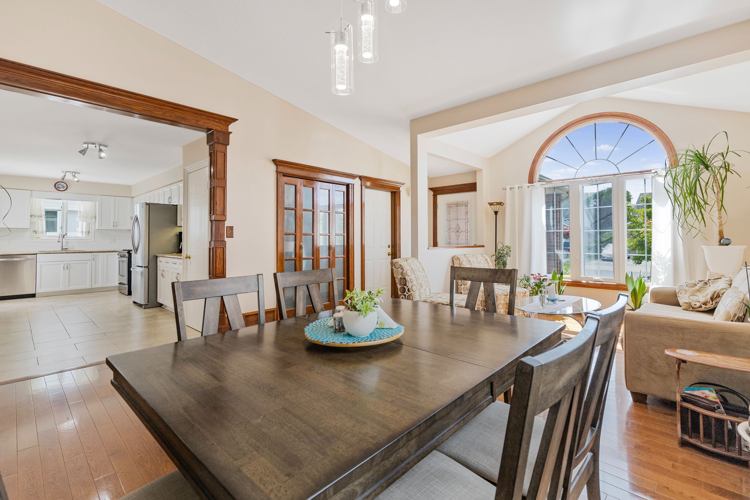• Bright open-concept main floor with vaulted ceilings and large windows.
