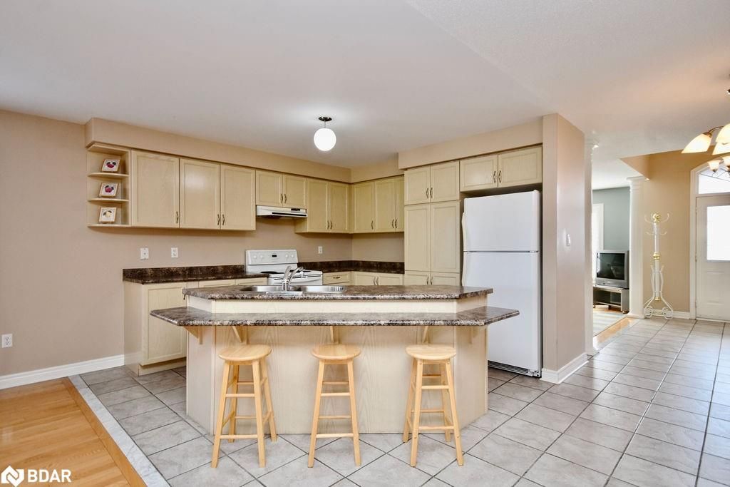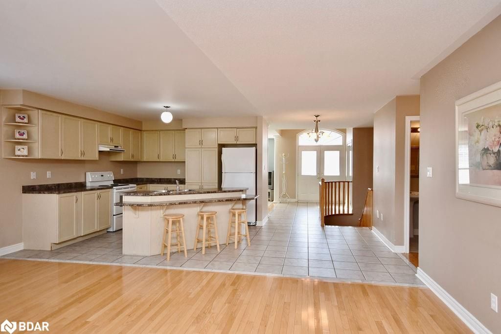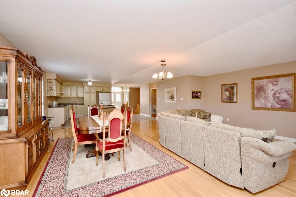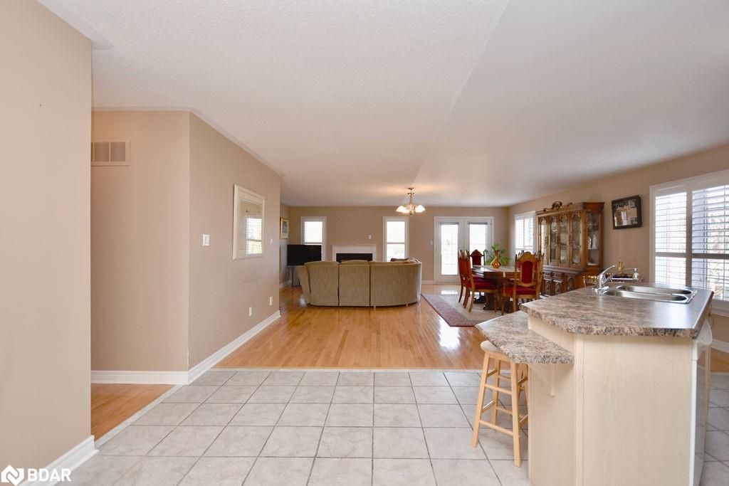 Located in the highly desirable innishore neighbourhood, two blocks from lake simcoe, the go station, local golf courses and conveniently located close to all daily necessities in south barrie. As you step inside, you'll be greeted by a grand foyer with a cozy sitting room, setting the tone for the rest of the home. The open-concept kitchen, boasting ample storage and seamlessly flowing into the spacious living and dining areas. The large living room is the heart of the home, complete with a gas fireplace and a walkout to the backyard, ideal for relaxation and gatherings. Laundry located on the main floor for convenience with inside entry to the garage. This bungalow offers three generous bedrooms, including a primary suite with a 4-piece ensuite and a walk-in closet. Two additional bedrooms are well-sized, and there's a 4-piece bathroom plus a convenient powder room for guests