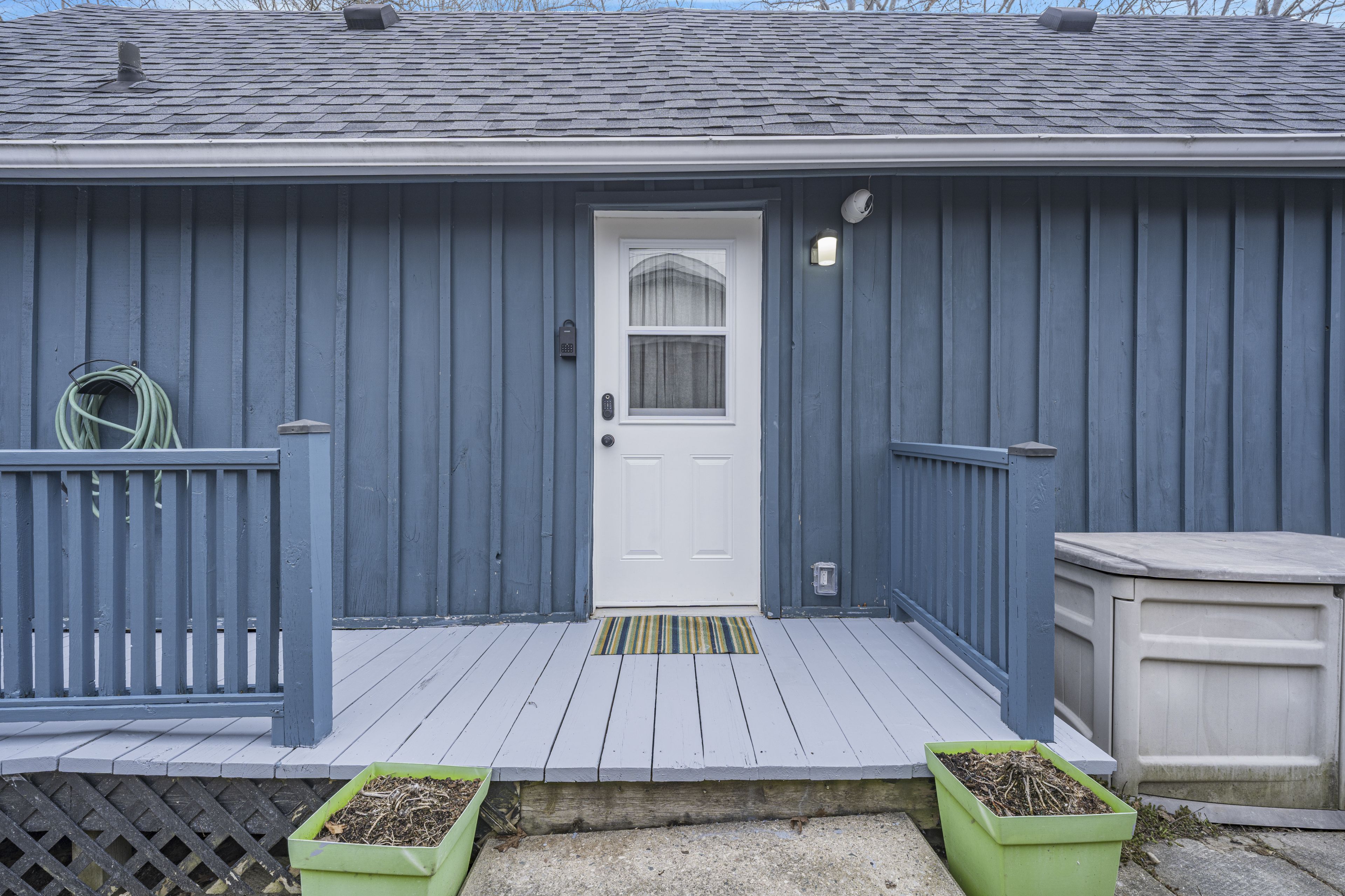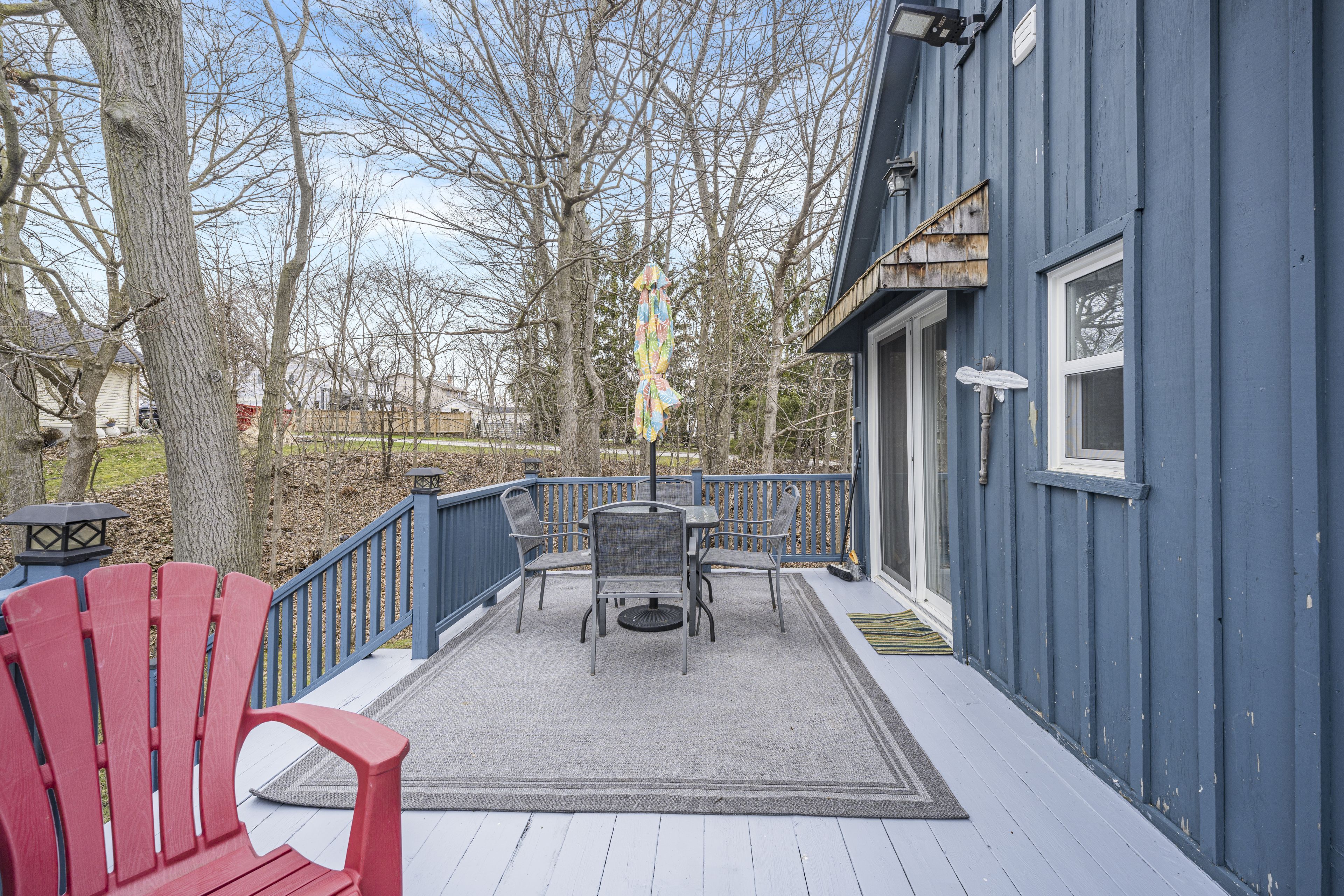 • Private deck overlooking a peaceful ravine for relaxation and gatherings.