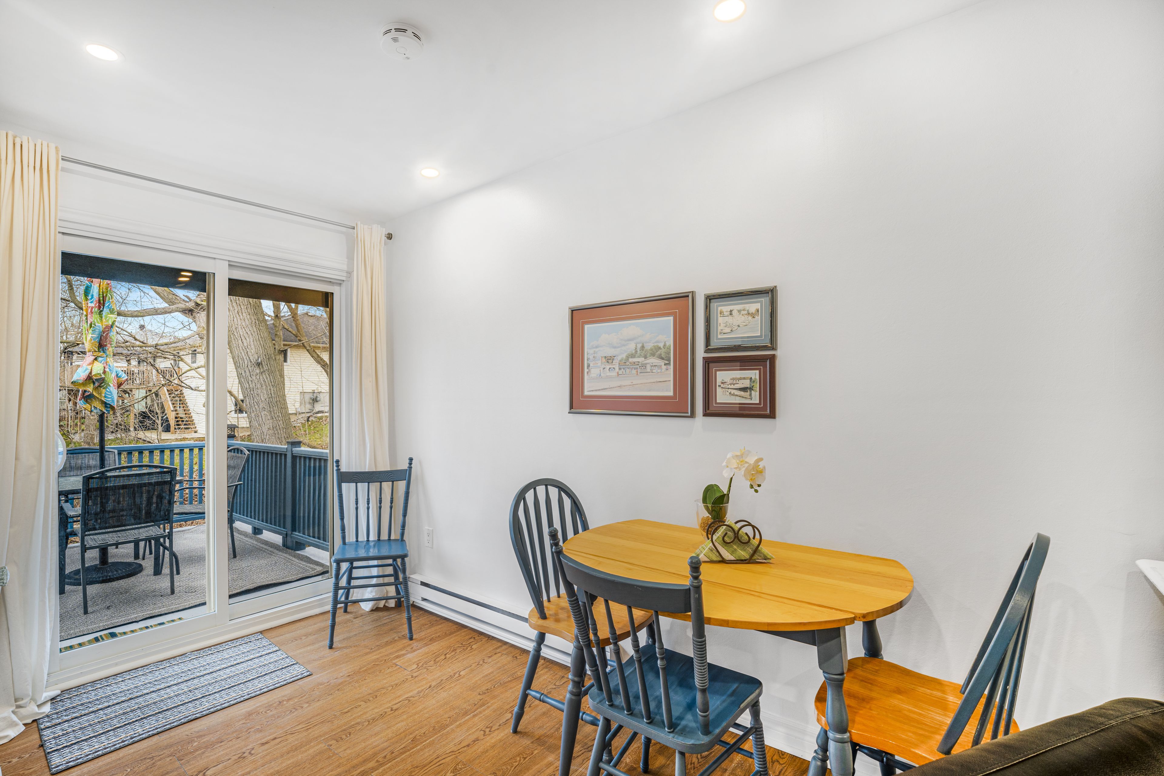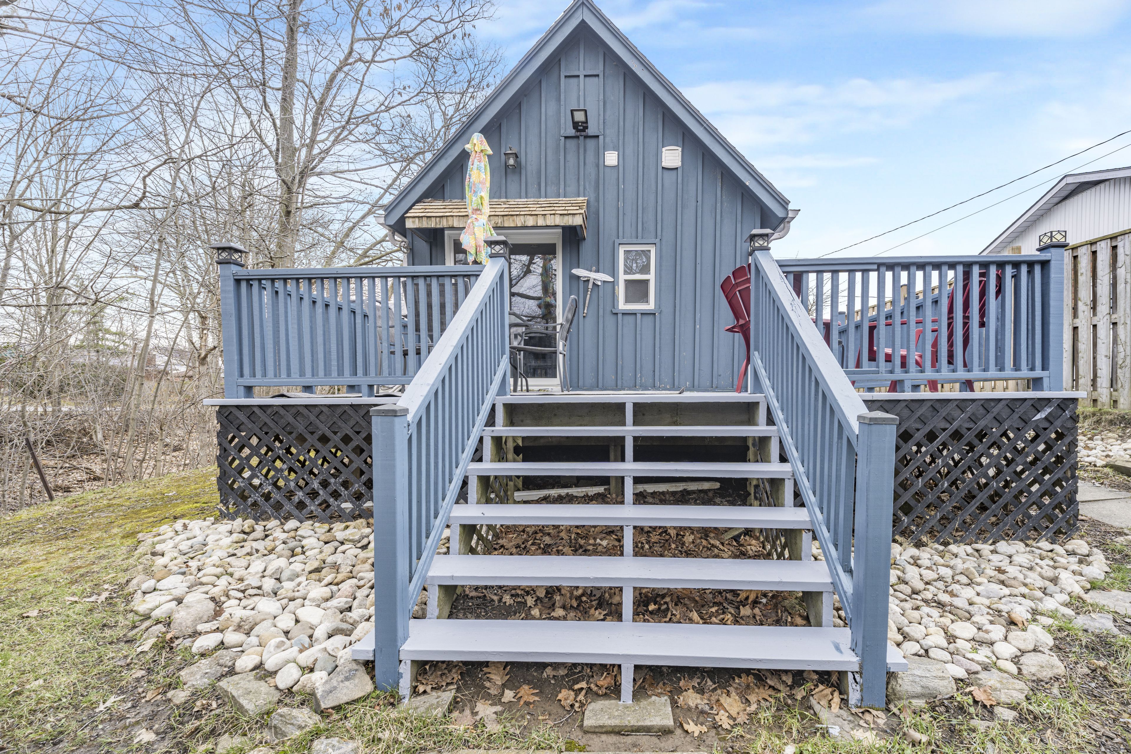 Small in size, big on charm! Welcome to "the leafy retreat," a beautifully updated, fully furnished home nestled on a quiet residential street in the heart of port dover. Just a short walk to yacht clubs, the main beach, restaurants, theatre, and local shops, this property offers the perfect blend of relaxation and convenience. This inviting home features a bright open-concept living, dining and kitchen area, designed for comfortable everyday living and easy entertaining. With 1 bedroom and 1 updated 3-piece bathroom, it's ideal for first-time buyers, downsizers, or those seeking a weekend escape. Set on a picturesque corner lot, the property offers added privacy and natural light, along with a private deck overlooking a peaceful ravine-perfect setting to unwind or host guests. The east-facing frontage allows for beautiful morning sun, while the backyard enjoys warm afternoon and evening light. Turnkey and fully furnished, this home is ready for immediate enjoyment or rental income potential. Notable updates include: deck and railings (2021), renovated bathroom (2019), vinyl flooring (2019), interior paint and trim (2019), and asphalt shingles (2016). Whether you're looking for a starter home, retirement retreat, vacation getaway, or investment opportunity, this charming property checks all the boxes. Don't miss your chance to own a little piece of port dover-schedule your private showing today!