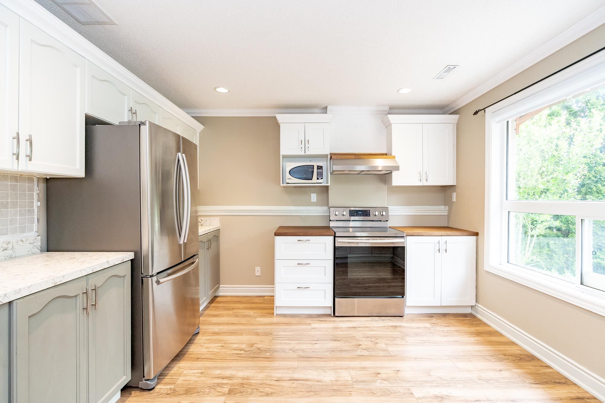 • Well-maintained raised bungalow with large windows for natural light.