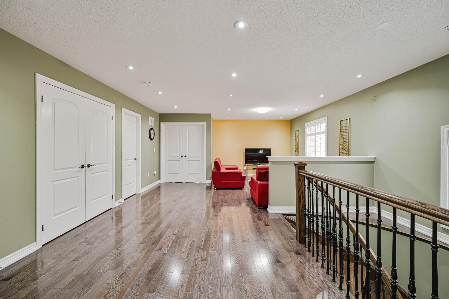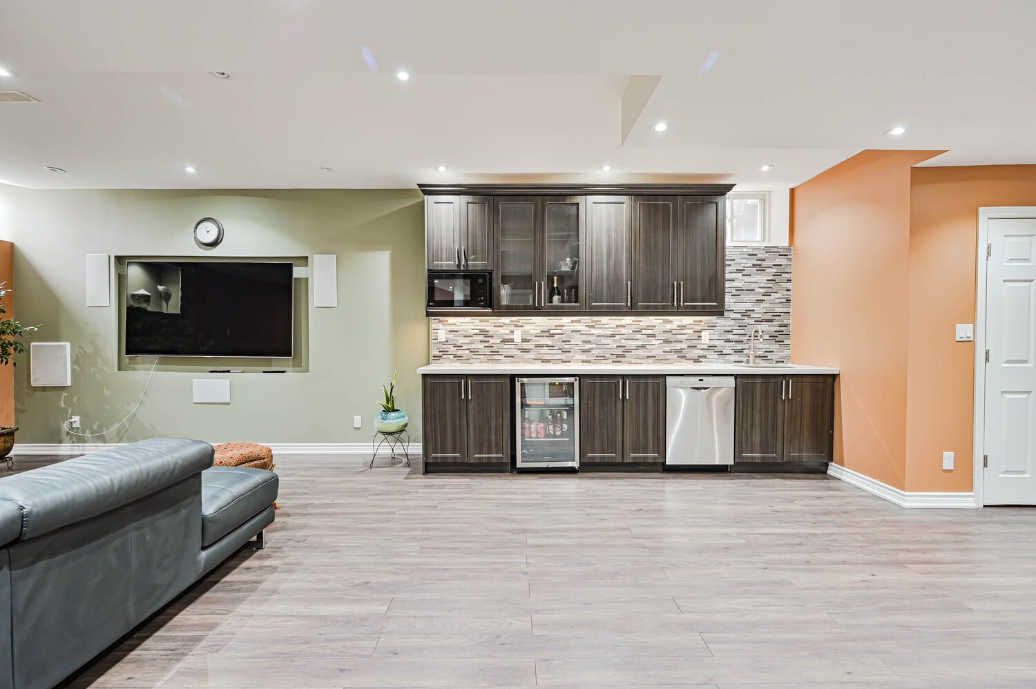 • Finished basement with rec room, wet bar, and additional bathroom.