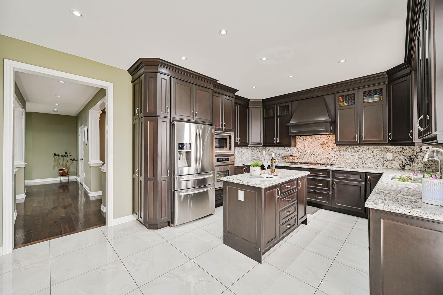 • Chef's kitchen features granite countertops and high-end stainless steel appliances.