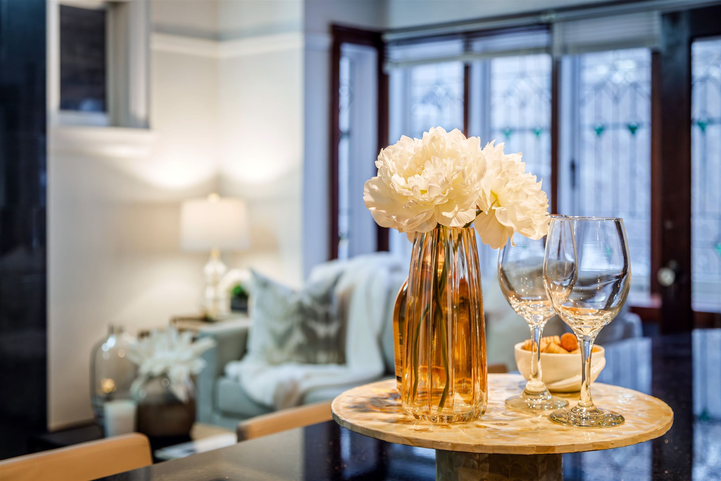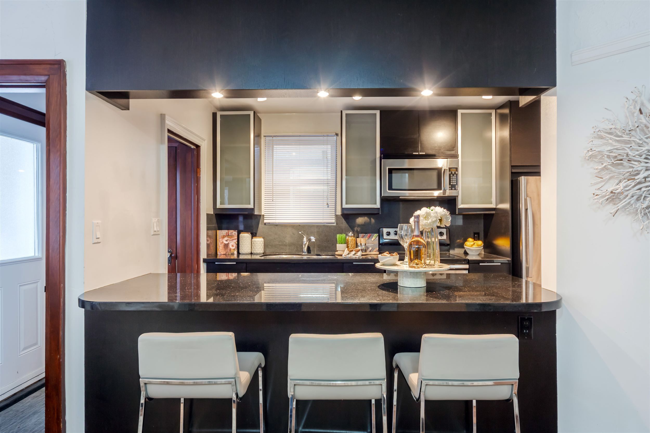 • Stylish kitchen with granite countertops and stainless-steel appliances.