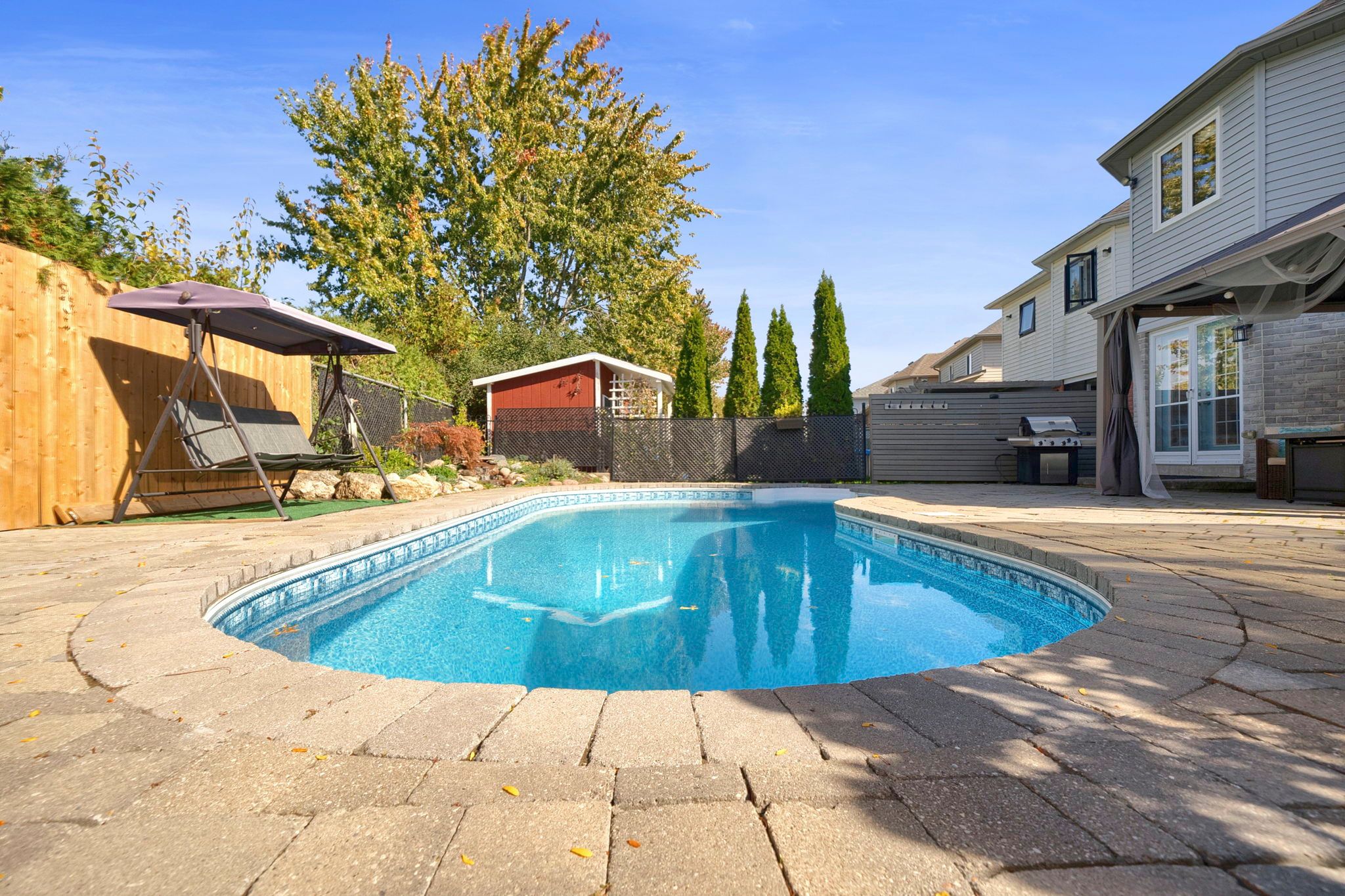 • Private backyard oasis featuring a gas-heated salt-water pool and gazebo.
