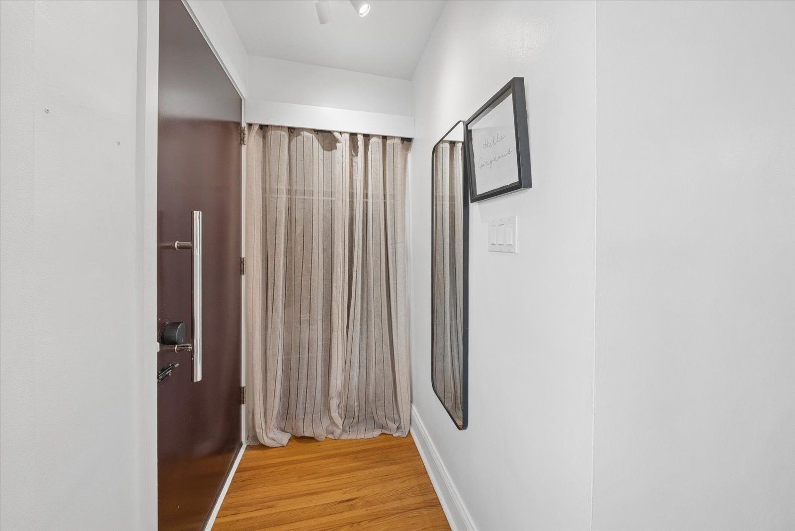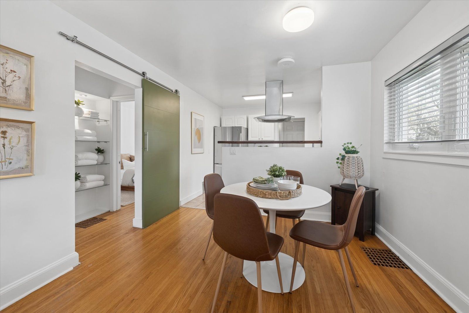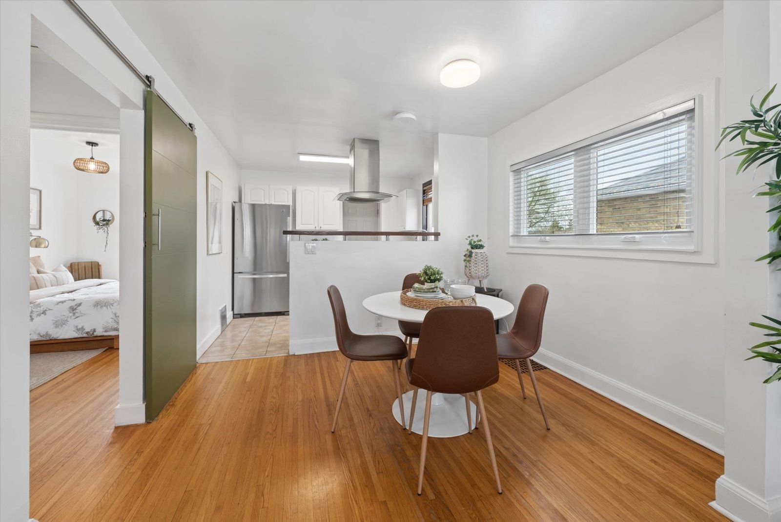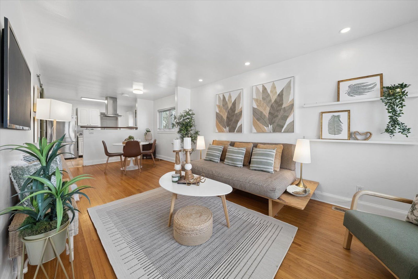 • Bright open-concept layout with hardwood floors and large picture window.