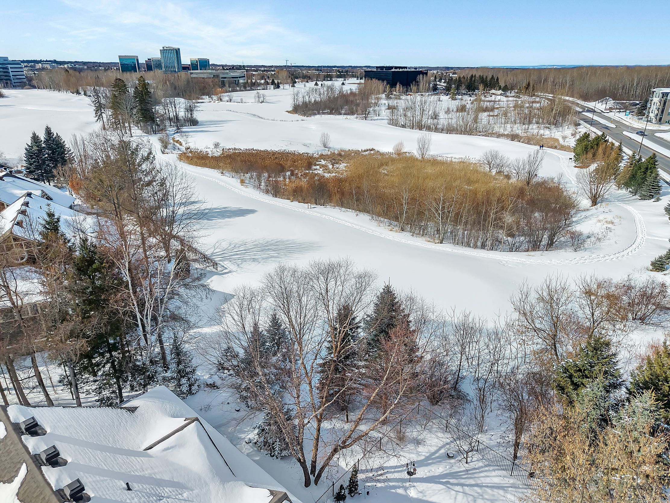 Backing onto marshes golf course (46. 62' x 135. 63' lot): nestled in the prestigious enclave of marshes village. This exceptional three-storey semi-detached home offers a rare blend of resort-style living and sophisticated convenience. Backing directly onto the 16th tee, this property provides a private, tree-lined sanctuary with no rear neighbours. Boasting three full floors of above-grade living space, the home features a sun-filled open-concept layout and a primary suite conveniently located on the main level, complete with a walk-in closet and a lavish ensuite. The home's versatility is highlighted by a bright upper-level loft overlooking the living area and a fully finished walk-out lower level with a second kitchen-ideal for multigenerational living. Meticulously maintained, the property includes professional painting (2022), refinished hardwoods (2022), all-new appliances (2022), and an upgraded outdoor lighting system (2024). With the marshes village hoa covering road snow removal and common maintenance, this "move-in ready" gem offers a maintenance-free lifestyle just steps from the brookstreet hotel and kanata north's high-tech hub.