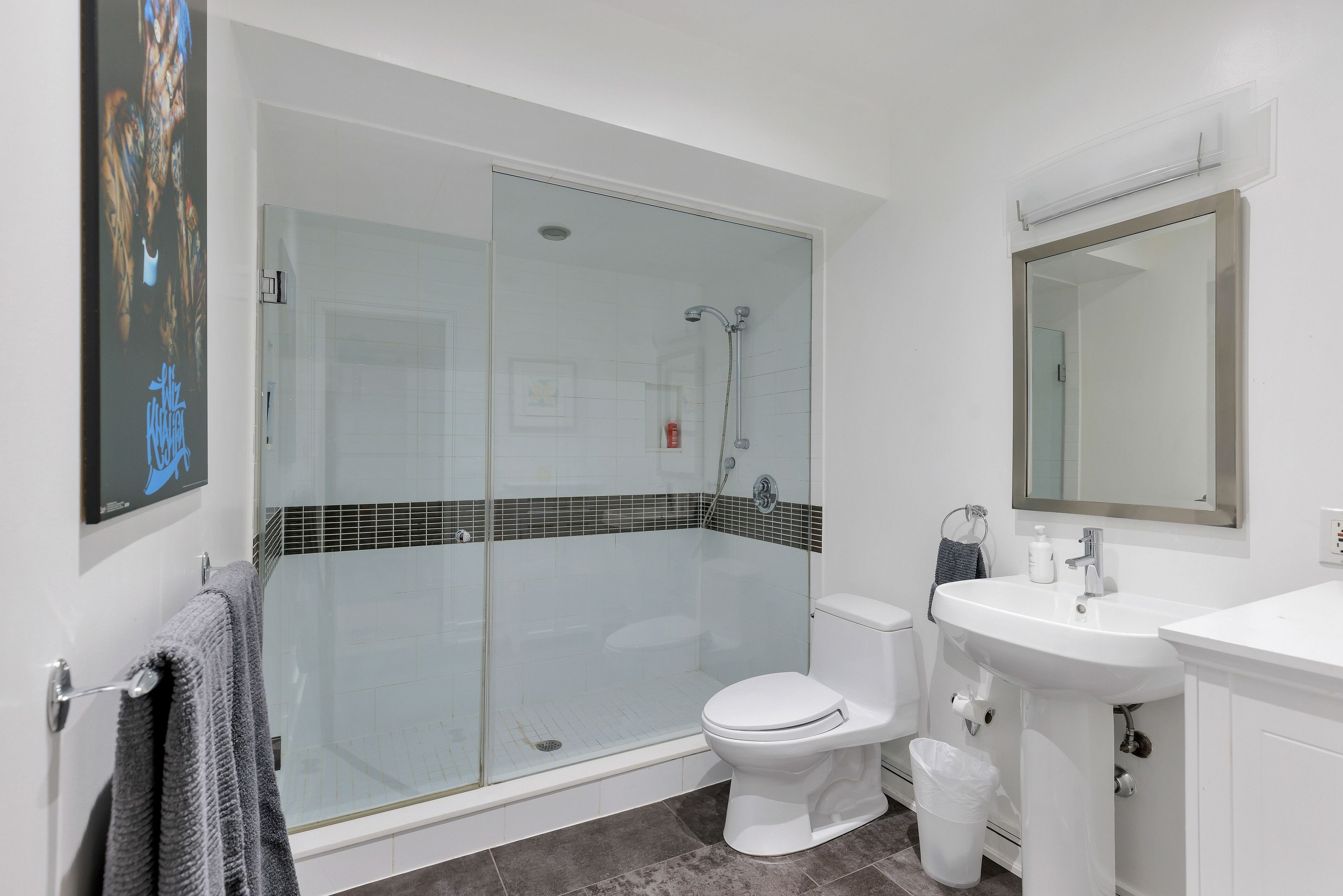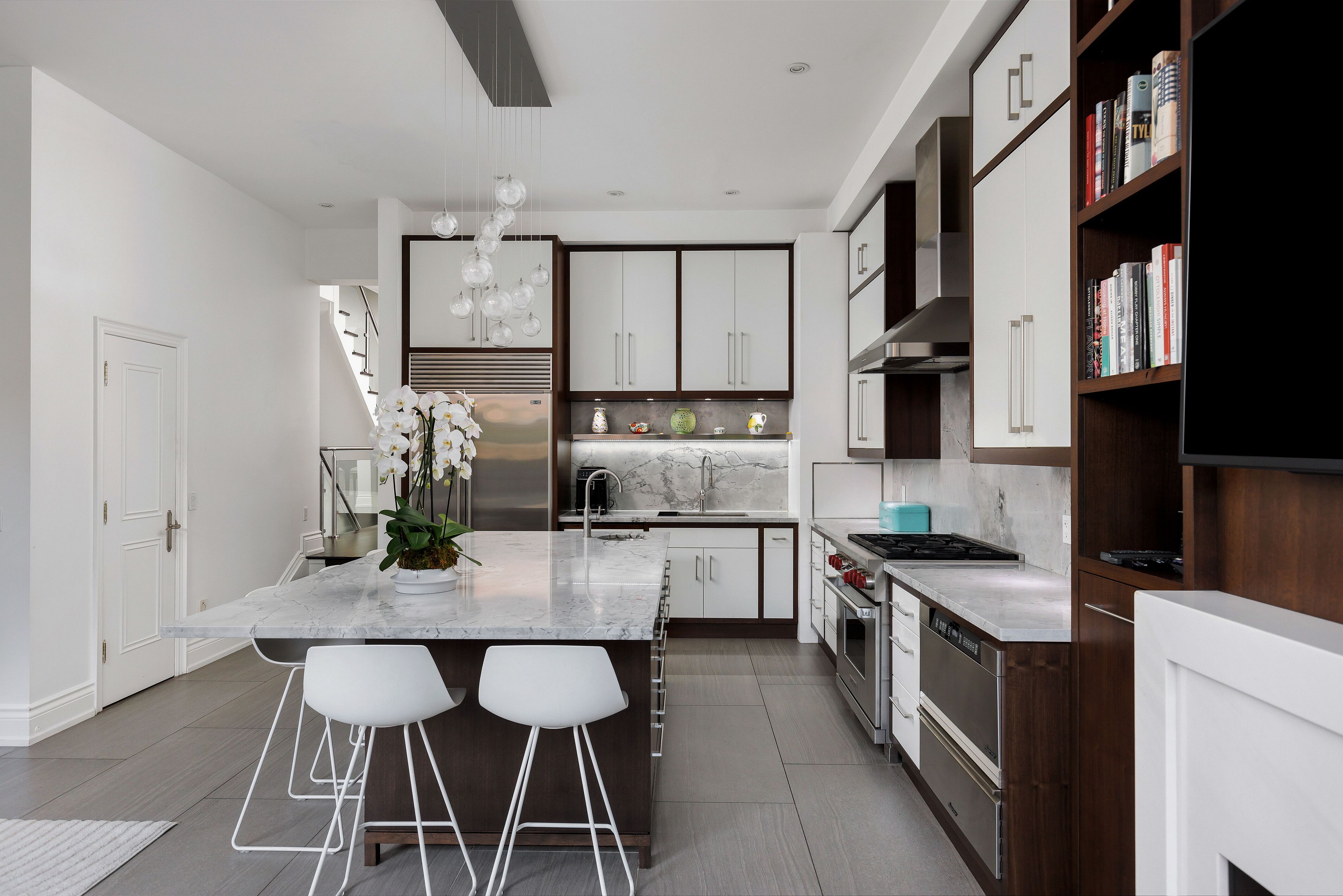 • Stunning kitchen with high-end appliances and oversized island.