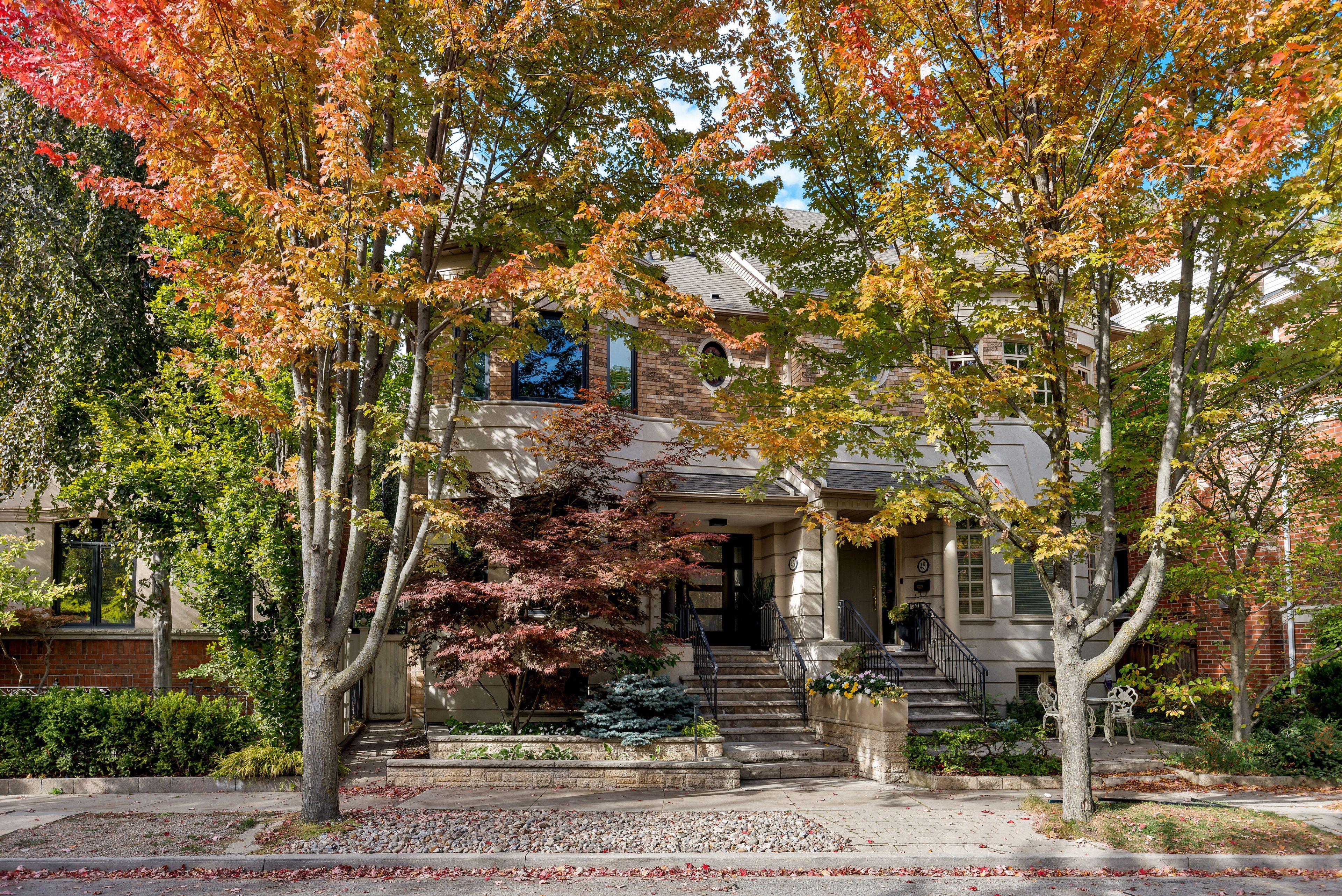 Welcome to 46 mathersfield avenue, an elegant semi-detached home tucked away on a quiet cul-de-sac in the heart of south rosedale, one of torontos most prestigious and picturesque neighbourhoods. This rare "25 year new-build" blends timeless sophistication with modern comfort, offering approximately 3,500 sq. Ft. Of living space across all levels. Set within one of the most coveted areas in the city this home combines classic character w/ soaring 11' ceilings in the kitchen/family rm & w/ contemporary conveniences incl. A 2-car garage, updated systems, & designer finishes thru/out. The stunning entrance features a custom front door by amberwood leading to a combined living/dining rm w/ crown moulding & a cozy gas fireplace. Step down to the heart of the home where a spectacular kitchen / family room by rn design & kga kitchens, features custom cabinetry, quartz counters, sub-zero & wolf appliances, an oversized island w/ breakfast bar & walk-in pantry. The rear of the home is flanked w/ floor-to-ceiling windows & opens to a private landscaped garden perfect for entertaining or quiet evenings. Upstairs, the primary suite is a serene retreat w/ a juliette balcony, walk-in closet, & renovated 5-piece ensuite w/ freestanding tub, double vanity & glass rain shower. Two additional bedrooms are both generous in size & each feature ensuite baths - a rare find in this area. A massive skylight above the architectural curved staircase fills the home w/ light & the finished lower level has a lg rec rm w/ gas f/pl, a huge gym, 4th bedrm & 3-piece bath.. The l. L. Has above-grade windows ideal for family living or guests. Professionally landscaped front and rear gardens by david scott designs featuring new stonework, fencing, a sundance hot tub, & gas lines for outdoor bbq. Steps to rosedale jr p. S, branksome, u. C. C. York, greenwood & ttc. Enjoy the perfect blend of ravines, parks & urban shops & restaurants just minutes from your door - privacy & luxury in the heart of the city.