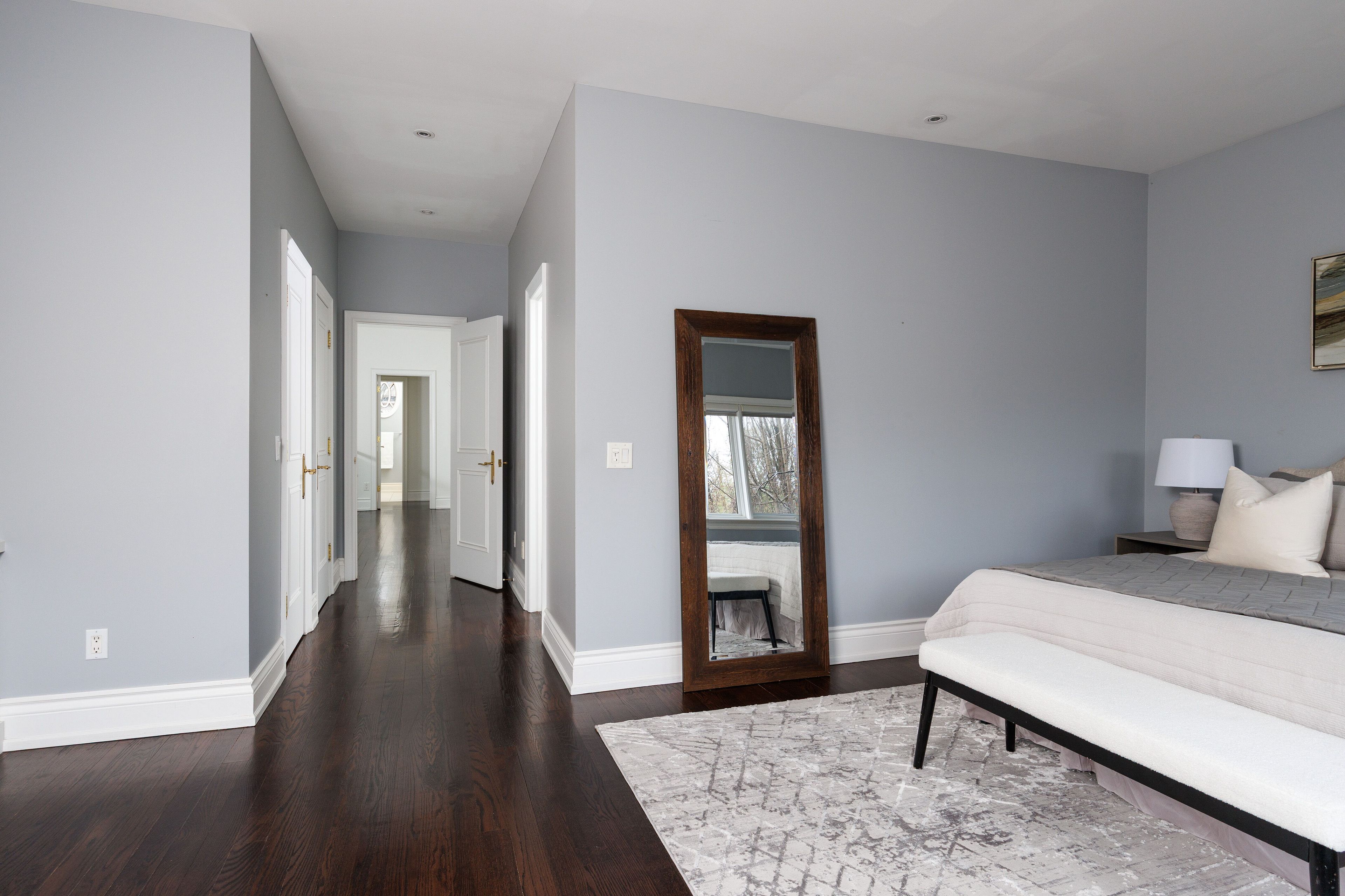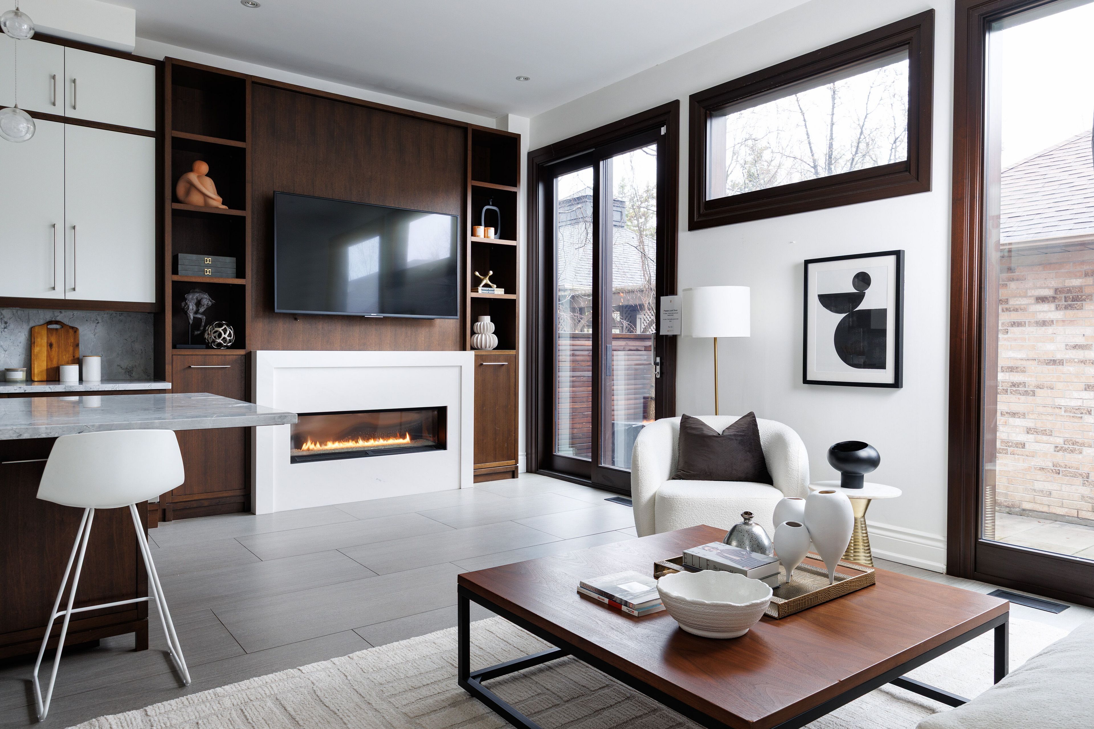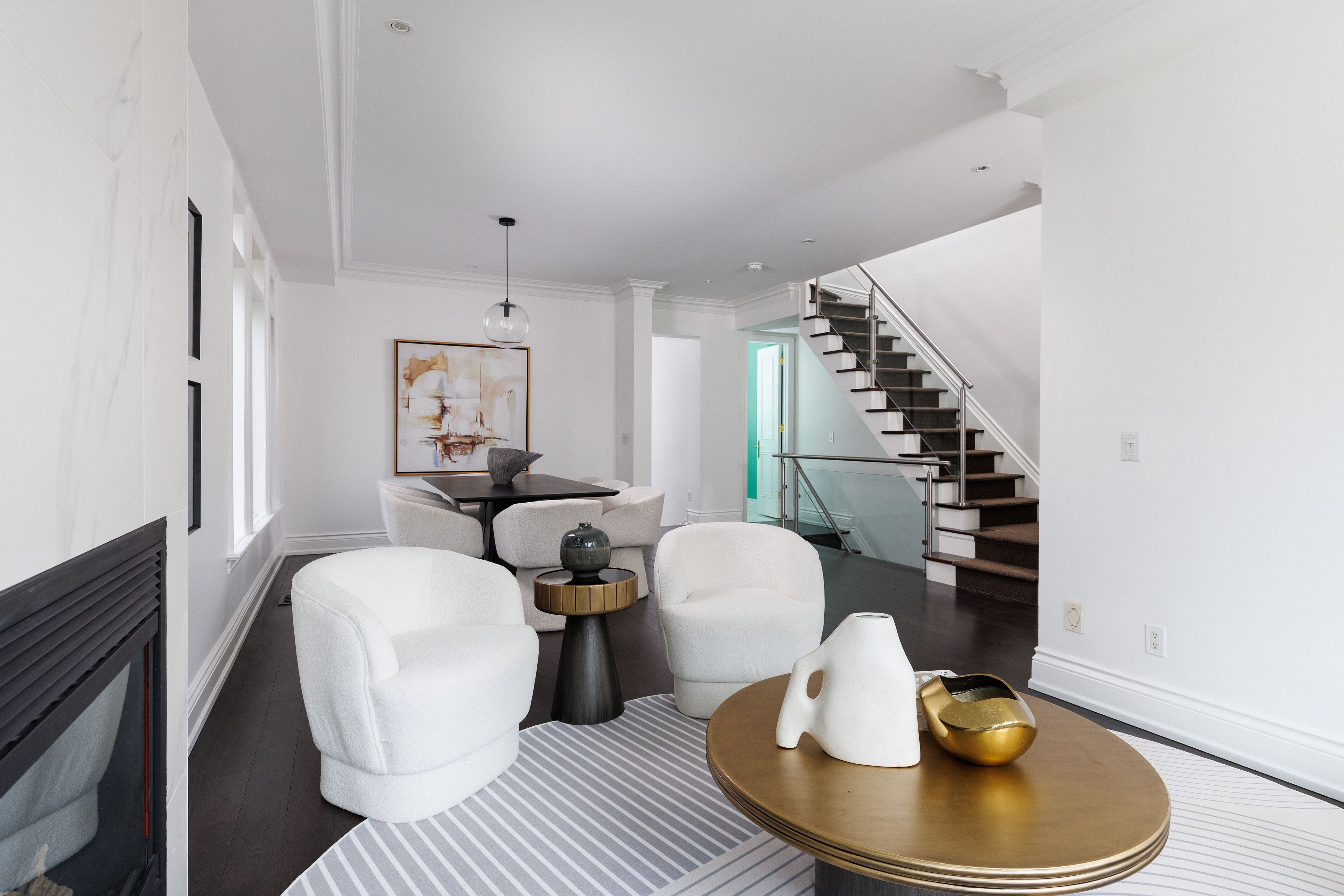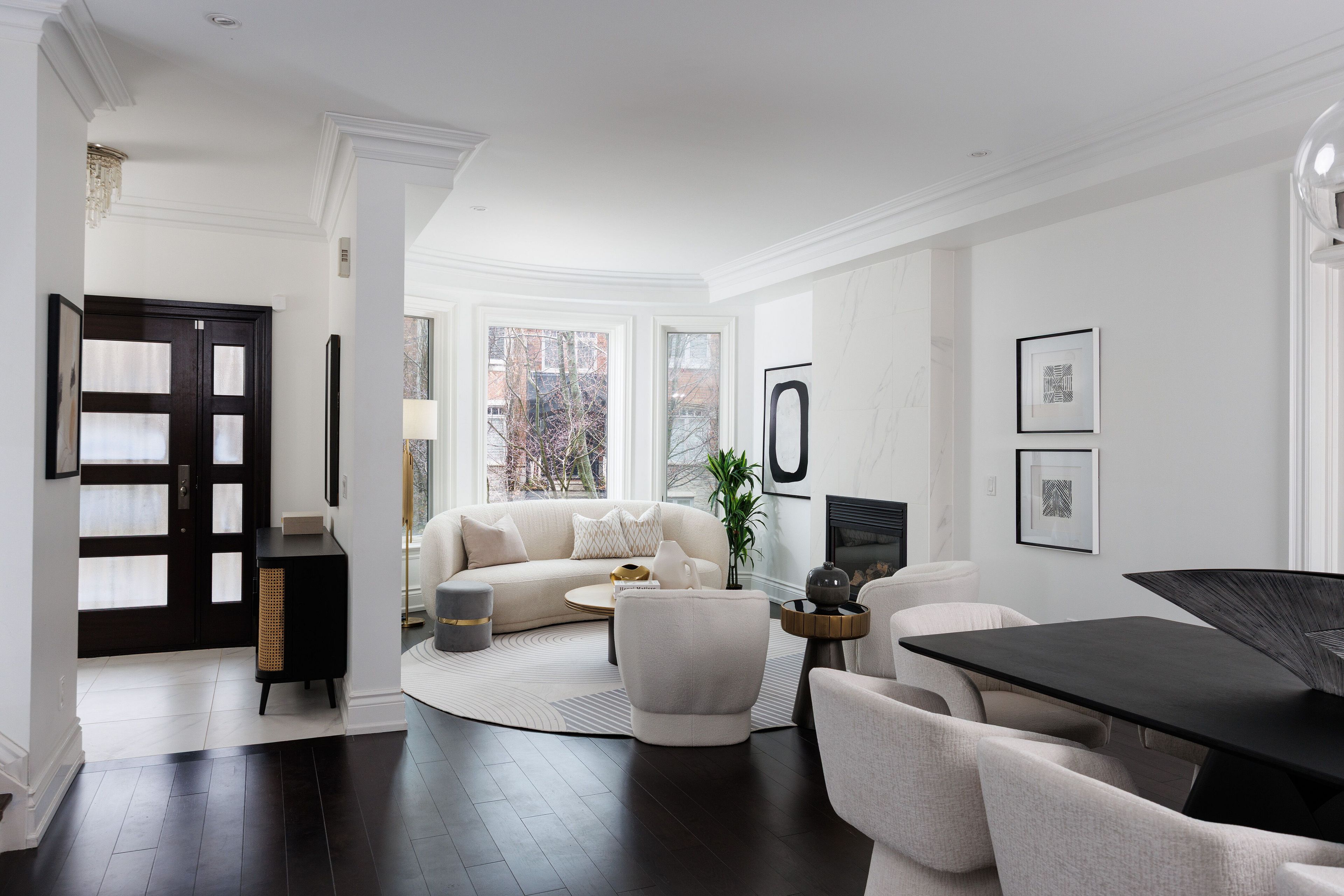 Welcome to 46 mathersfield drive, an elegant semi-detached home on a coveted cul-de-sac in the heart of south rosedale-one of toronto's most prestigious and picturesque neighbourhoods. Surrounded by ravines, top-tier schools, and just minutes to downtown, this rare "25-year new-build" has been thoughtfully updated with extensive cosmetic enhancements and key renovations, offering a refined, contemporary aesthetic with ~3,500 sq. Ft. Of living space across all levels. Designed for comfort & sophistication, the home features soaring ~11' ceilings in the kitchen/family room, a rare 2-car garage, updated systems, and curated designer finishes throughout. A custom front door by amberwood opens to a gracious living/dining area with crown moulding and a gas fireplace. The heart of the home is the rn design & kga kitchens-designed kitchen and family room, showcasing custom cabinetry, quartz countertops, sub-zero and wolf appliances, an oversized island with breakfast bar, and a walk-in pantry. Floor-to-ceiling windows fill the space with natural light and open to a private landscaped garden. Upstairs, the primary suite offers a juliette balcony, walk-in closet, and a renovated 5-piece ensuite with freestanding tub, double vanity, and glass rain shower. Two additional bedrooms are generously sized, each with its own ensuite. A curved staircase beneath a large skylight enhances the home's bright, airy feel. The finished lower level includes above-grade windows, a rec room with gas fireplace, large gym, fourth bedroom, and 3-piece bath. Landscaped rear garden by david scott designs feature new stonework, fencing, a sundance hot tub, direct gas line for bbq's & exquisit city living. Steps to rosedale jr p. S., branksome hall, ucc, york school, parks, ravines, and ttc, with easy access to the city's best amenities. A rare opportunity to enjoy privacy, luxury, and an exceptional location in the heart of toronto.