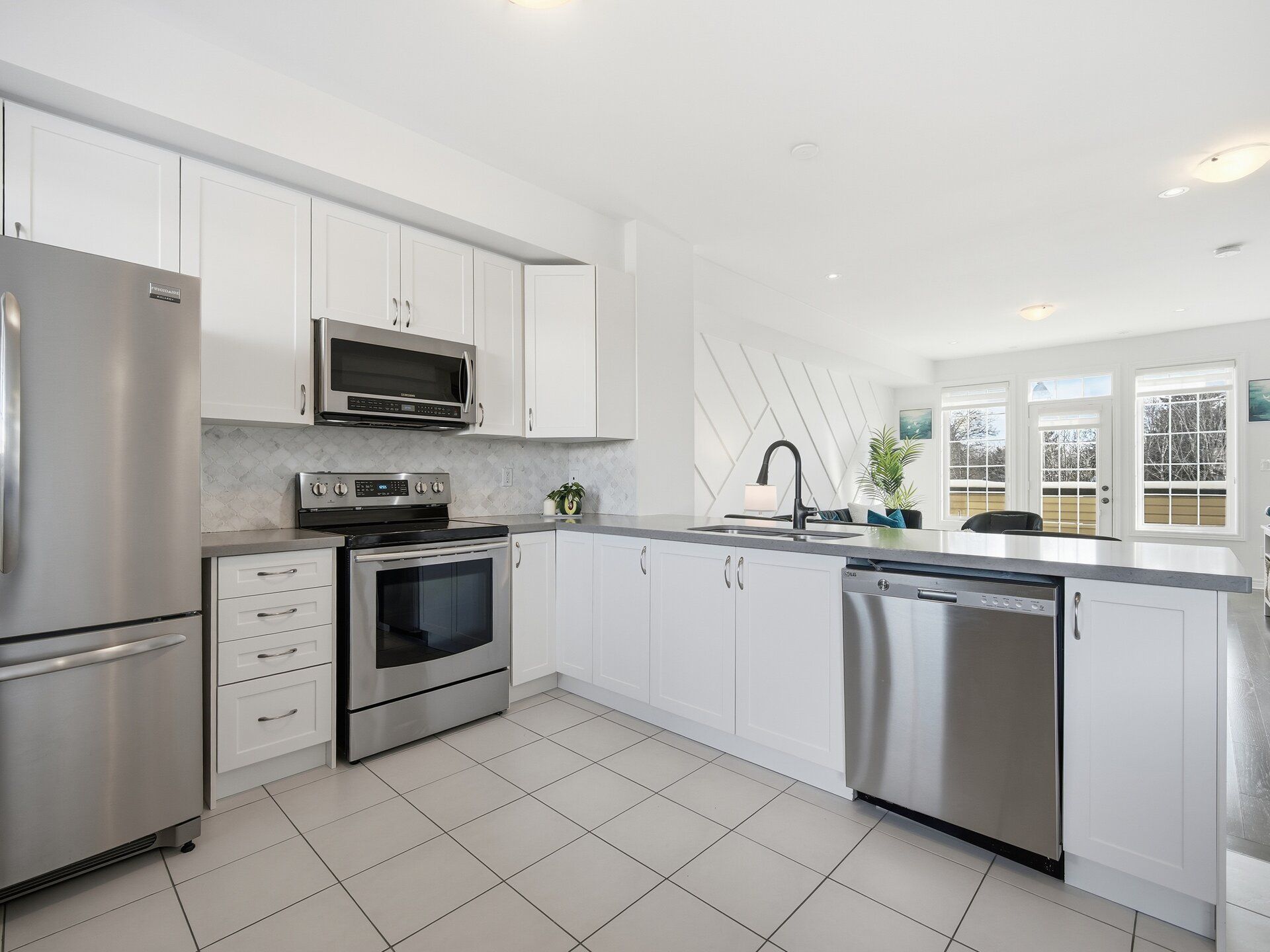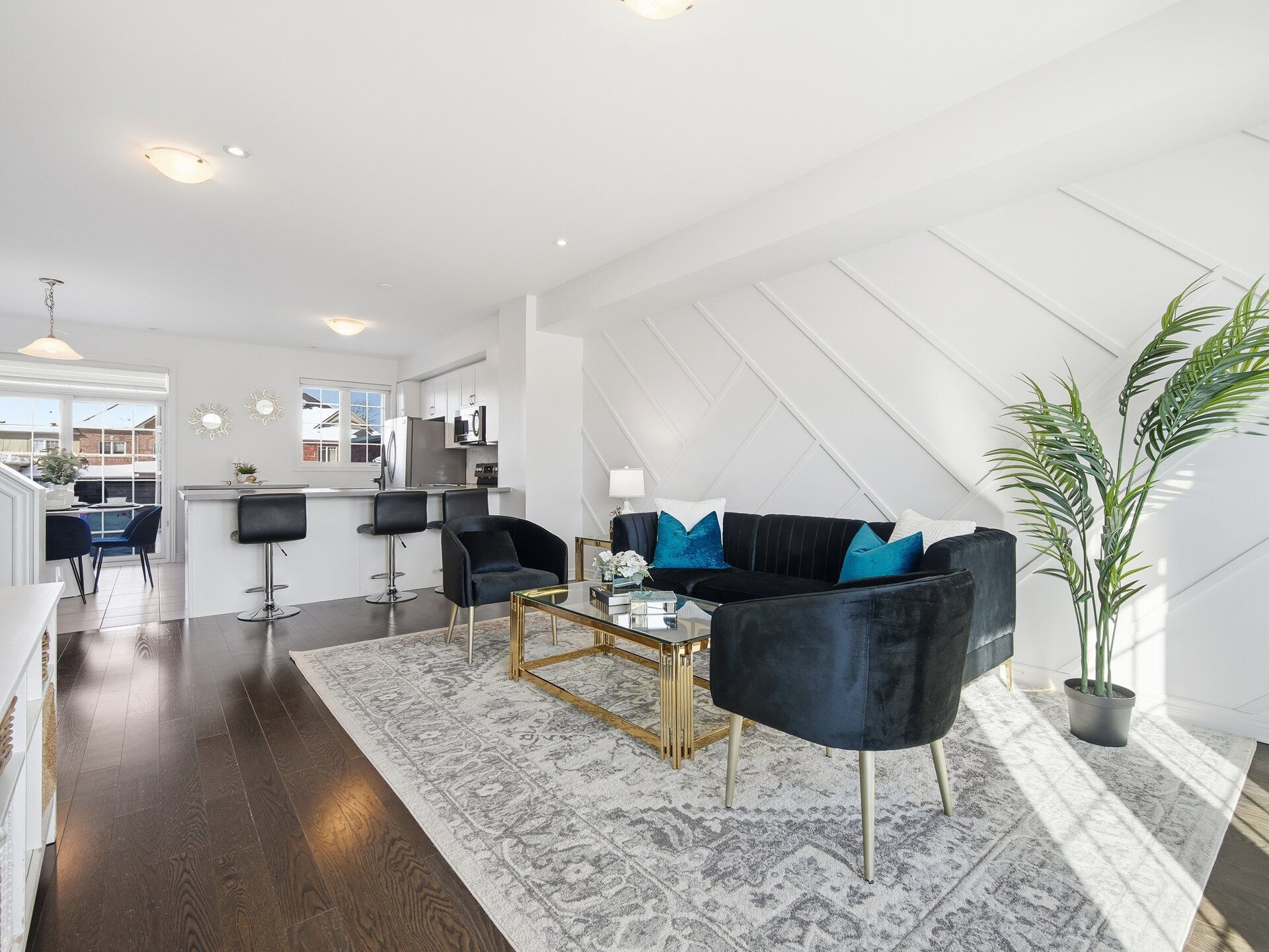 • Open-concept layout with a gourmet kitchen and large island.