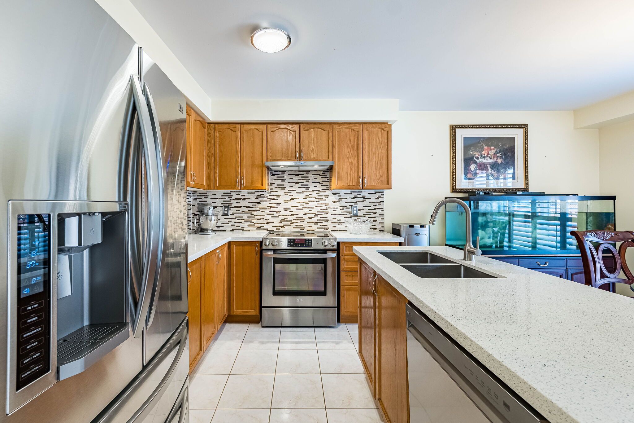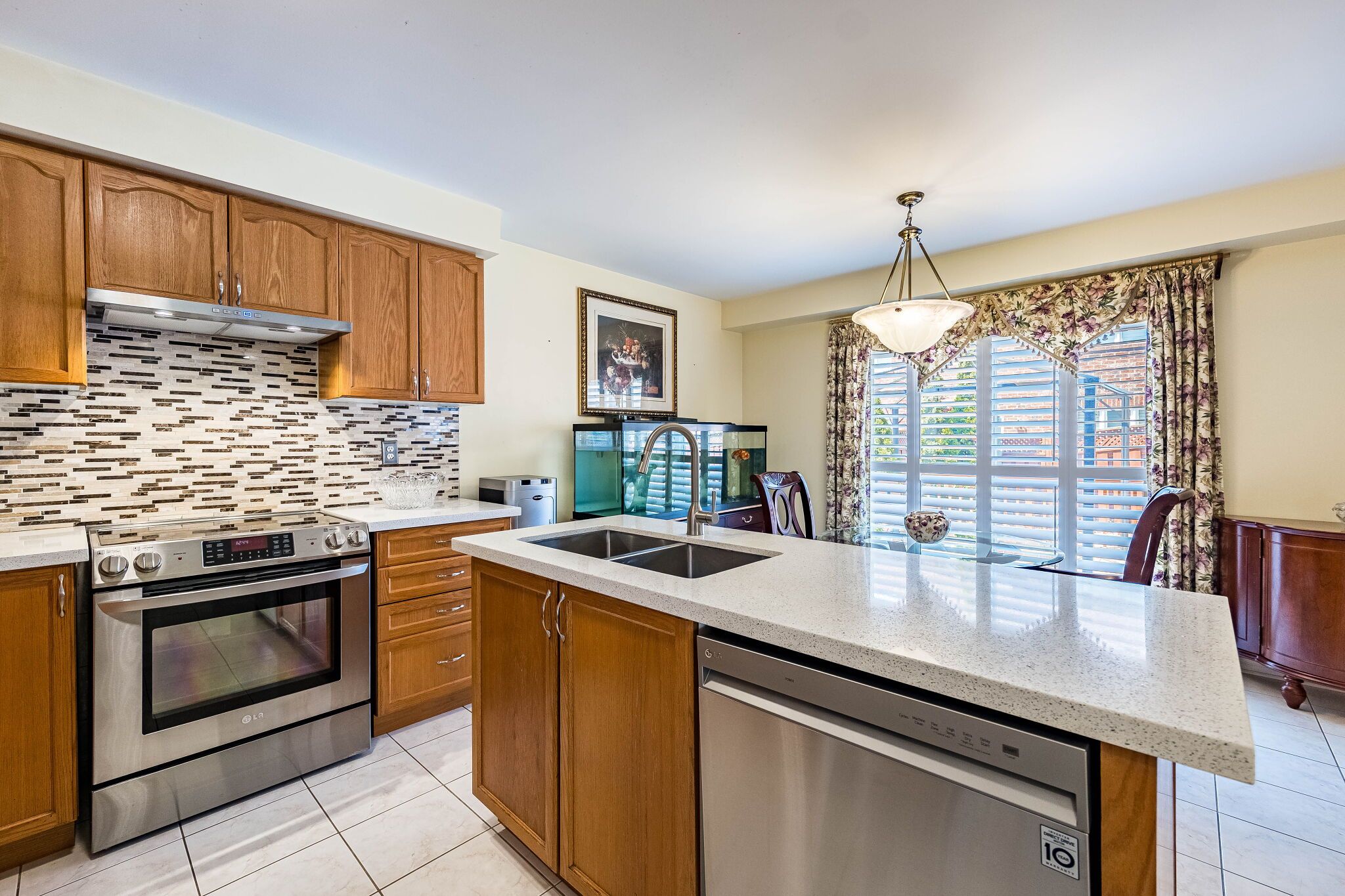 • Stylish kitchen with quartz countertops and walkout to a large deck.