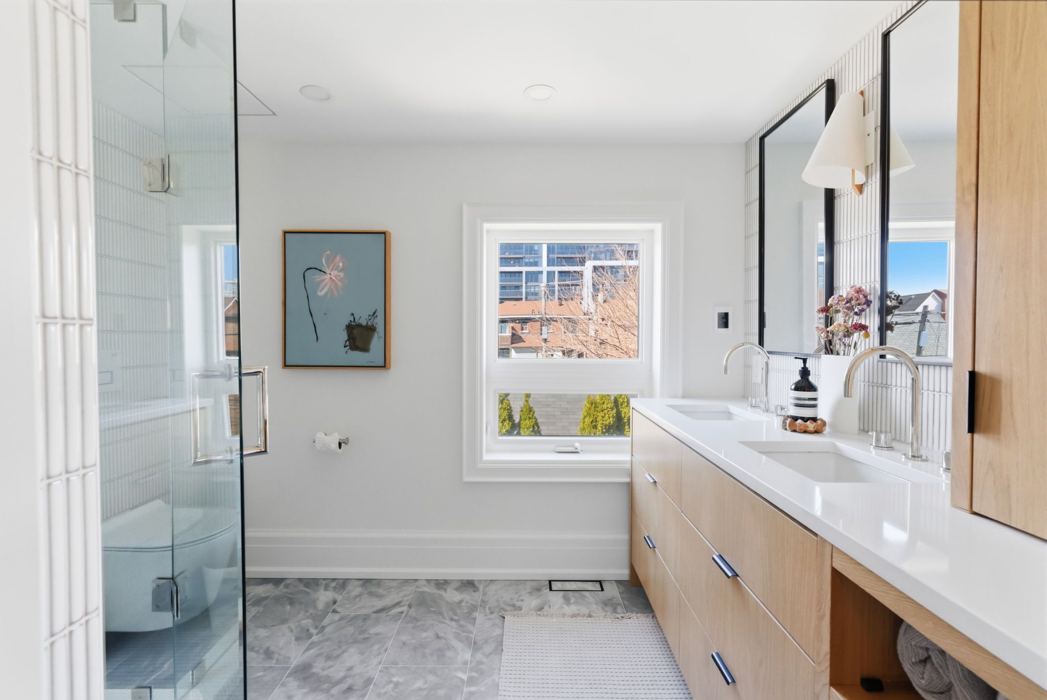 • Primary suite features walk-in closet and sleek ensuite bathroom.