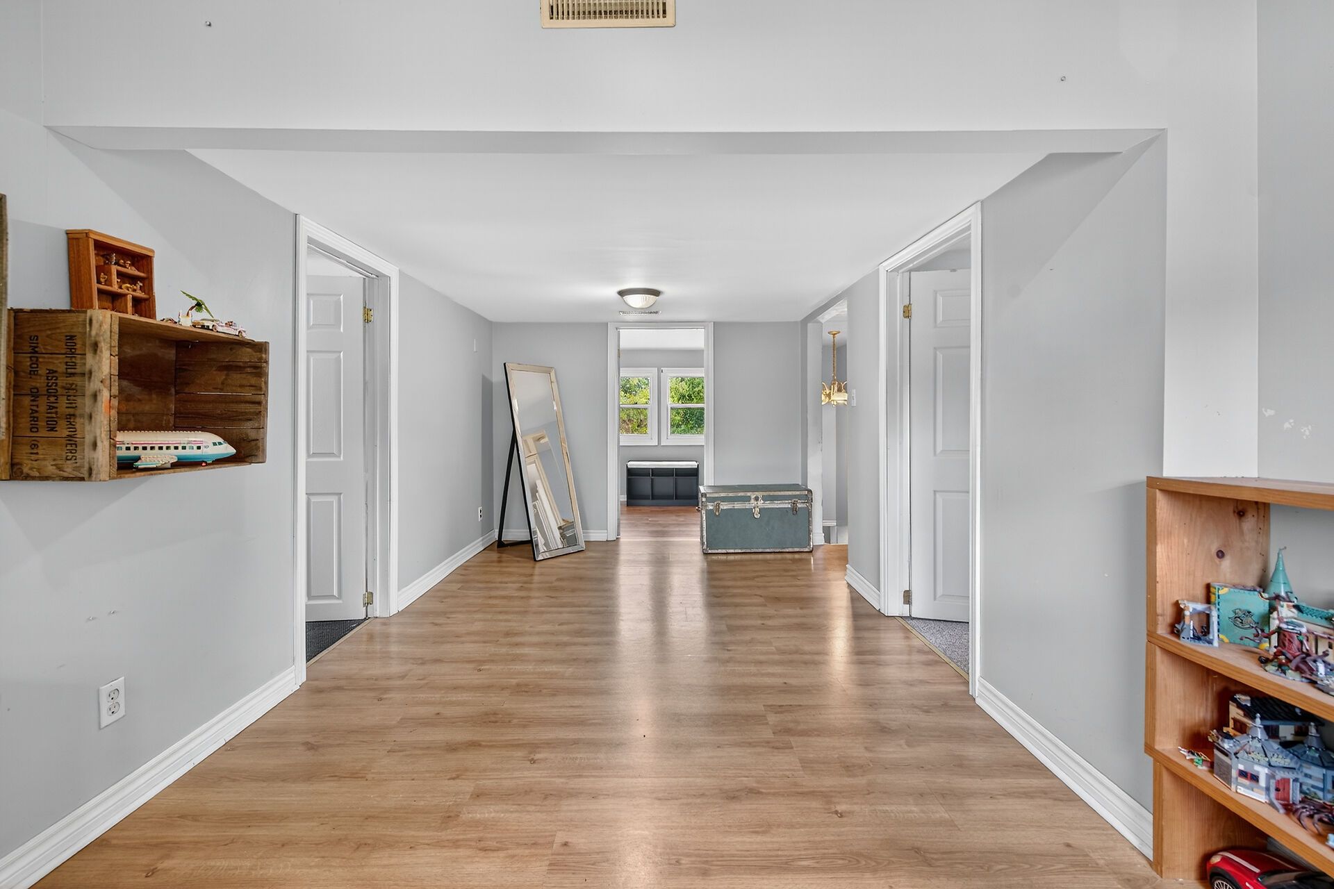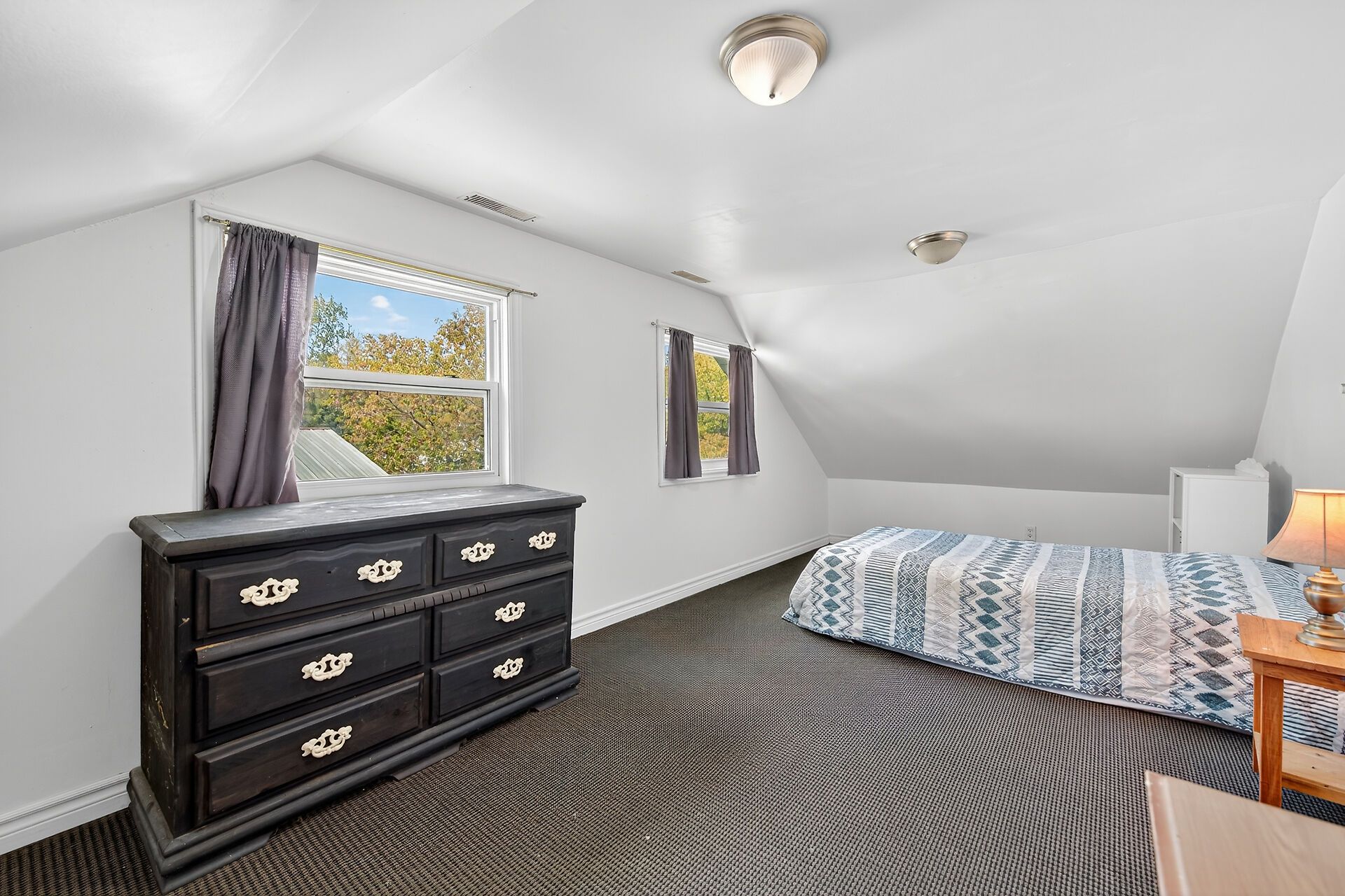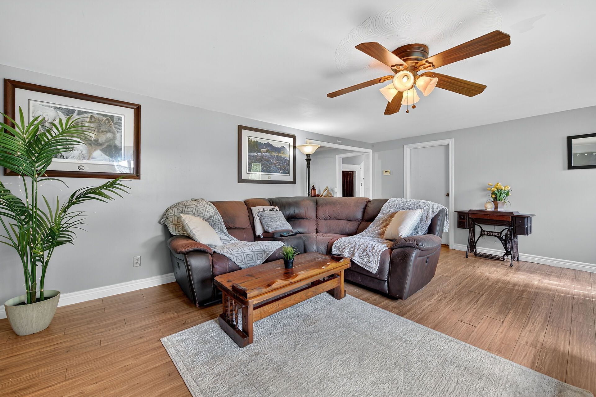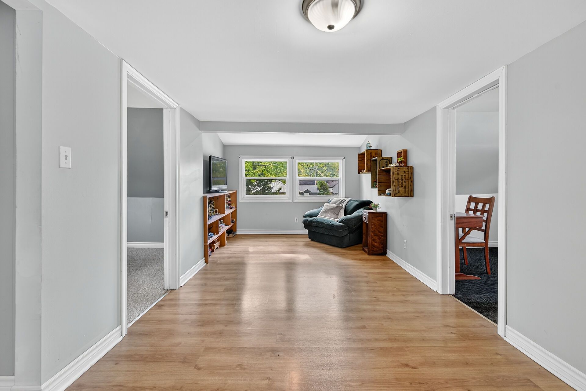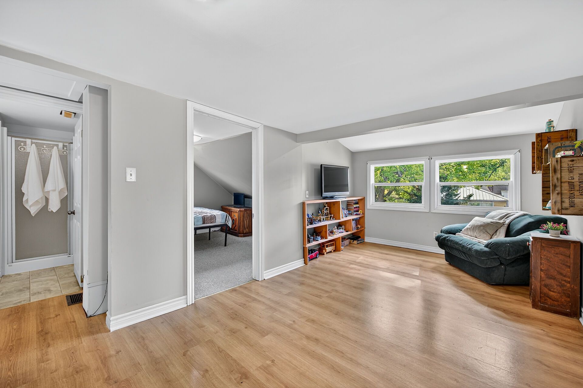 • Main floor includes living room, kitchen, and potential additional bedroom.