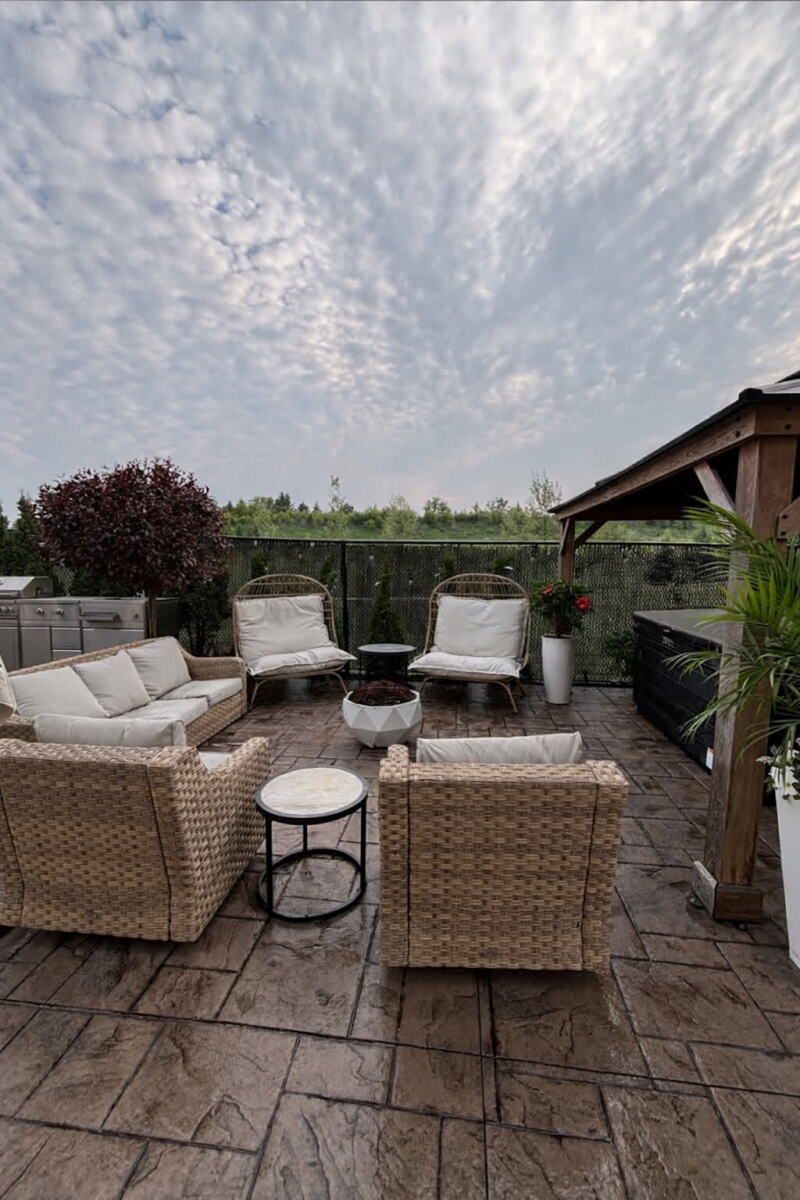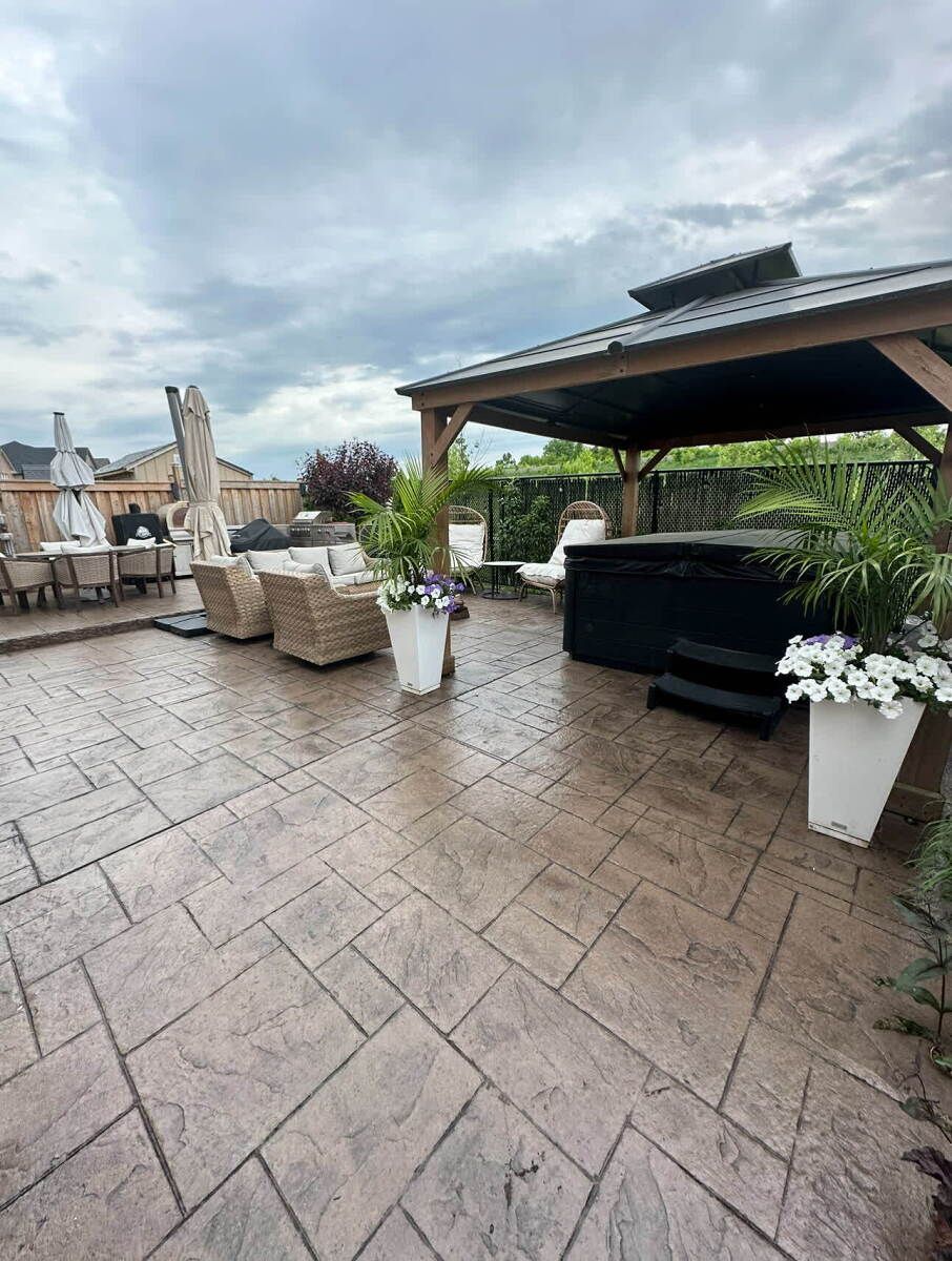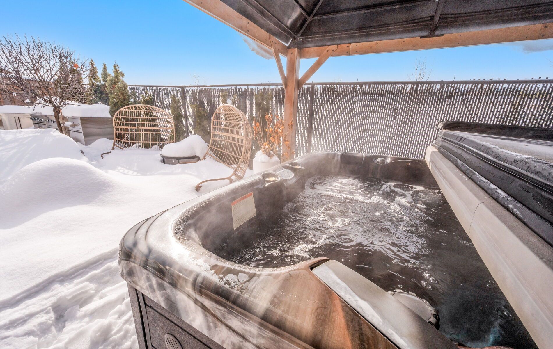 • Beautiful backyard garden for summer barbecues and winter hot tub relaxation.