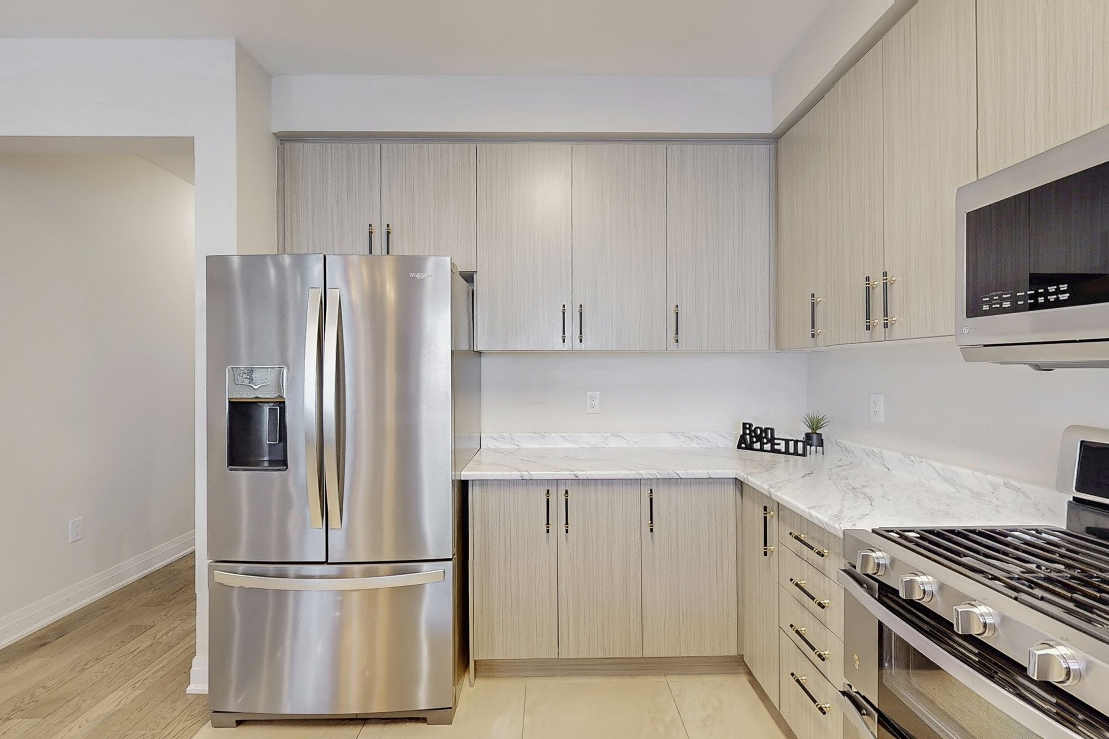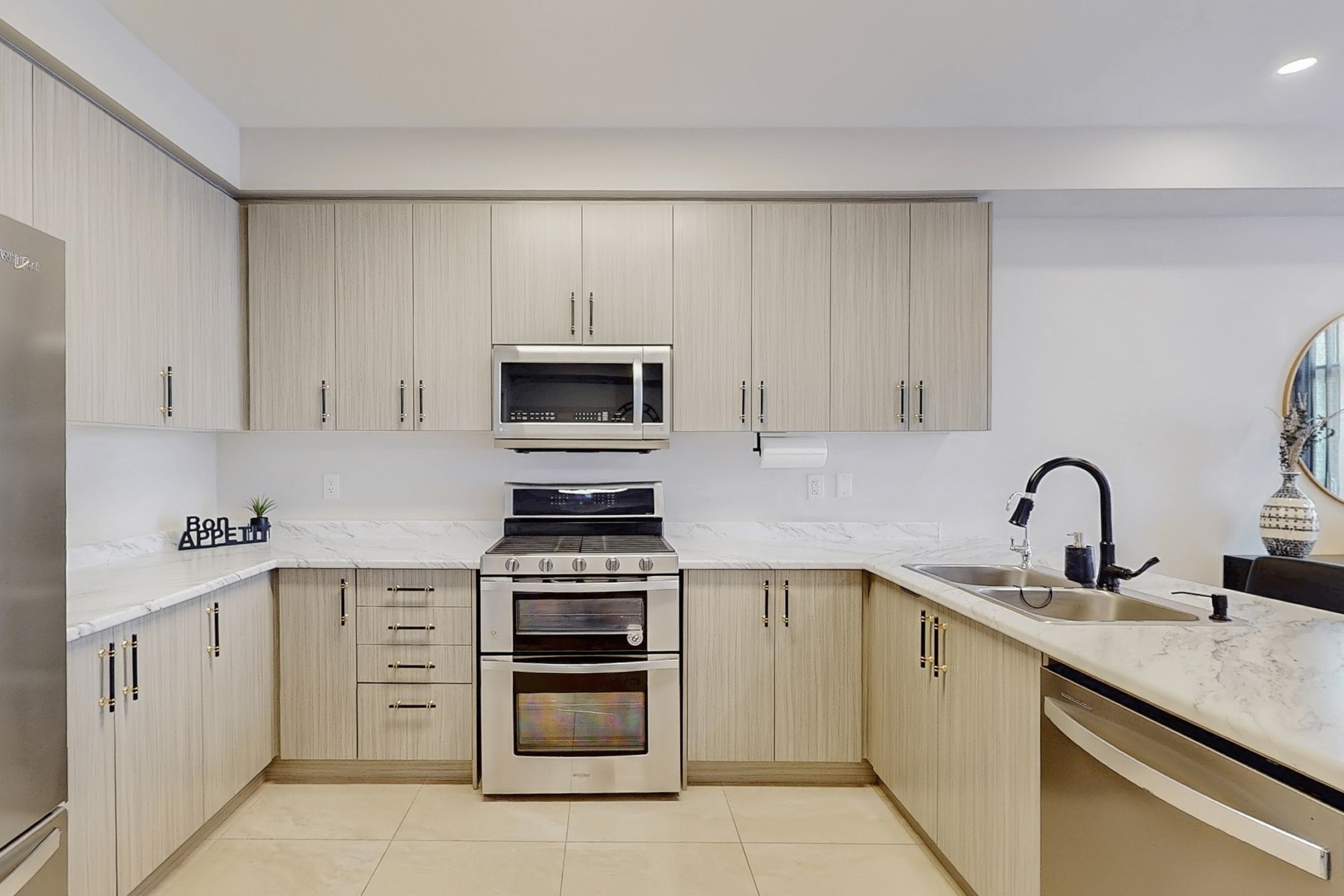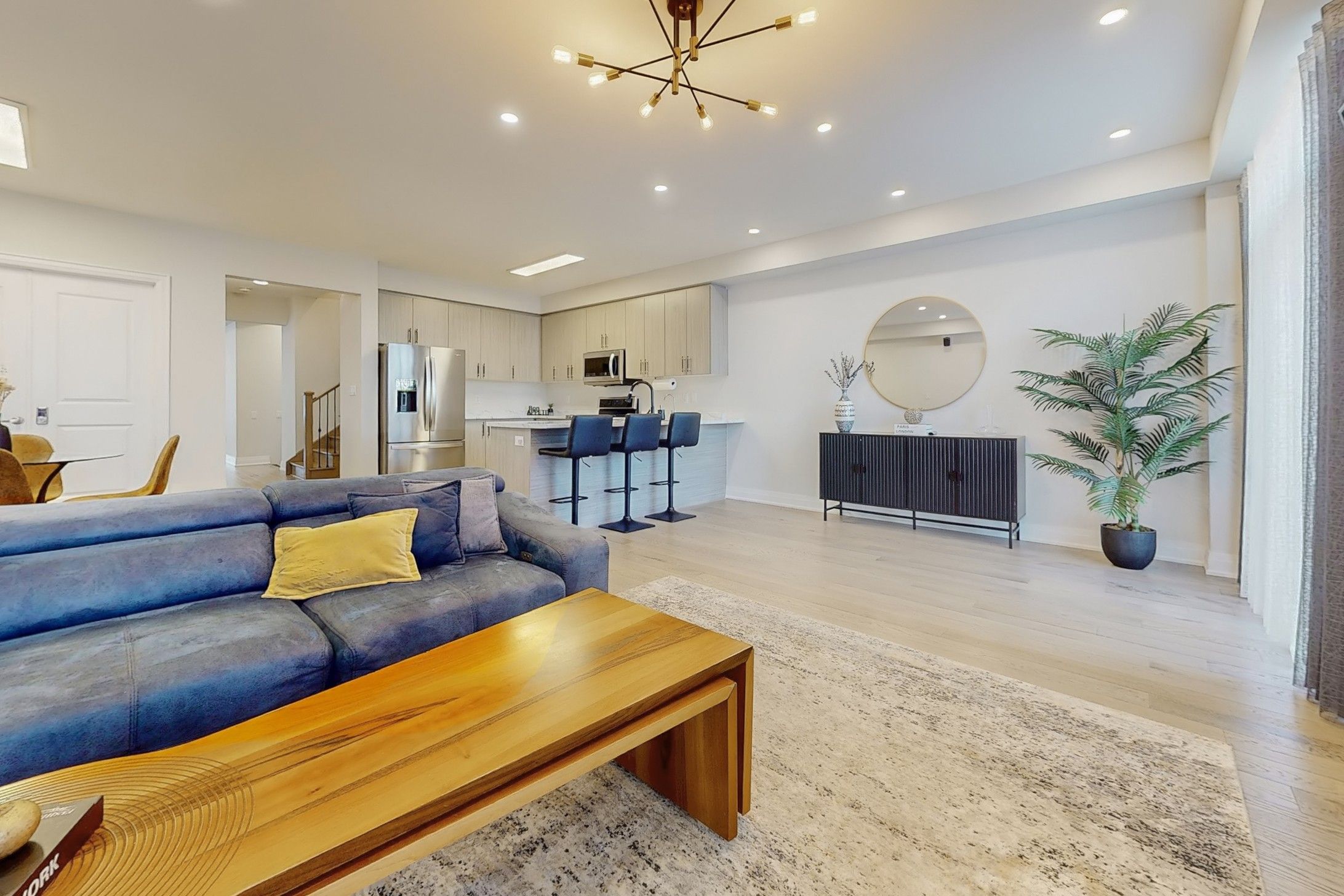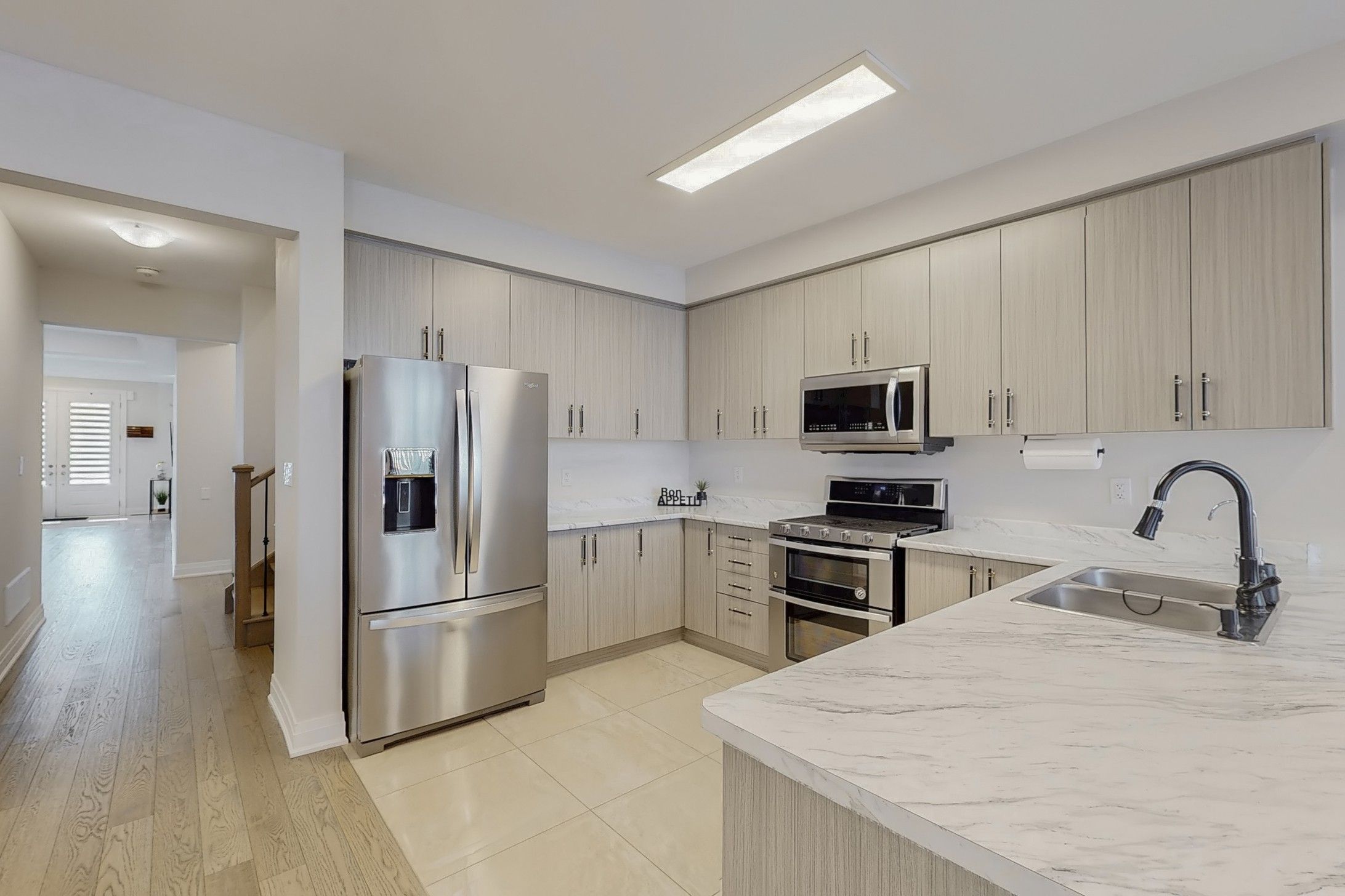 • Main floor features hardwood flooring and a modern, large kitchen.