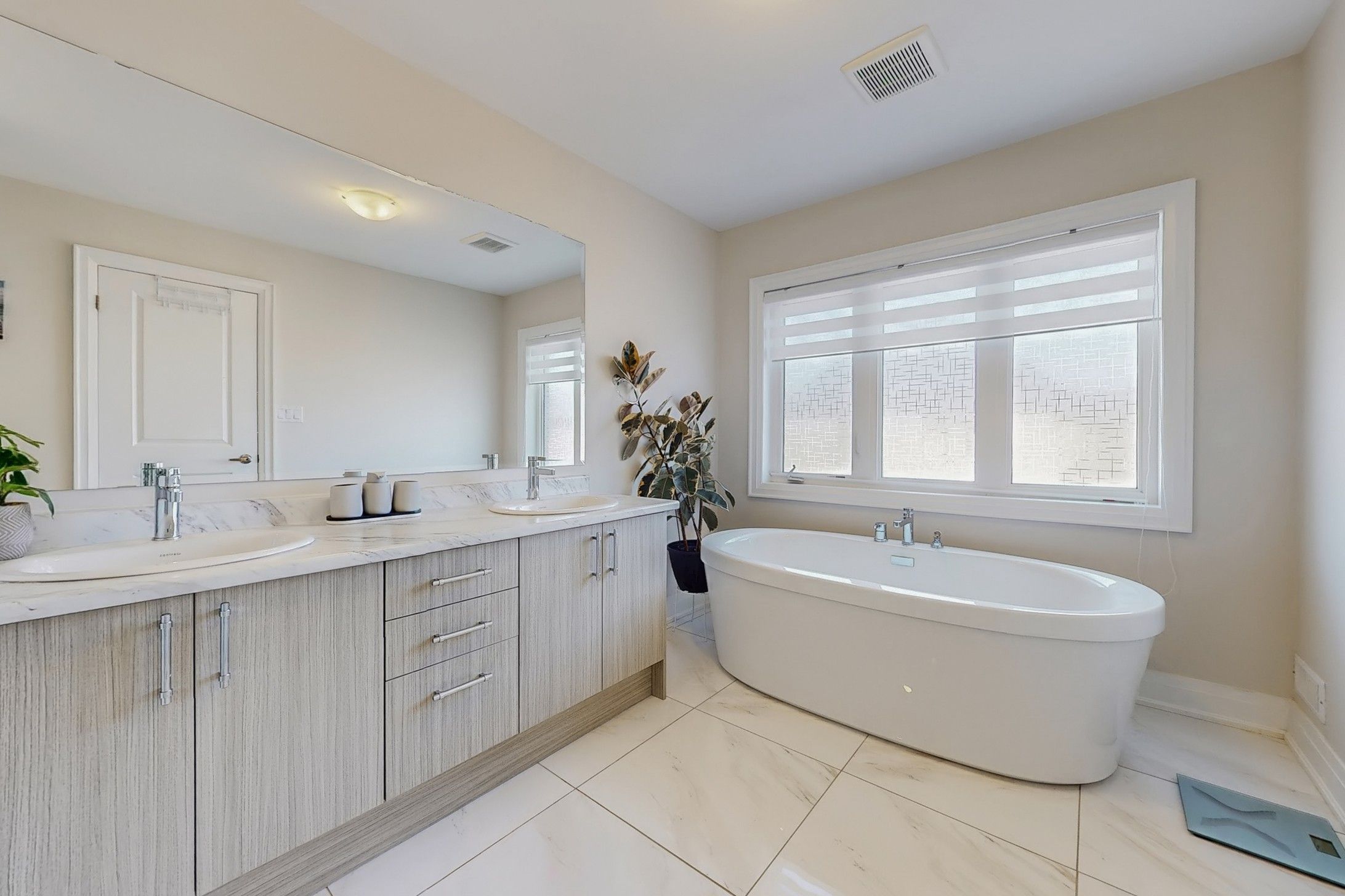 • Oversized primary suite has a spa-like ensuite with a freestanding tub.