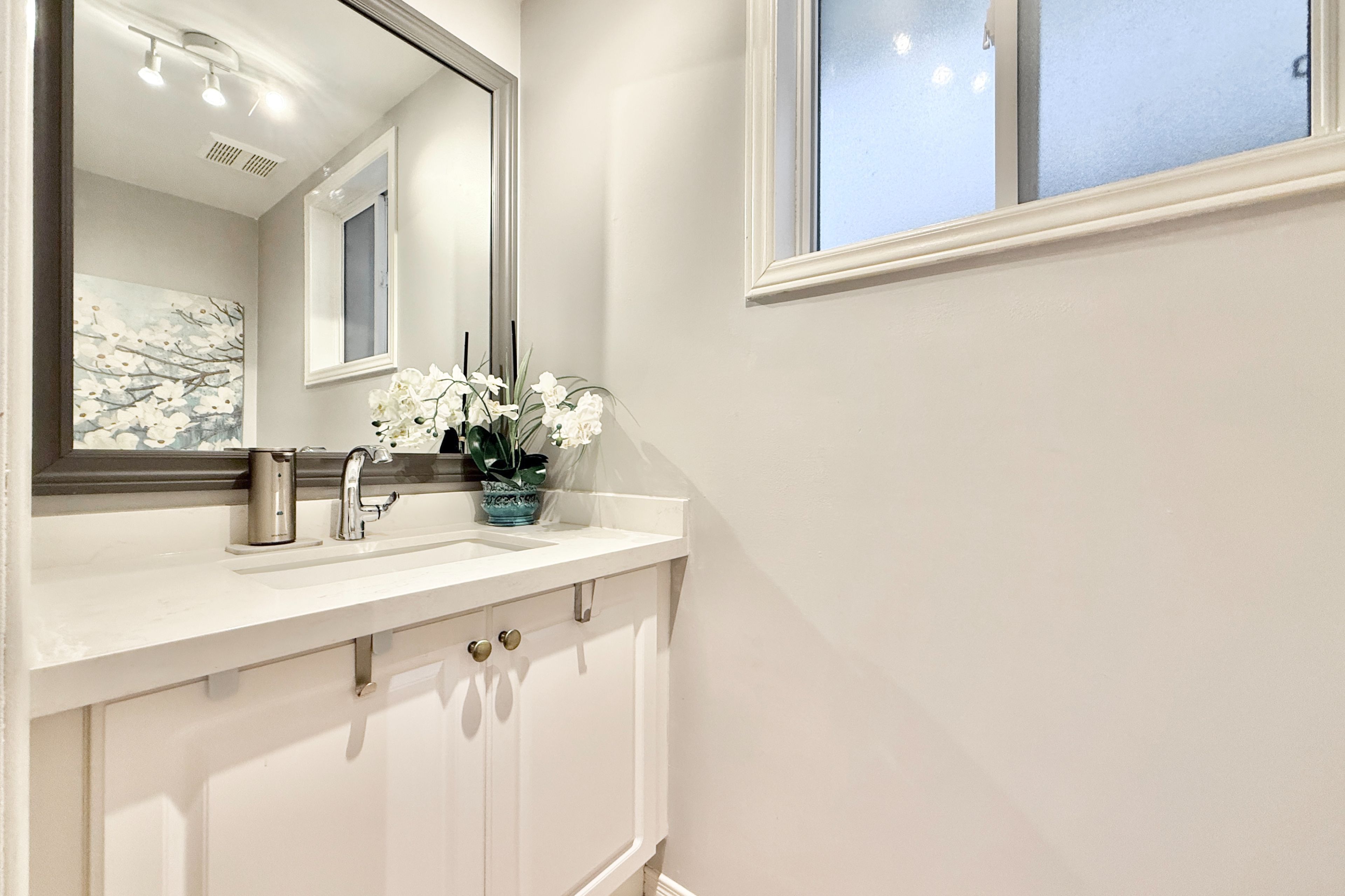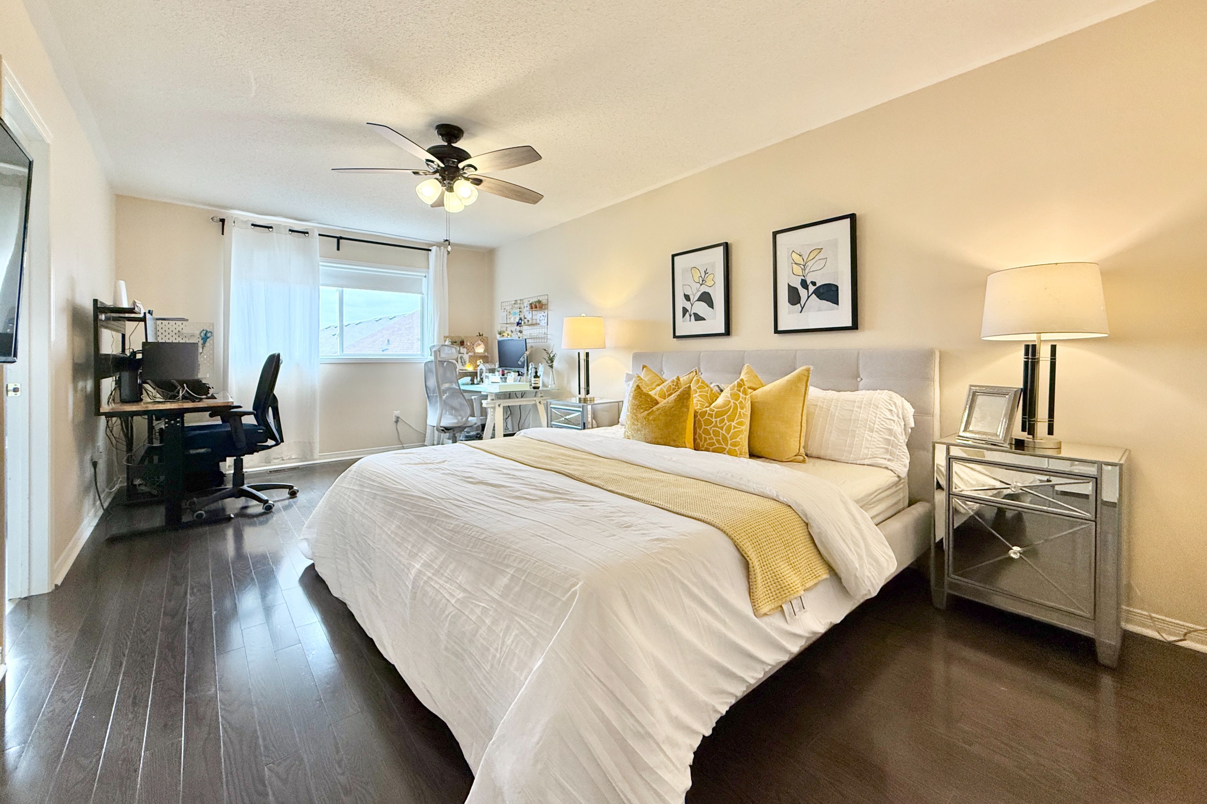 • Carpet-free with hardwood flooring and pot lights for a modern touch.