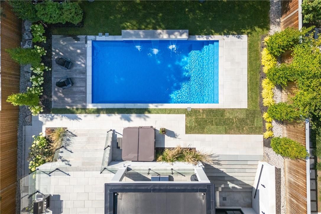 • Outdoor oasis features heated lounge, pool, hot tub, and beautiful landscaping.