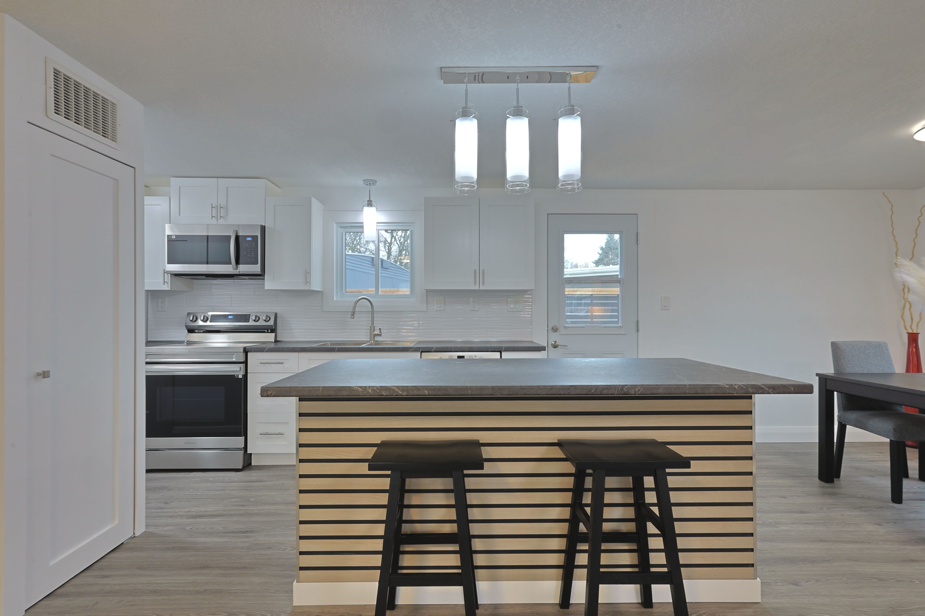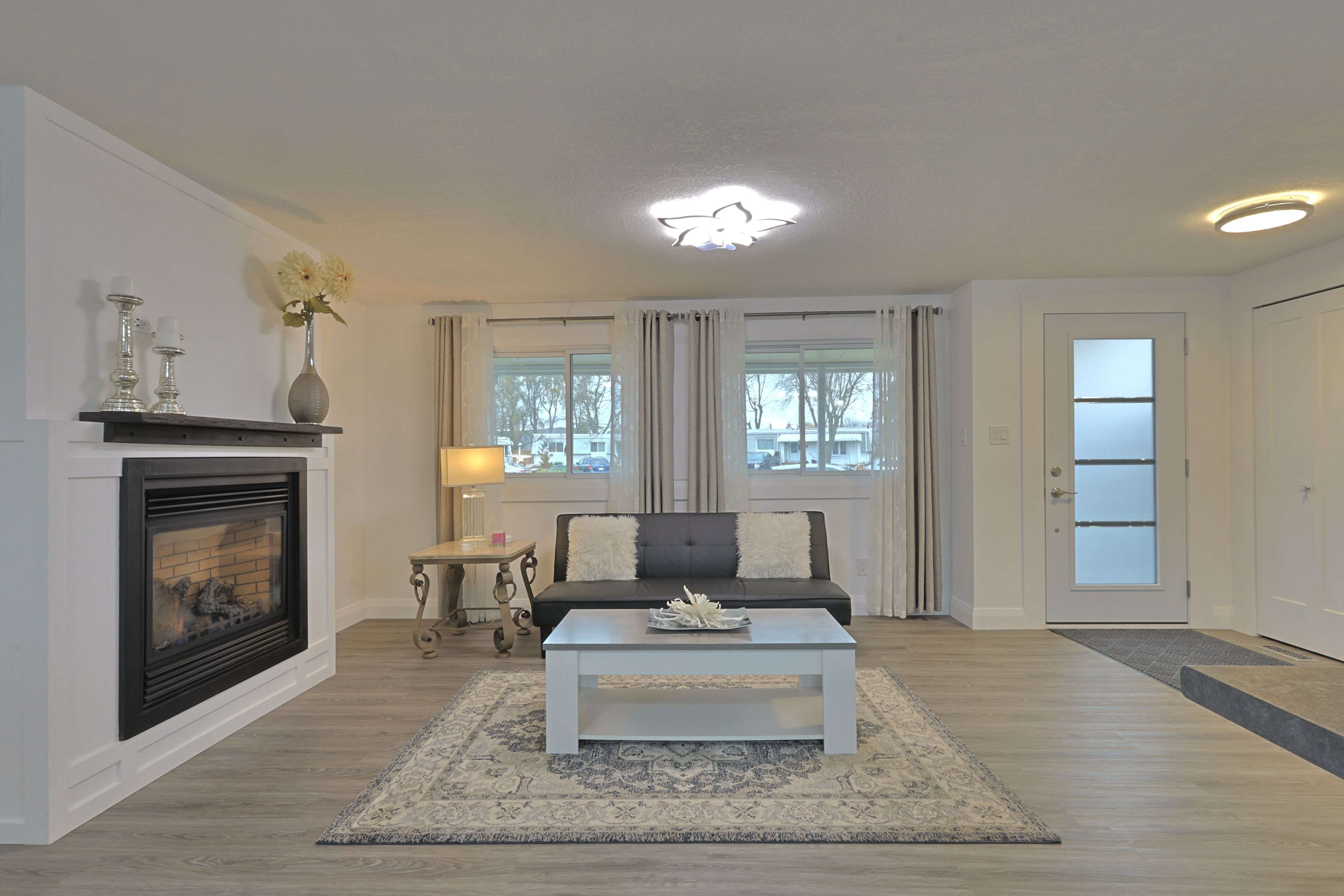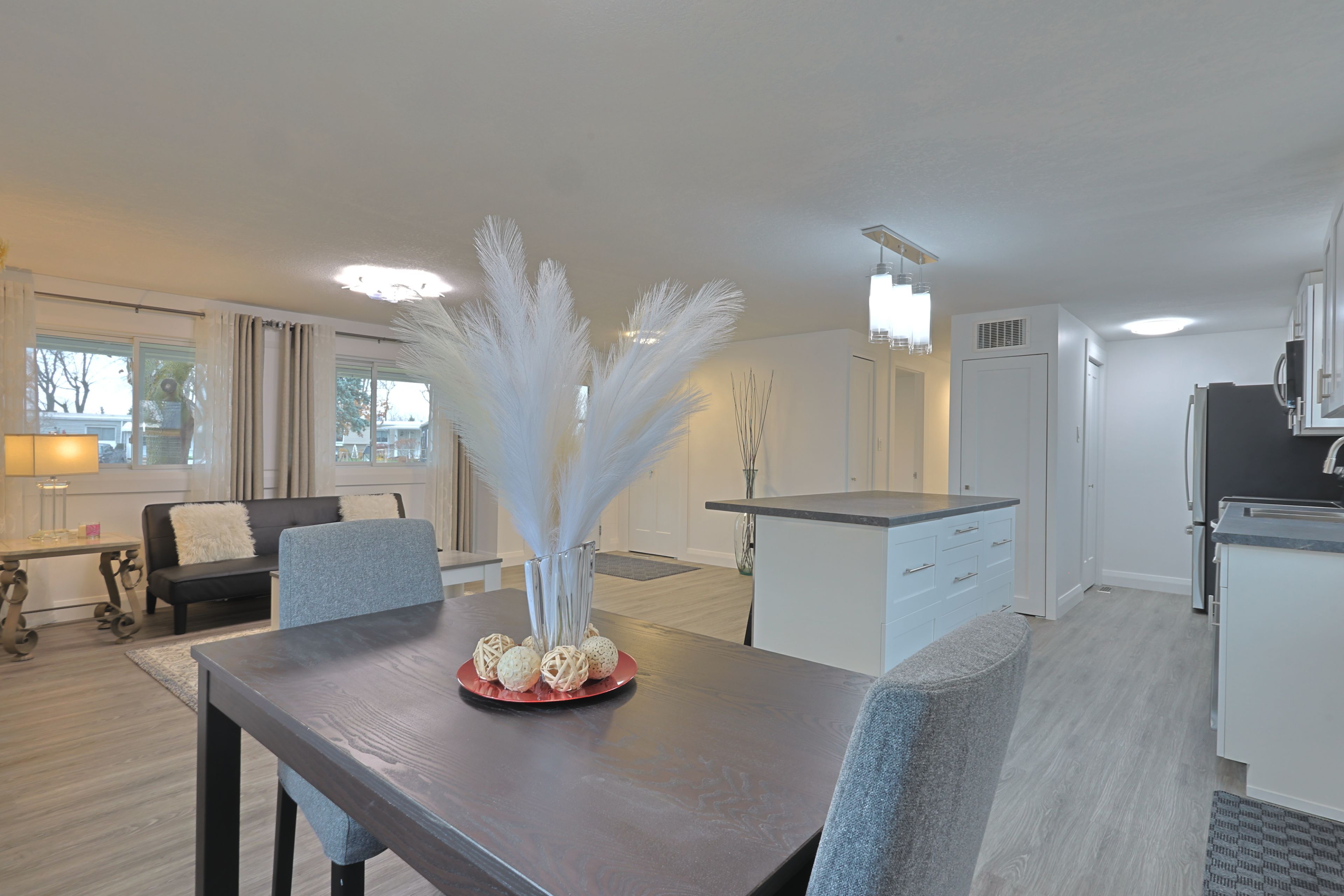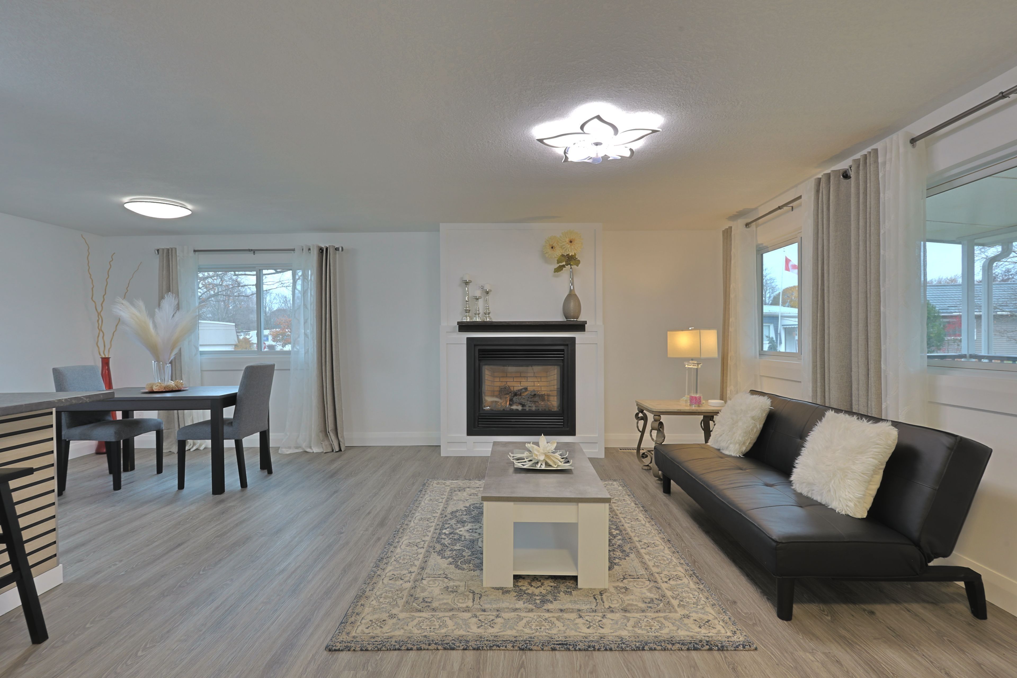Fully updated in 2024 for under $300k! Welcome to 46 st andrews pl, grand bend where you find an incredible blend of updates and value in grand cove estates. Updated exterior with vinyl siding, vinyl windows, doors, metal roof, decks, privacy fences and more. Spacious 20'x8' front covered porch leads you inside to your fully updated home. Interior floorplan was changed to allow for open concept living area with lots of windows for natural light. Luxury vinyl plank flooring throughout the home. Living room features a gas fireplace with surround. Kitchen offers eat-up island, new appliances, tiled backsplash, lots of counter space, food pantry & more. Dining area off of kitchen with door to back deck for quick access to the bbq. Primary bedroom with walk-through closet, that is outfitted with stackable laundry machines, leading to the two piece ensuite. Floorplan allows for another bedroom and main full three piece bathroom with tiled shower. 16'x7' back deck off of kitchen with privacy fence offers more space to relax! Grand cove estates is a 55+ land lease community located in the heart of grand bend. Grand cove has activities for everybody from the heated saltwater pool, tennis courts, woodworking shop, garden plots, lawn bowling, dog park, green space, nature trails and so much more. All this and you are only a short walk to downtown grand bend and the sandy beaches of lake huron with the world-famous sunsets. Monthly land lease fee of $869. 39 includes land lease, access to all amenities and taxes.
