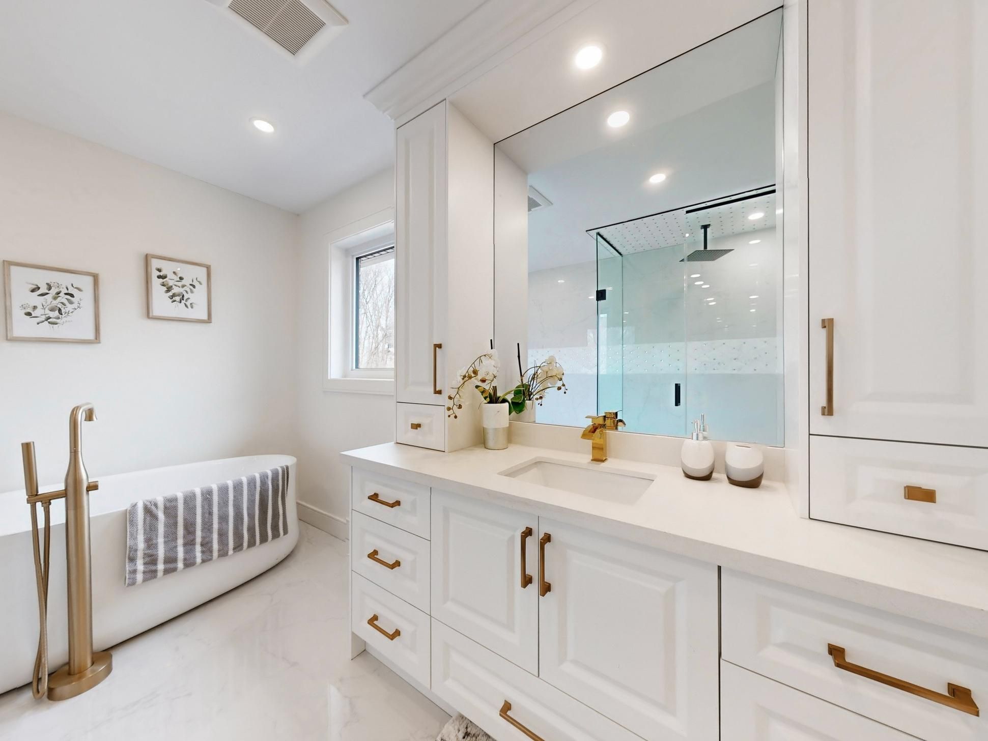 Welcome to this rarely an elegant and timeless detached residence in the prestigious aileen willowbrook community of markham. Nestled on an impressive premium lot with a deep backyard backing onto greenspace of the valley view park. This beautifully 5 + 2 bedrooms home features grand principal rooms and a breathtaking sun-filled spacious open concept layout. Fully renovated to a high quality in 2025 with lots of upgraded from top to bottom: new entrance double-door, new garage door, new wide plank hardwood floor throughout, expansive new windows that fill the home with natural light. Chef's dream kitchen with upgraded extended tall cabinets, granite countertops, backsplash, quartz countertops. Smooth ceilings with crown moulding, pot lights, new staircase with wrought iron pickets, featuring new roof, furnace, new interlock driveway & backyard, large deck, new upgraded bathrooms. The finished walkout basement expands more living space with two additional bedrooms in the basement offer space, comfort and flexibility. Top ranking school district ( st robert, thornlea s. S. ). Close to transportation, highways, parks, shops and restaurants.