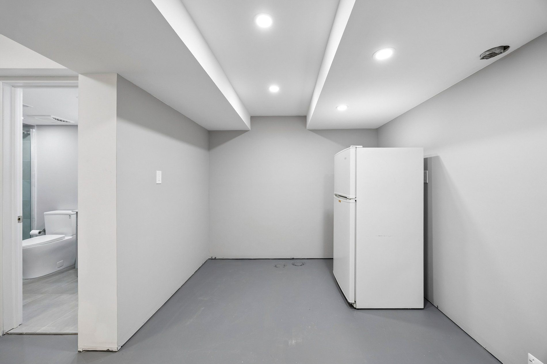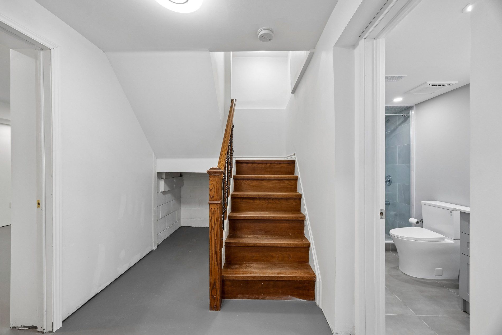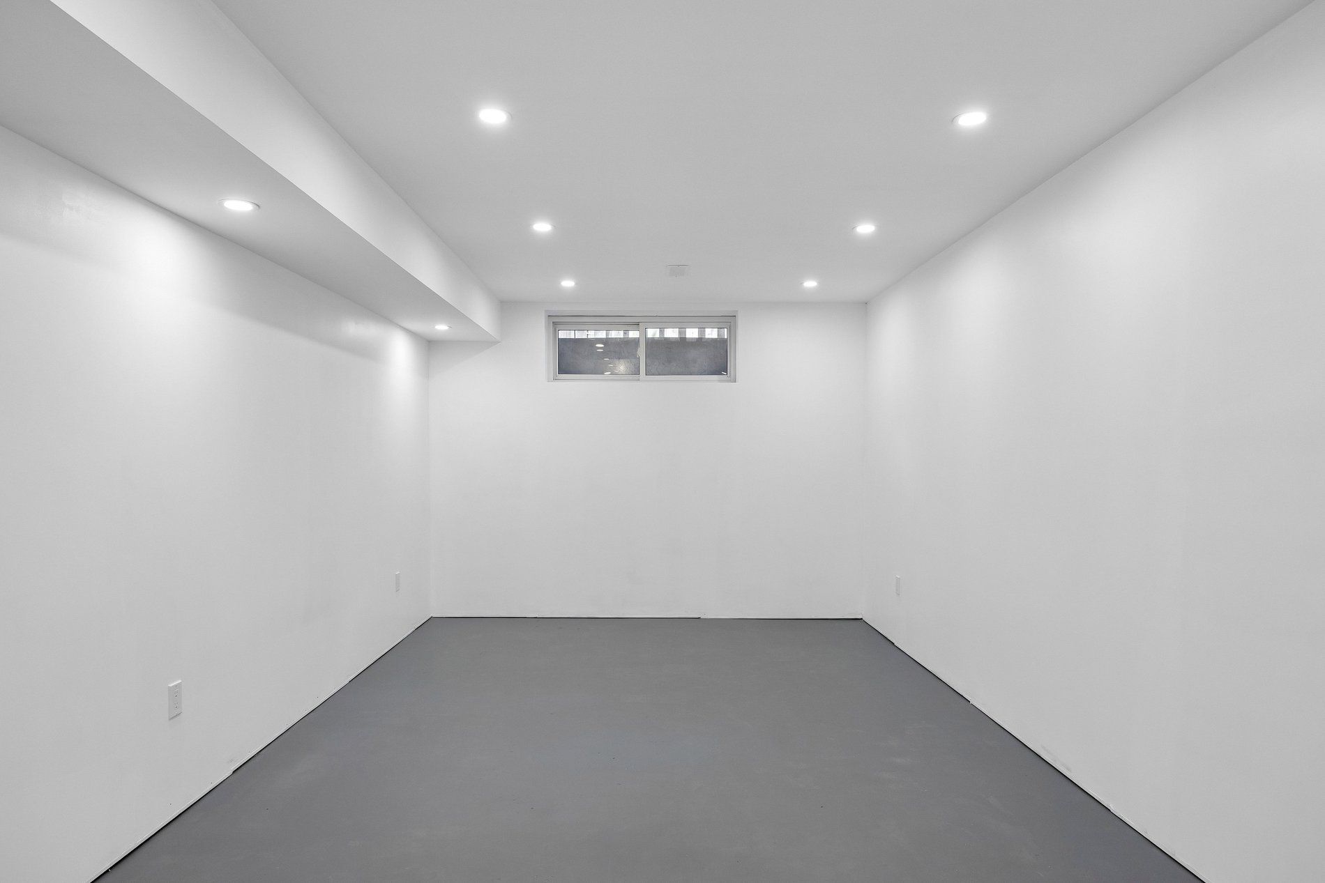 • Partially finished basement with high ceilings and a three-piece washroom.