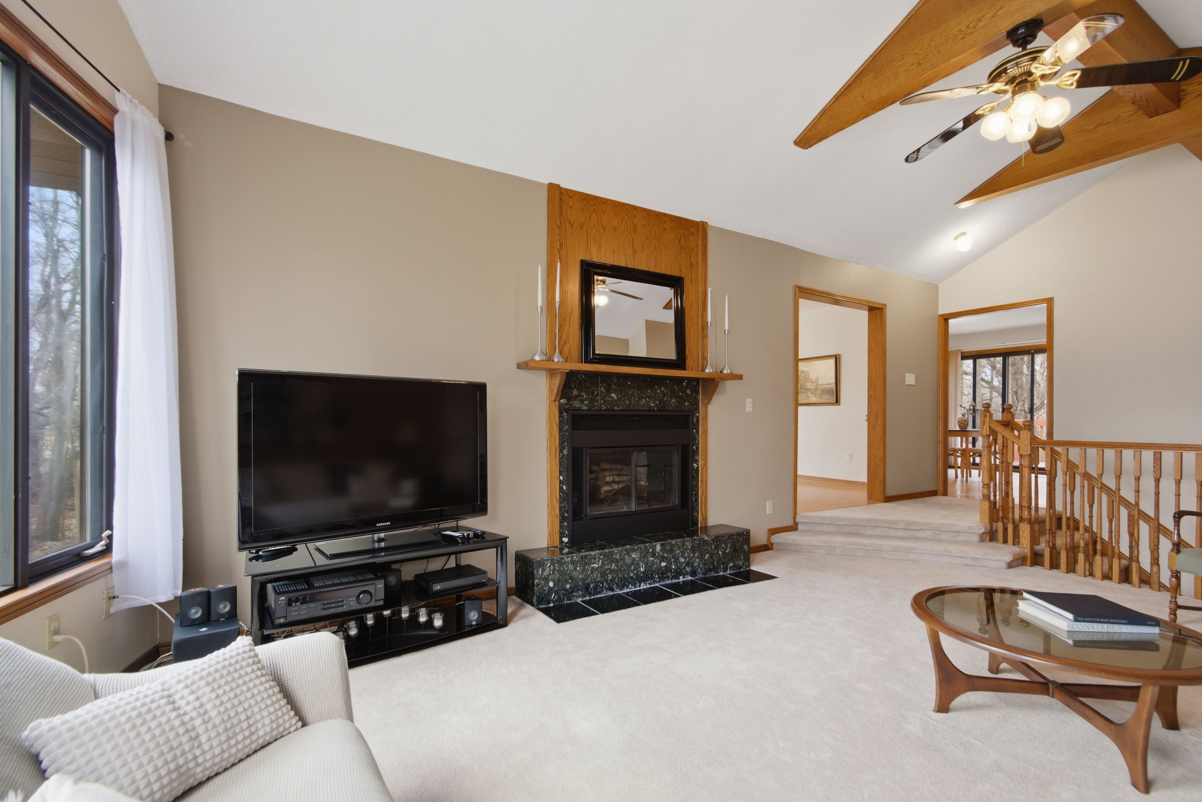 • Bright living room with large windows for plenty of natural light.