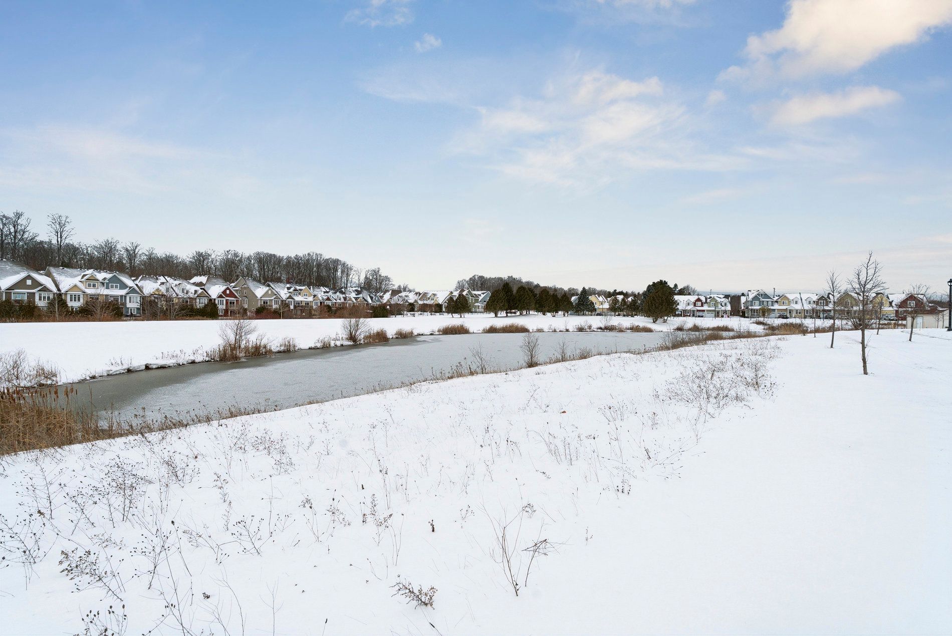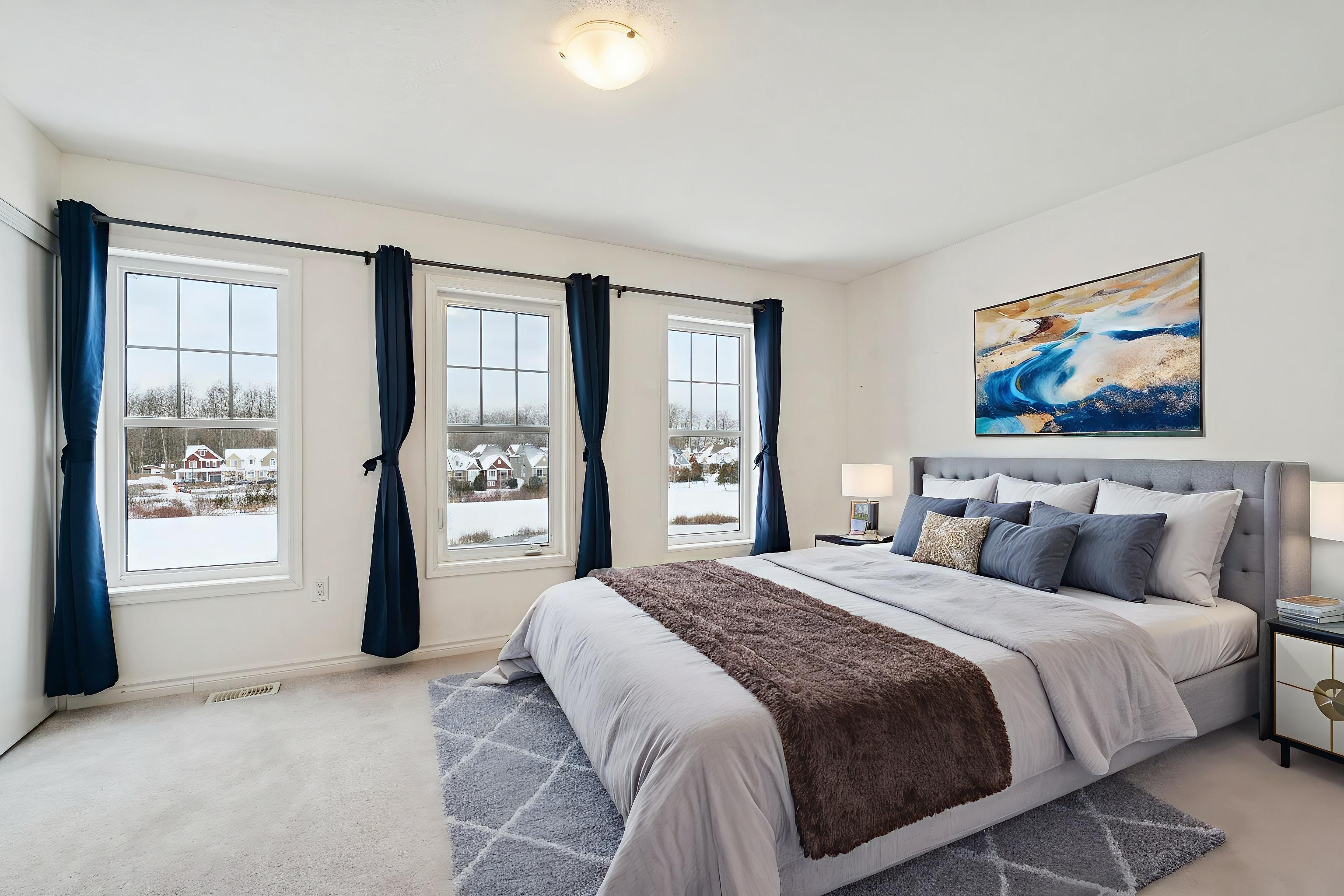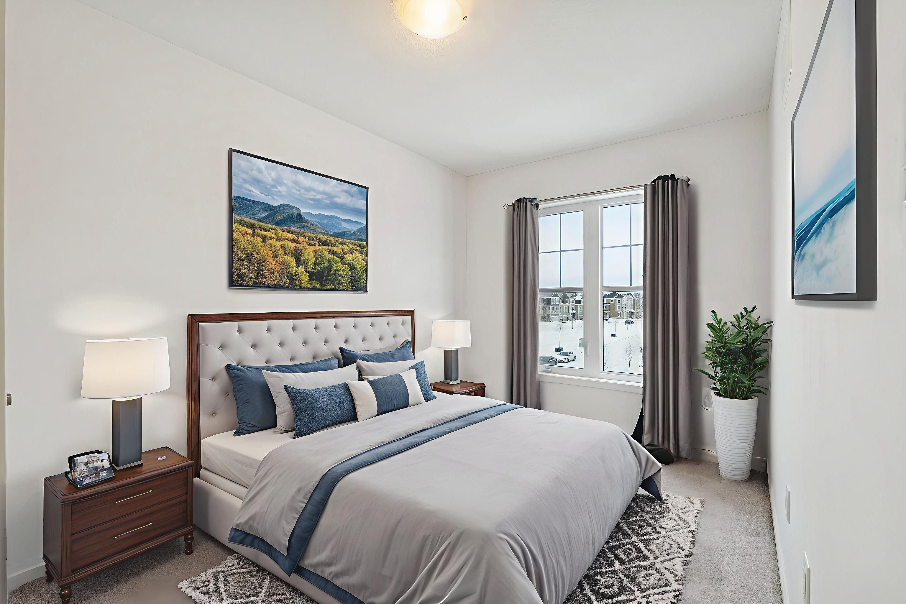 • Generous primary bedroom with views of Village Gate Pond Park.