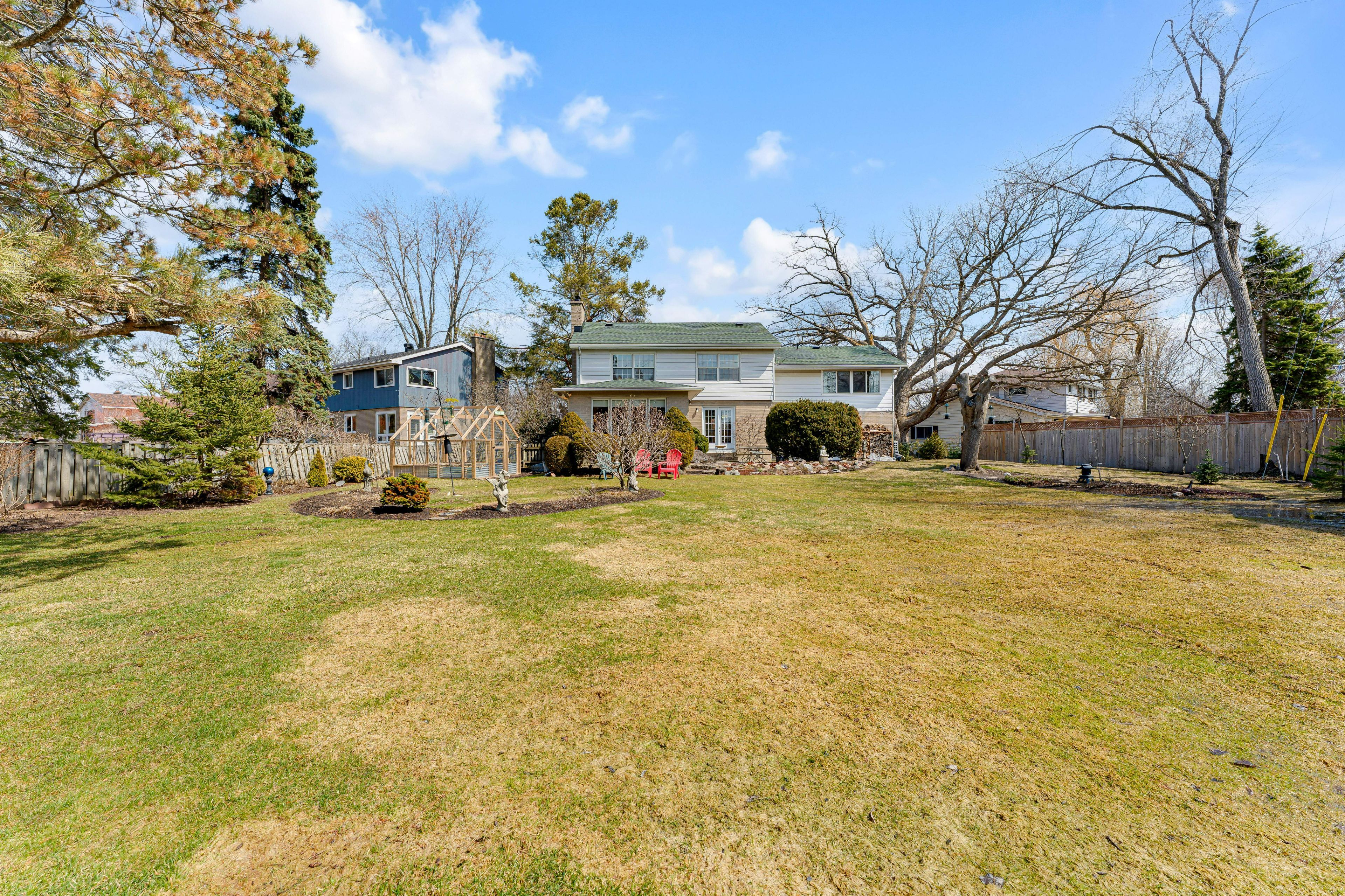 • Charming outdoor retreat with vibrant gardens and a greenhouse.