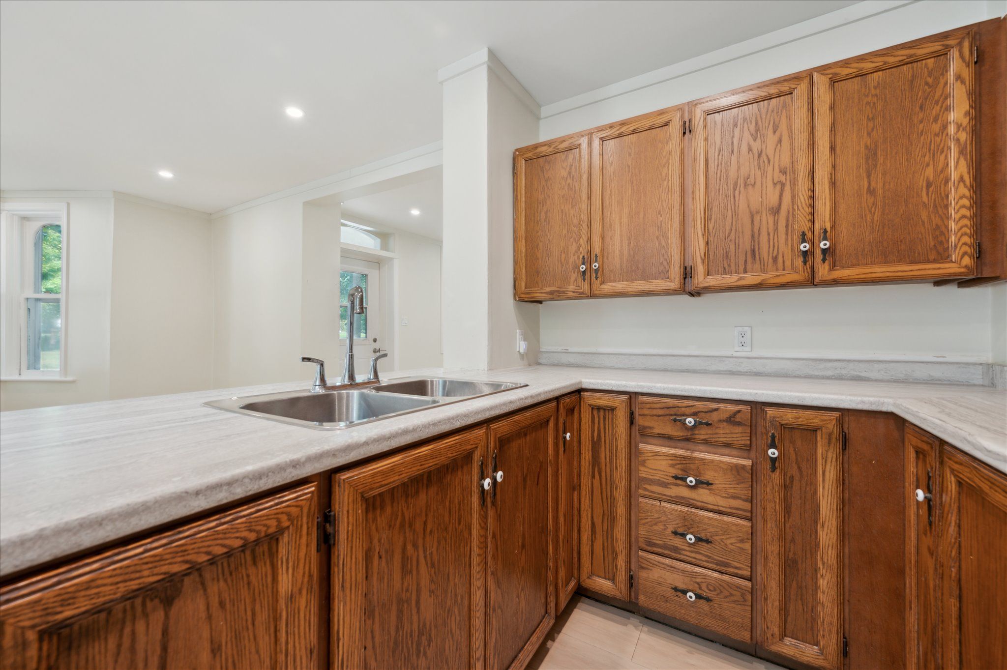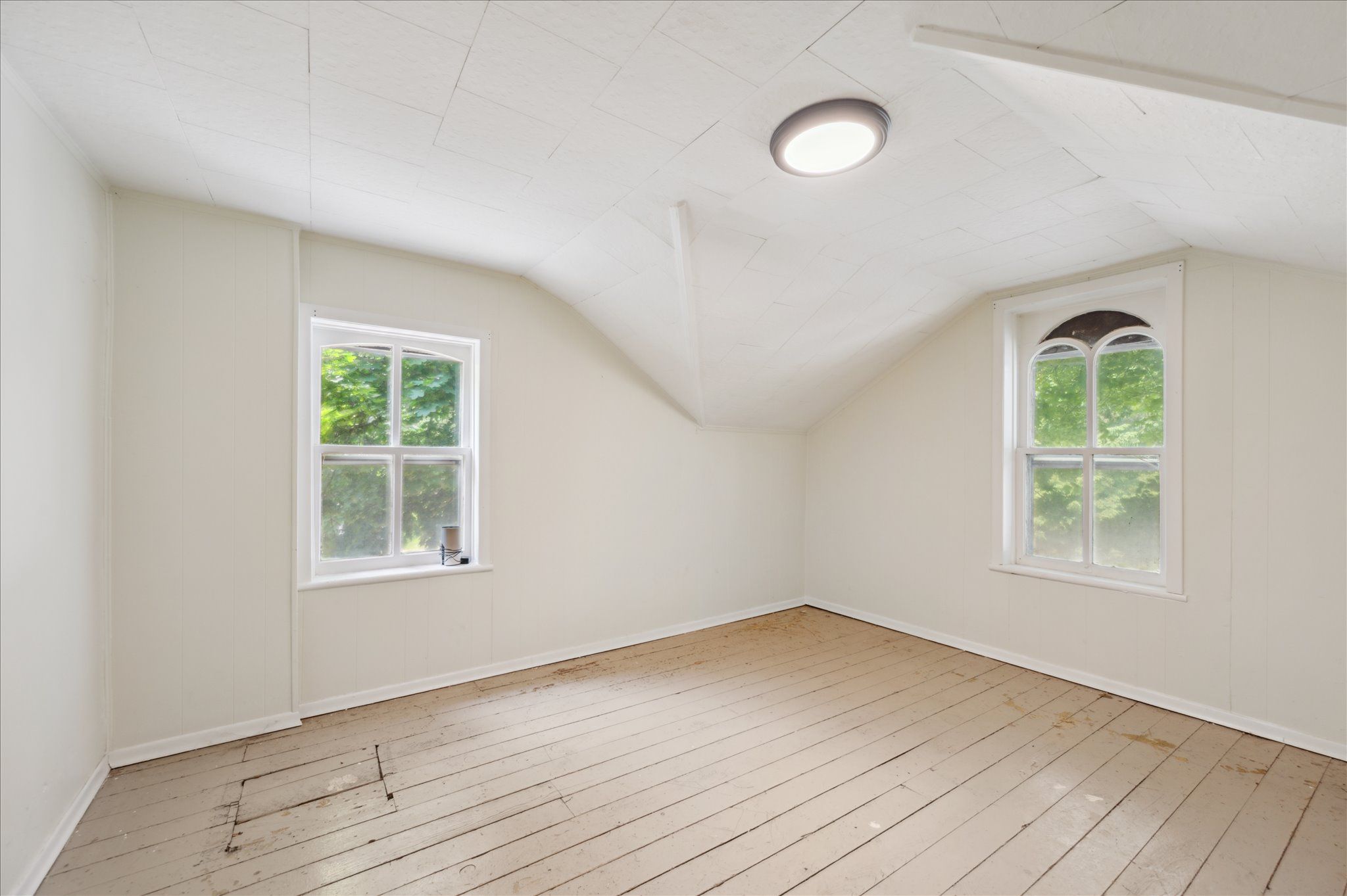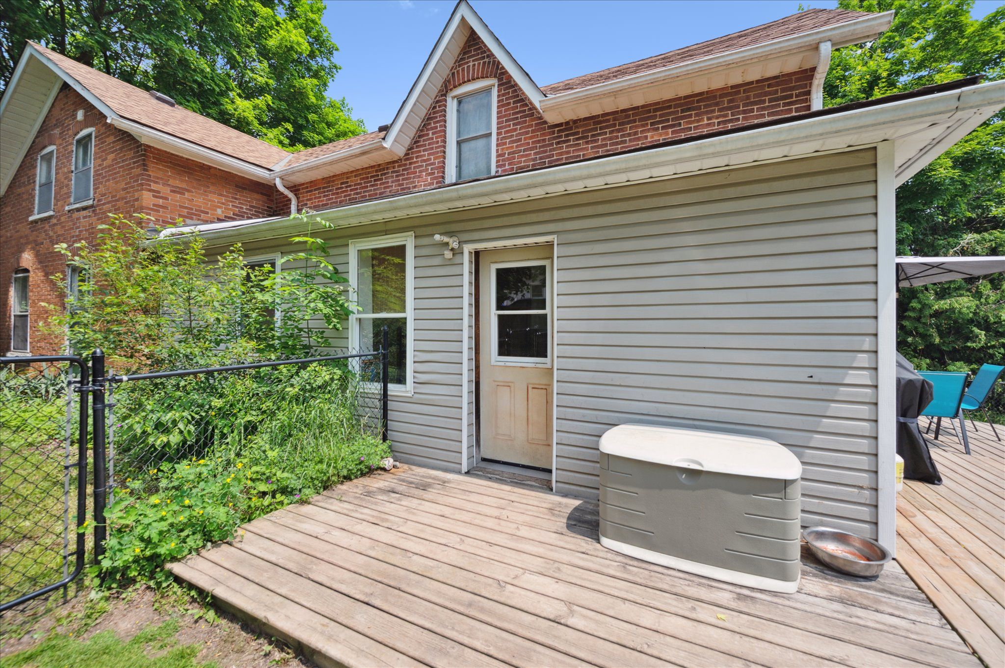 A belwood lake original 1880 built double brick on a big full fenced lot this separate entrances four bedroom, two full bath, two kitchen all located on a 1/4 acre lot is ready for your ideas to come to life. Home has been split into two units complete with separate entrances and separate hydro meters featuring a freshly renovated front unit complete with two good size bedrooms and a gorgeous three piece bath. Wide plank floors are ready to be rediscovered for that craftsmanship touch. The rear unit has been used as a workshop in the past but currently used as a second suite or easily bring it all together to make a really nice sized home in a great small town. Generational living is just another idea to use this home to full potential. Set up the bbq and enjoy after a day at the lake then back to your party size deck overlooking the fully fenced back yard. Plenty of room to build that perfect shop for all the toys and tools. Come see yesteryear craftsmanship and make it perfect with your own plan.
