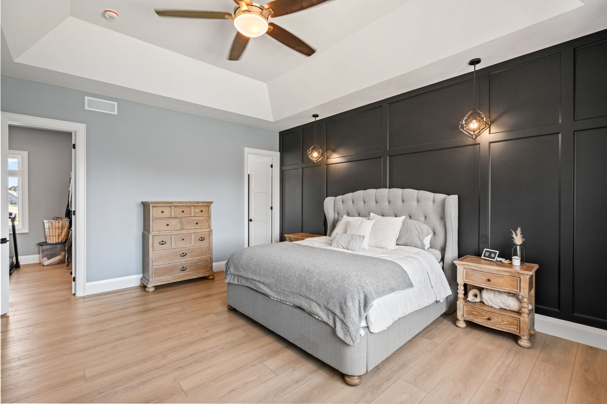 • Three bedrooms and three bathrooms, including a primary suite with a large closet.