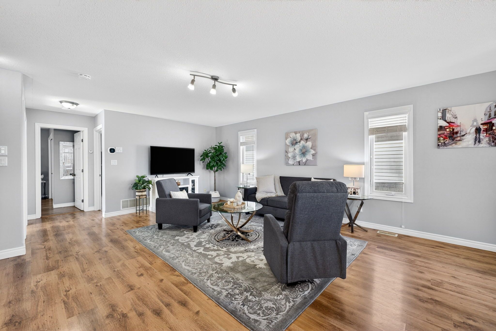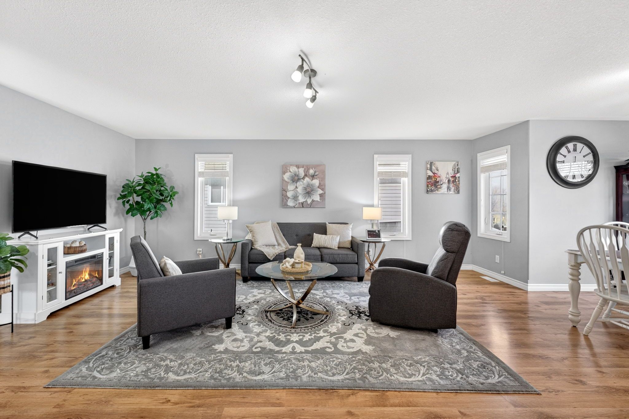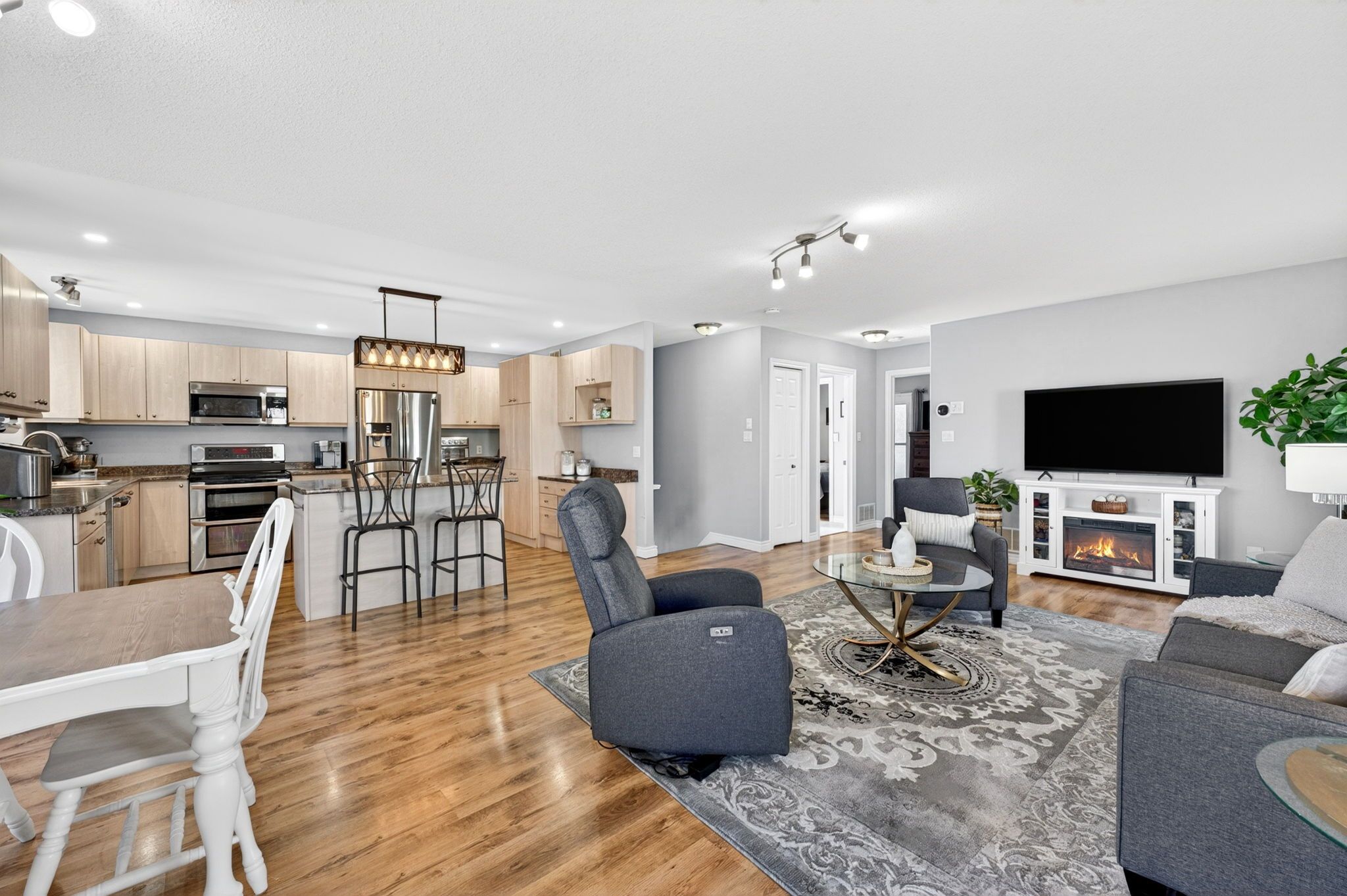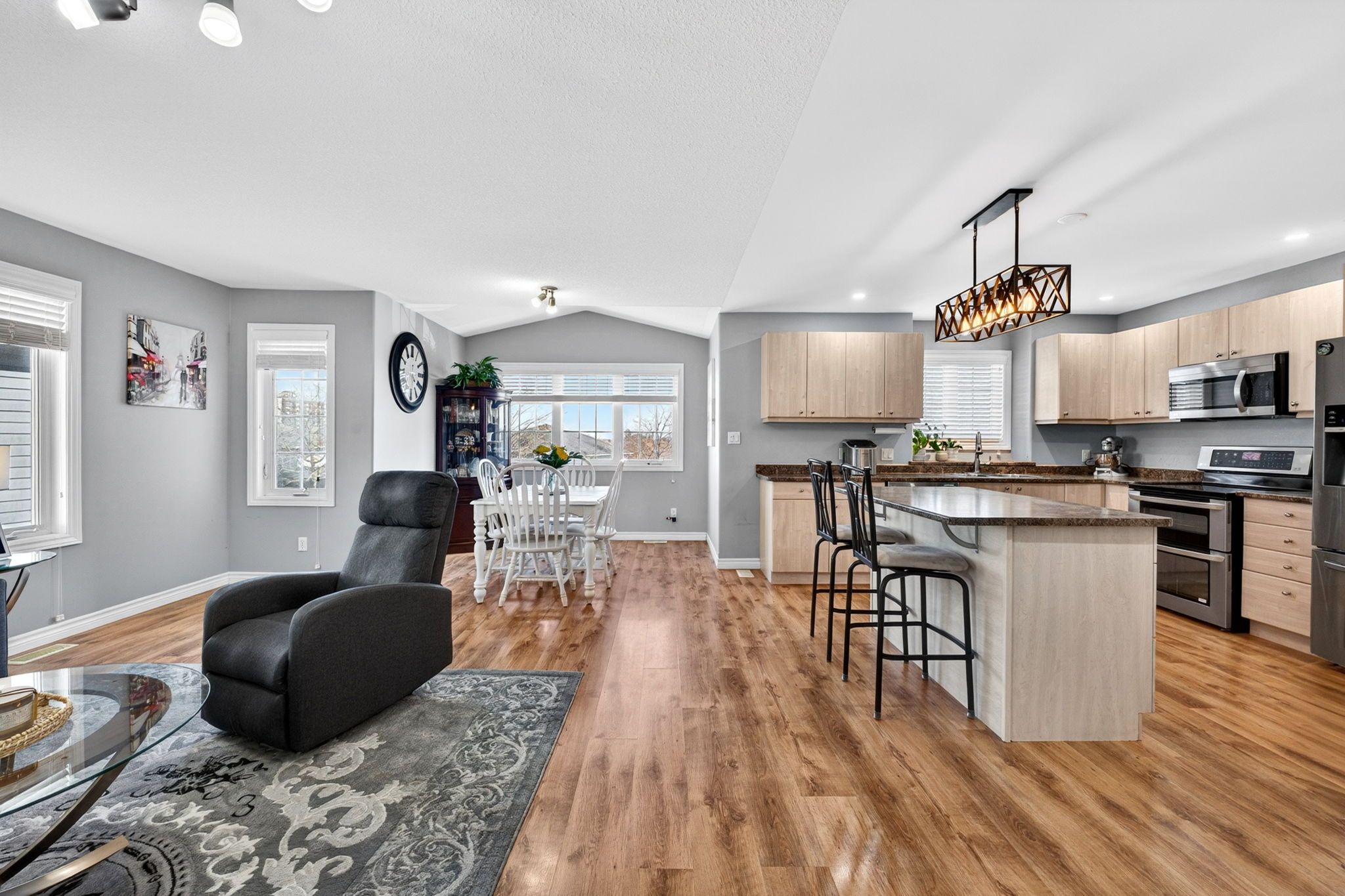 • Bright upper level with a welcoming living room and spacious dining area.