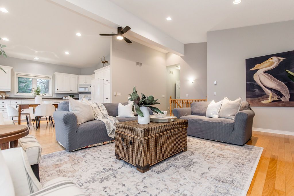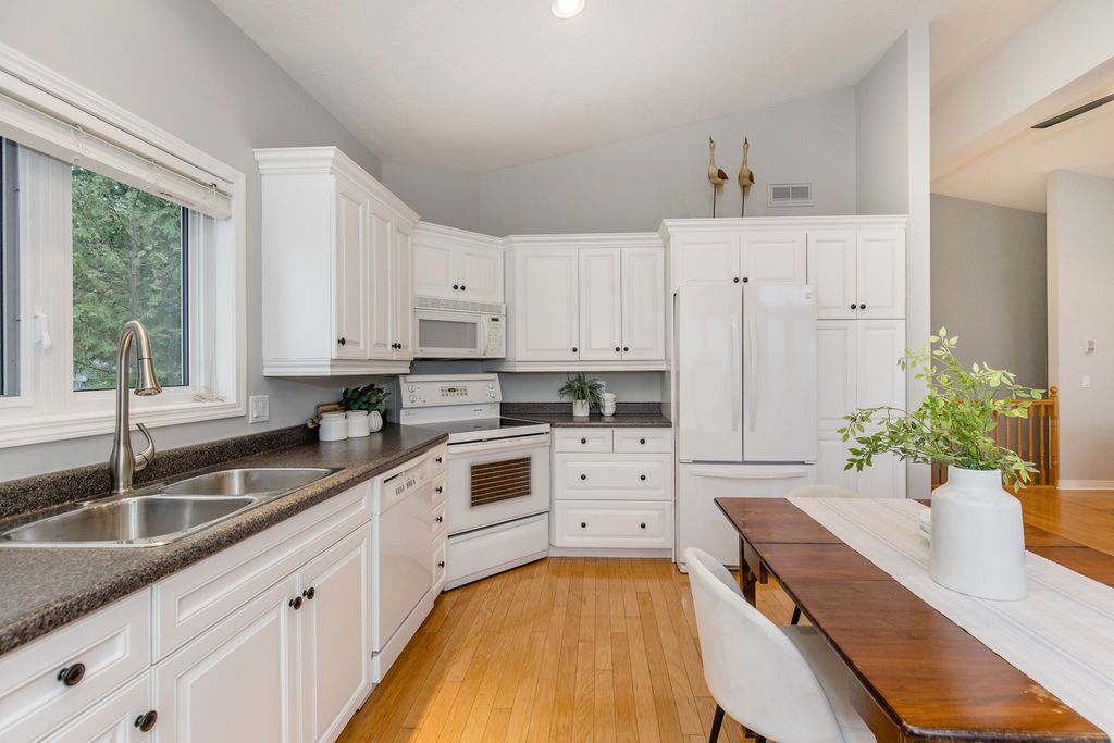 • Open-concept main floor filled with natural light and vaulted ceilings.