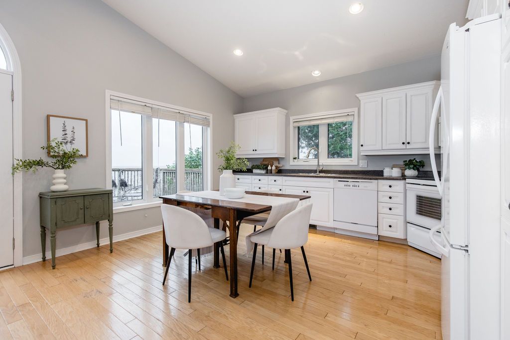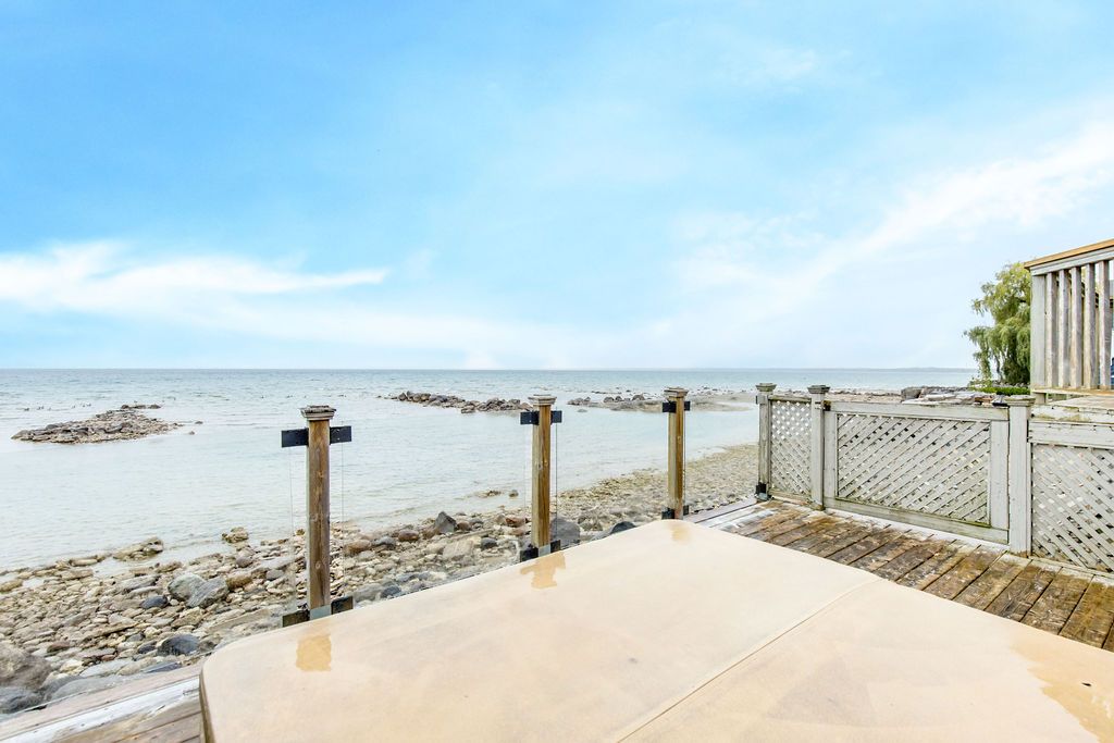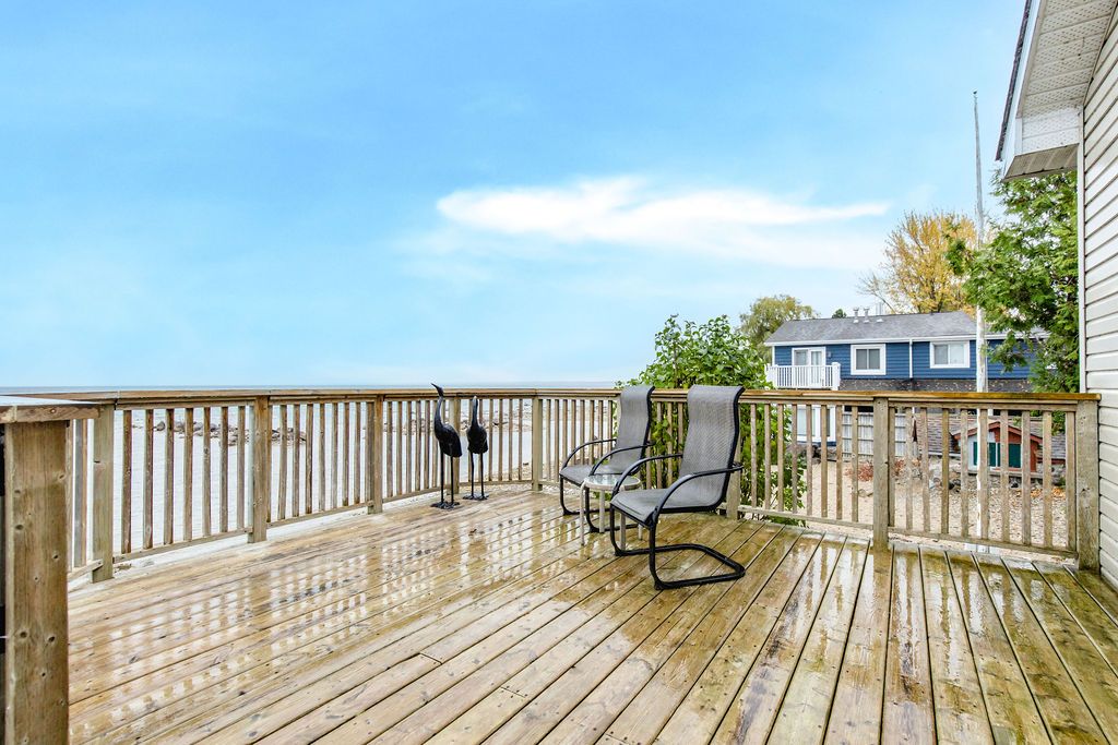 Welcome to a true georgian bay waterfront retreat, where unobstructed water views deliver unforgettable sunrises, sunsets, and year-round scenery. Built in 2002, this 4-bedroom, 3-bathroom bungalow was intentionally designed to maximize panoramic bay and blue mountain views from the main living areas. Perfectly positioned between collingwood and wasaga beach, the location offers peaceful waterfront living with quick access to skiing, trails, dining, shopping, and four-season recreation. The covered front porch sets the tone - ideal for morning coffee or watching summer storms roll across the bay. Inside, the open-concept main floor is filled with natural light, vaulted ceilings, and a cozy gas fireplace anchoring the living space. The spacious kitchen offers generous counter space and storage, making it ideal for entertaining family and guests while enjoying water views. The main-floor primary suite provides a private retreat with a 4-piece ensuite, including a soaking tub, glass shower, and walk-in closet. The lower level features two additional bedrooms and a large rec room, creating flexibility for family living, guests, or cottage use. Outdoors, enjoy tiered decks, mature landscaping, and direct private waterfront access-perfect for swimming, kayaking, paddle boarding, or relaxing by the water. Whether used as a full-time residence or waterfront cottage, this home captures the essence of the georgian bay lifestyle: tranquil, active, and deeply connected to nature, with winter skiing and summer water sports at your doorstep.