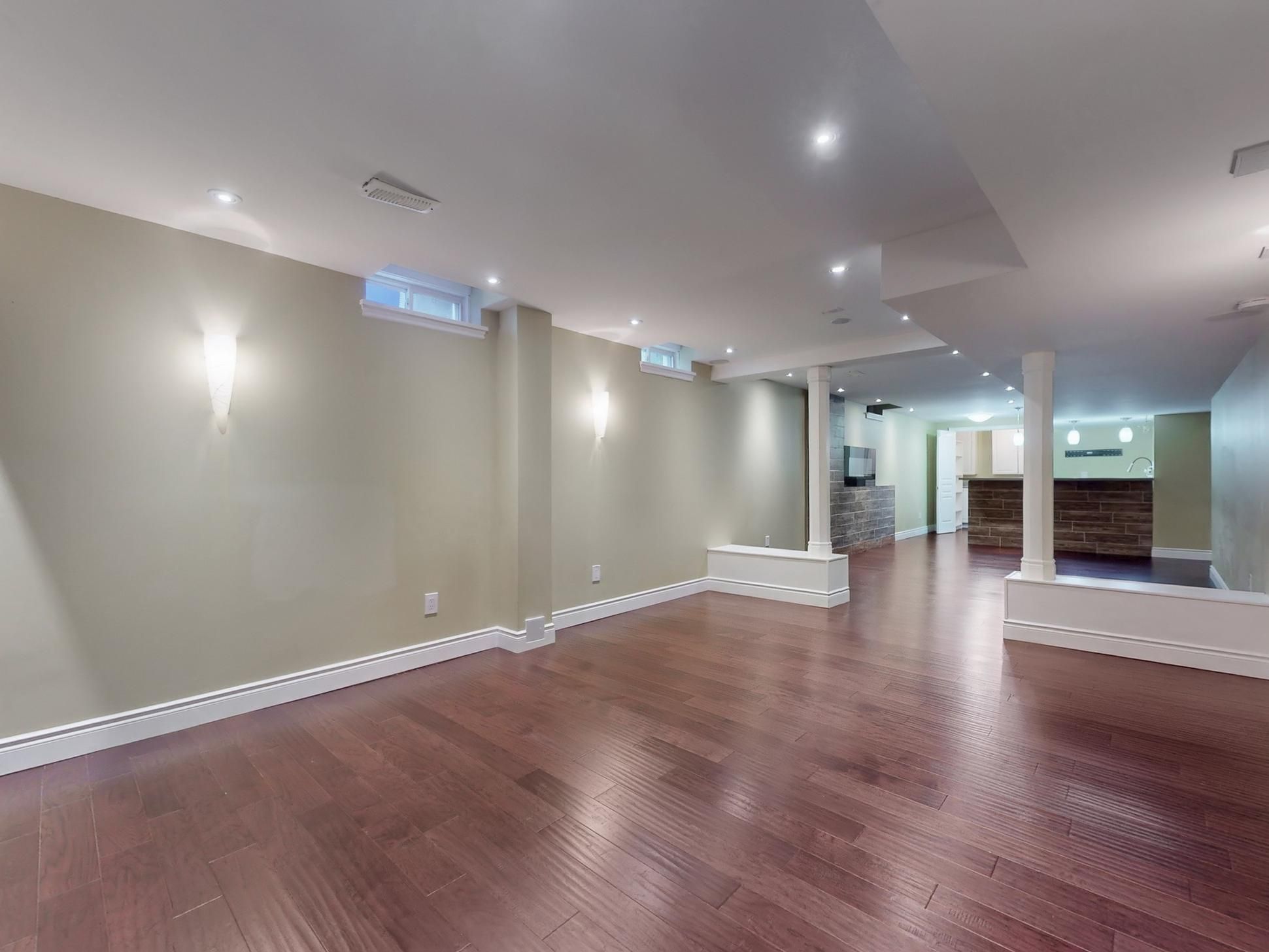 Offering over 5,300 sq ft of finished living space, this exceptional detached home is the largest model by tribute homes!! Located in sought-after northwest ajax with the convenience of walking distance to groceries, restaurants, and local mosque! Filled with natural light from large windows, the home features 9 ft ceilings on the main floor and a spacious open-concept layout ideal for entertaining. The kitchen showcases upgraded appliances! Quartz counters! A tiled backsplash! And a large island with bar fridge! Complemented by california shutters, and opens to a grand family room with custom built-ins and a gas fireplace with a stunning two-storey soaring ceiling! Formal living and dining rooms provide elegant hosting spaces and a main floor office or den offers flexibility as a main floor bedroom with potential for a 3-piece bath! A functional mudroom with laundry includes convenient garage and backyard access. Brazilian hardwood flooring accents the main level, while the second floor offers five large bedrooms and three full bathrooms with new upgraded carpet throughout! The finished basement features a large entertainment area! Wet bar with quartz counters! A spacious exercise room with bedroom potential! An additional bedroom! And a 3-piece bathroom!! Easily convertible to an in-law suite with potential for a separate entrance. Meticulously maintained with multiple storage areas, this home is completed by a beautifully landscaped yard featuring a large deck, covered gazebo, and low-maintenance artificial turf grass.