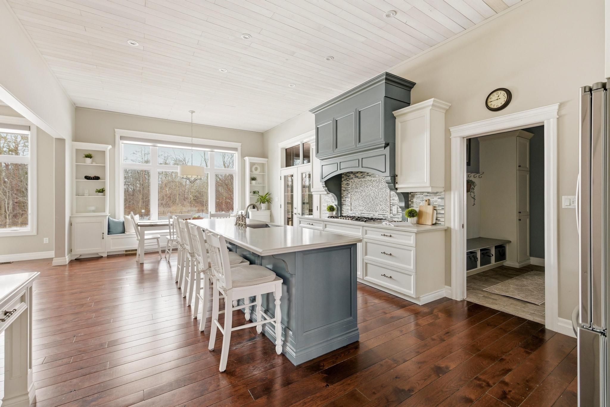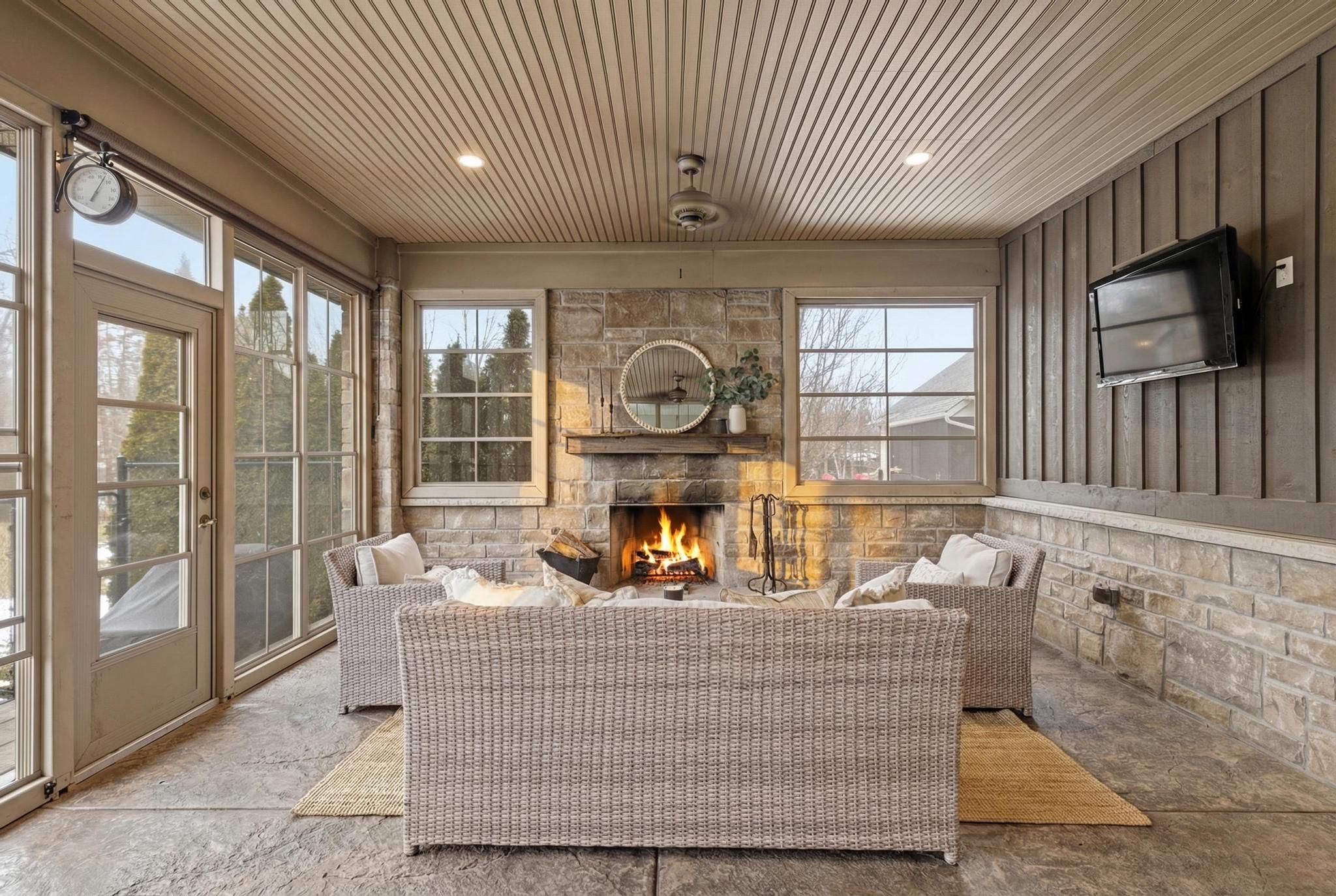 Welcome to 46 woodside drive in the prestigious community of mount pleasant, where craftsmanship, space and lifestyle come together on anexpansive 0. 75 acre property. Offering 5,218 square feet of beautifully finished living space including a fully finished walkout basement, thisimpressive home delivers the perfect balance of luxury, comfort and thoughtful design. From the moment you arrive, the home's striking curbappeal makes a lasting impression with its elegant stone exterior, architectural detailing, landscaped grounds, full lawn irrigation system andspacious driveway leading to the double car garage. Inside, the home offers an elegant yet inviting atmosphere designed for both everyday livingand entertaining. The main living area is highlighted by a stunning coffered ceiling that adds warmth and character while creating an impressivegathering space for family and guests. Large windows throughout invite natural light and showcase views of the surrounding nature. With 3bedrooms on the main level and 2 additional bedrooms in the fully finished walkout basement, the layout provides exceptional flexibility forfamilies, guests or multi generational living. A total of 5 bathrooms ensures comfort and convenience throughout. The primary suite offers aprivate retreat featuring a spa inspired ensuite complete with heated floors. A bright 3 season sunroom provides the perfect place to enjoymorning coffee or unwind in the evening while overlooking the beautifully maintained grounds. Outdoors, the backyard has been transformedinto a professionally designed private oasis with over $200,000 invested to create a resort style setting ideal for relaxing or hosting gatherings. Located in the sought after community of mount pleasant, this property offers the rare combination of privacy, space and convenience close tonearby amenities. Opportunities like this are rare. 46 woodside drive is more than a home, it is a lifestyle defined by space, comfort andtimeless design.