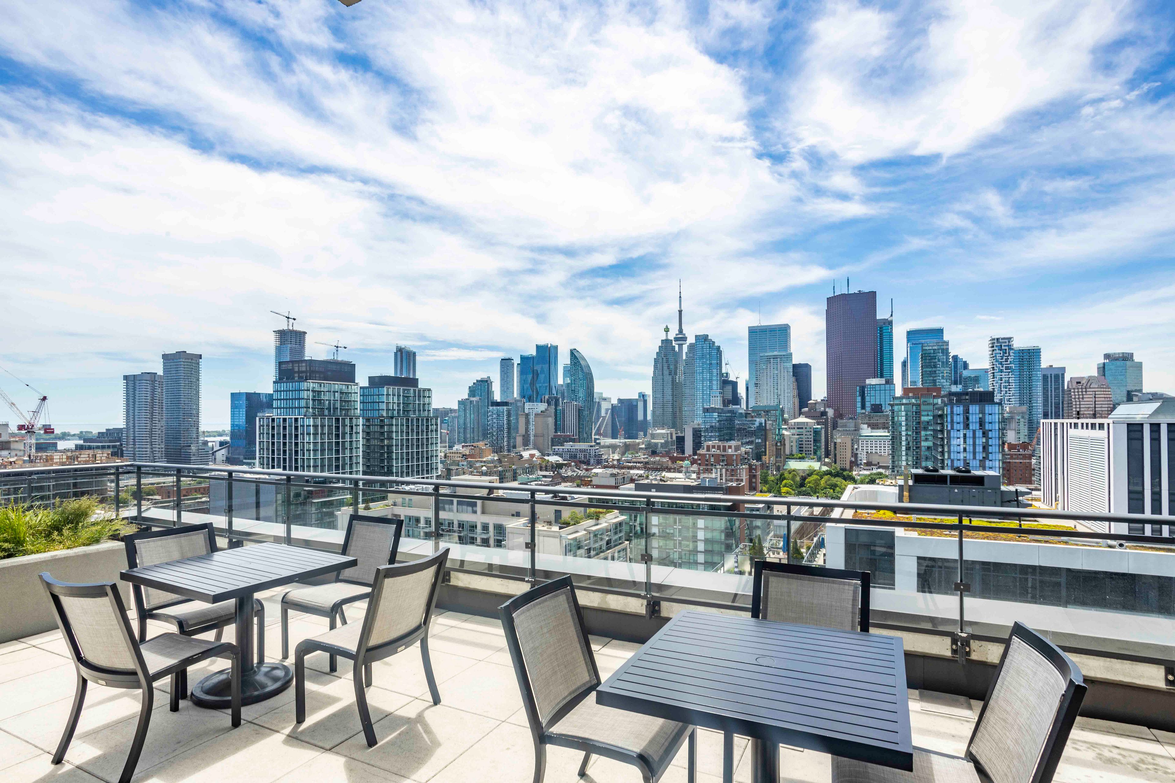 Open house sat/sun 2-4 pm (by appointment). Welcome to this bright and modern 1-bedroom suite at axiom condos by greenpark homes, ideally located in the heart of downtown toronto. Situated on the 16th floor, the unit offers a north-facing exposure with city views and excellent natural light. Enjoy an oversized 115 sq ft balcony-perfect for taking in the downtown skyline. The modern kitchen features stainless steel appliances, quartz countertops, and a stylish backsplash, flowing seamlessly into spacious living and dining areas ideal for everyday living and entertaining. The bedroom includes a large closet, floor-to-ceiling window, and a convenient double-entry ensuite. Additional highlights include 9-ft ceilings, engineered hardwood flooring throughout, ensuite laundry, ample storage, and a functional open-concept layout with 609 sq ft of interior living space. One locker is included. Building amenities include 24-hour concierge, gym, sauna, yoga room, party and meeting rooms, outdoor terrace, theatre and games rooms, pet spa, guest suites, and more. Conveniently located near the dvp and gardiner, with easy access to public transit, st. Lawrence market, the financial district, and the distillery district.